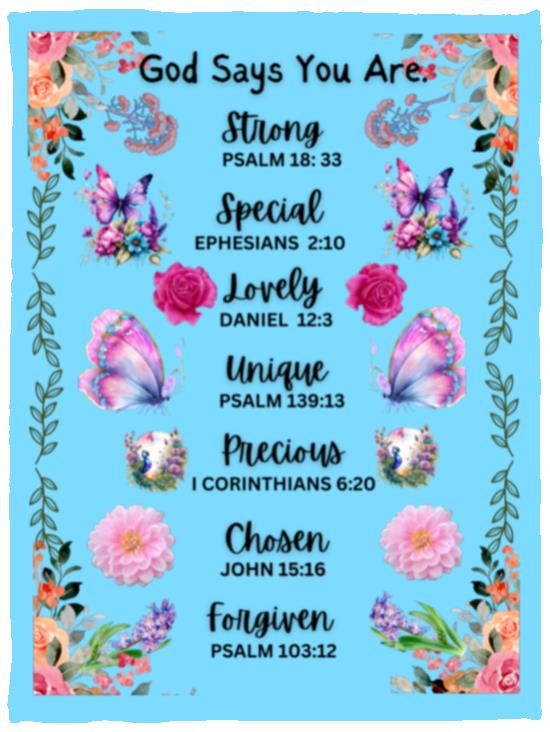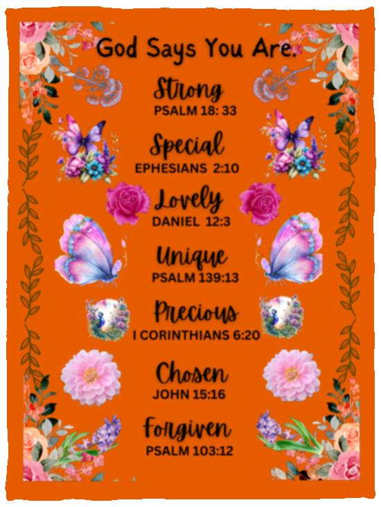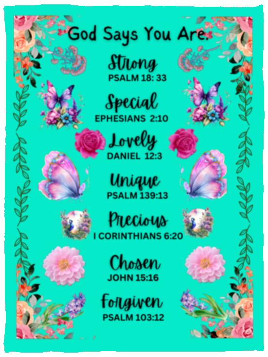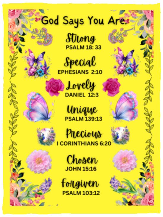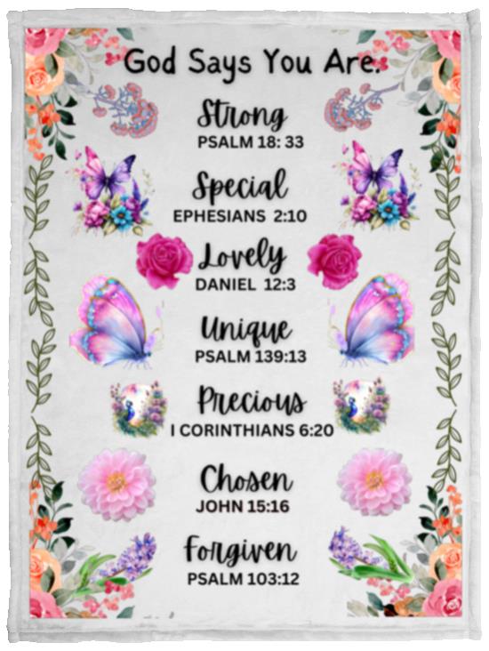- Buy this beautiful, custom designed "God Says You Are" Plush Fleece blanket for that young or "ageless" special someone in your life. This 30"x40" Arctic Fleece blanket will not only remind her of how blessed she is but will wrap her in warmth and beauty.