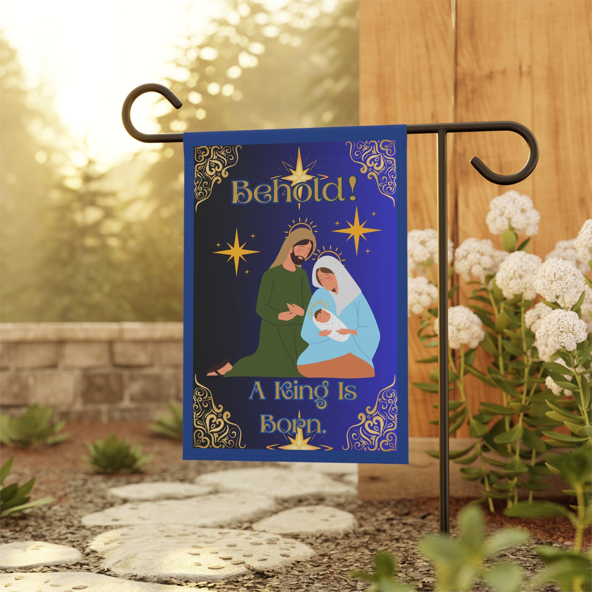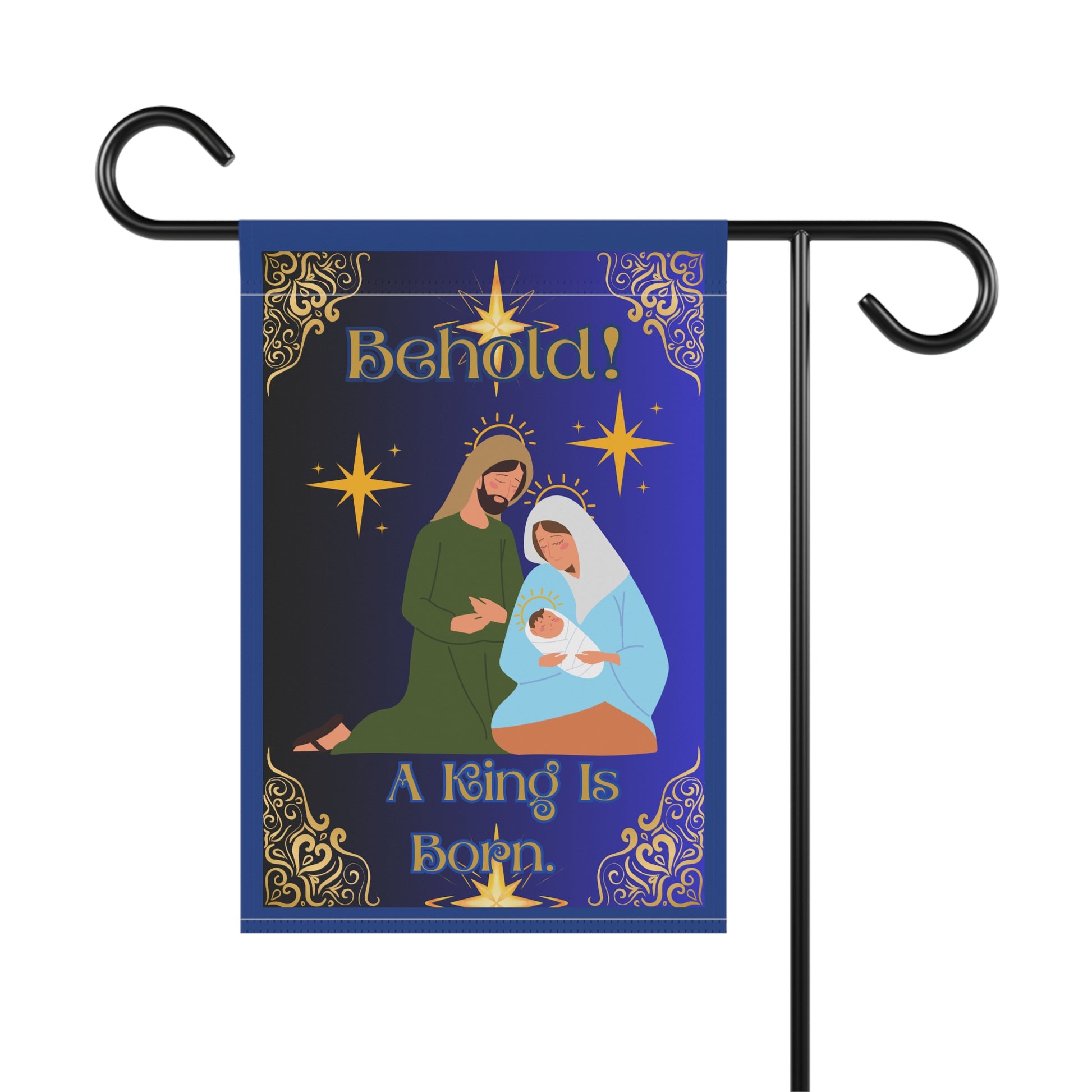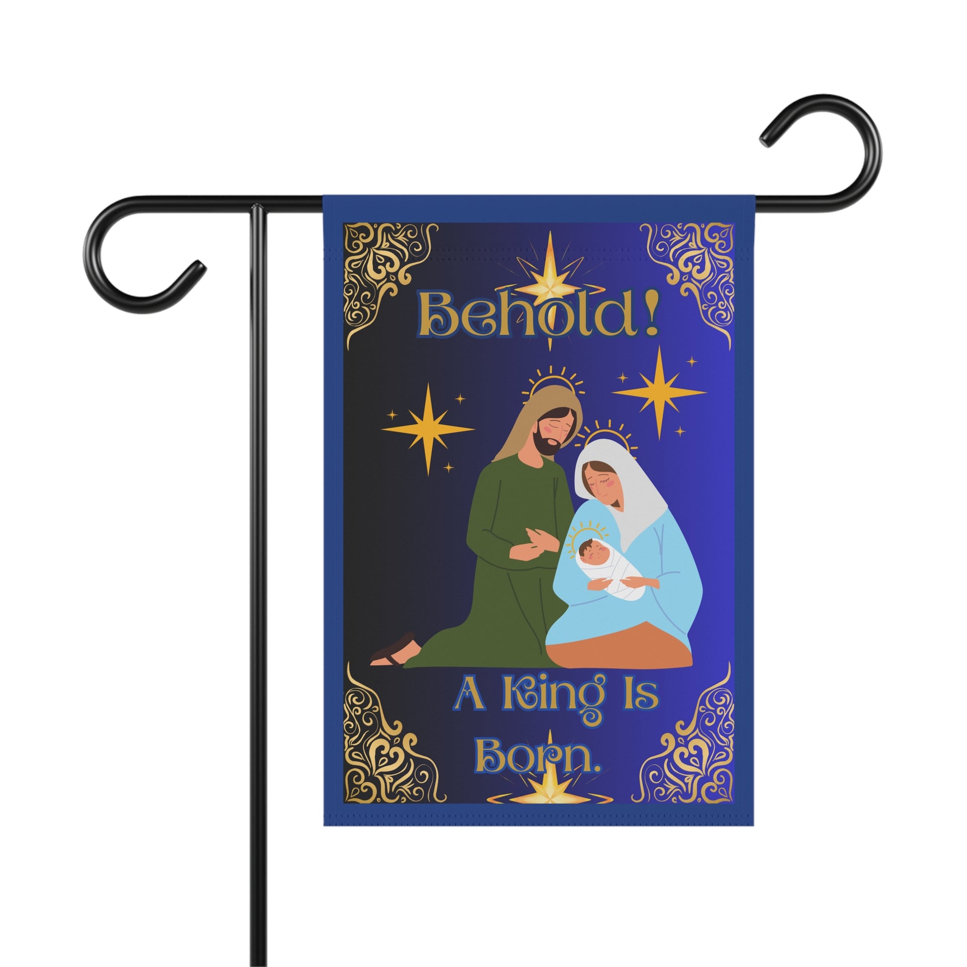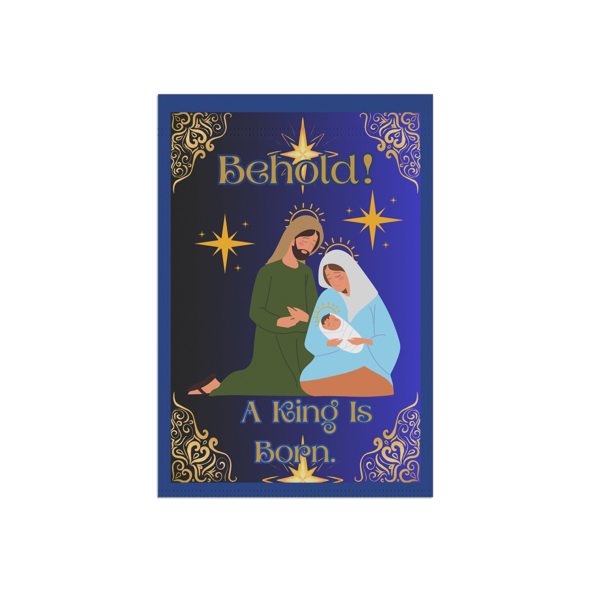 "Behold. A King Is Born!", Garden/Lawn Banner, 12 in x 18 in, Blue Ombre