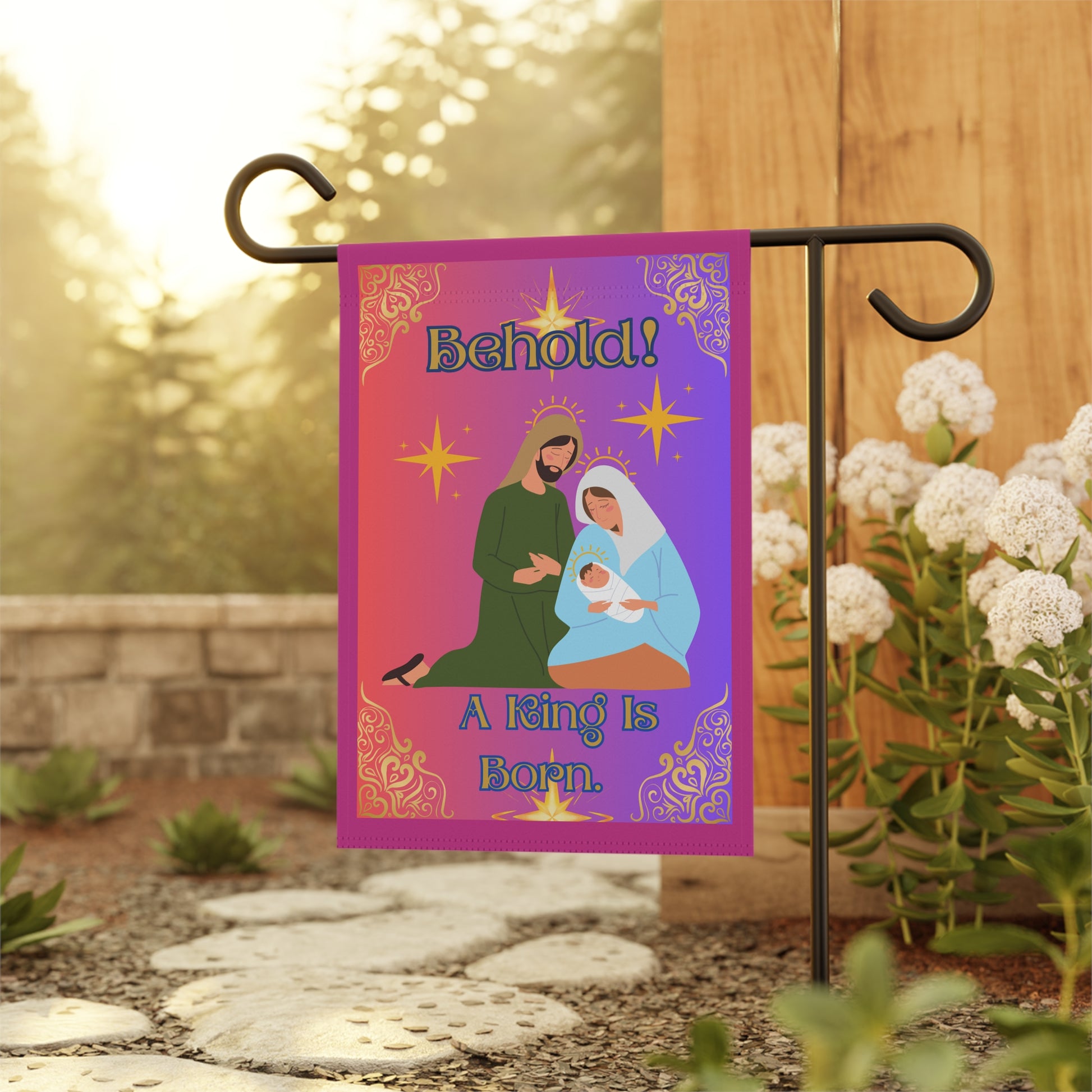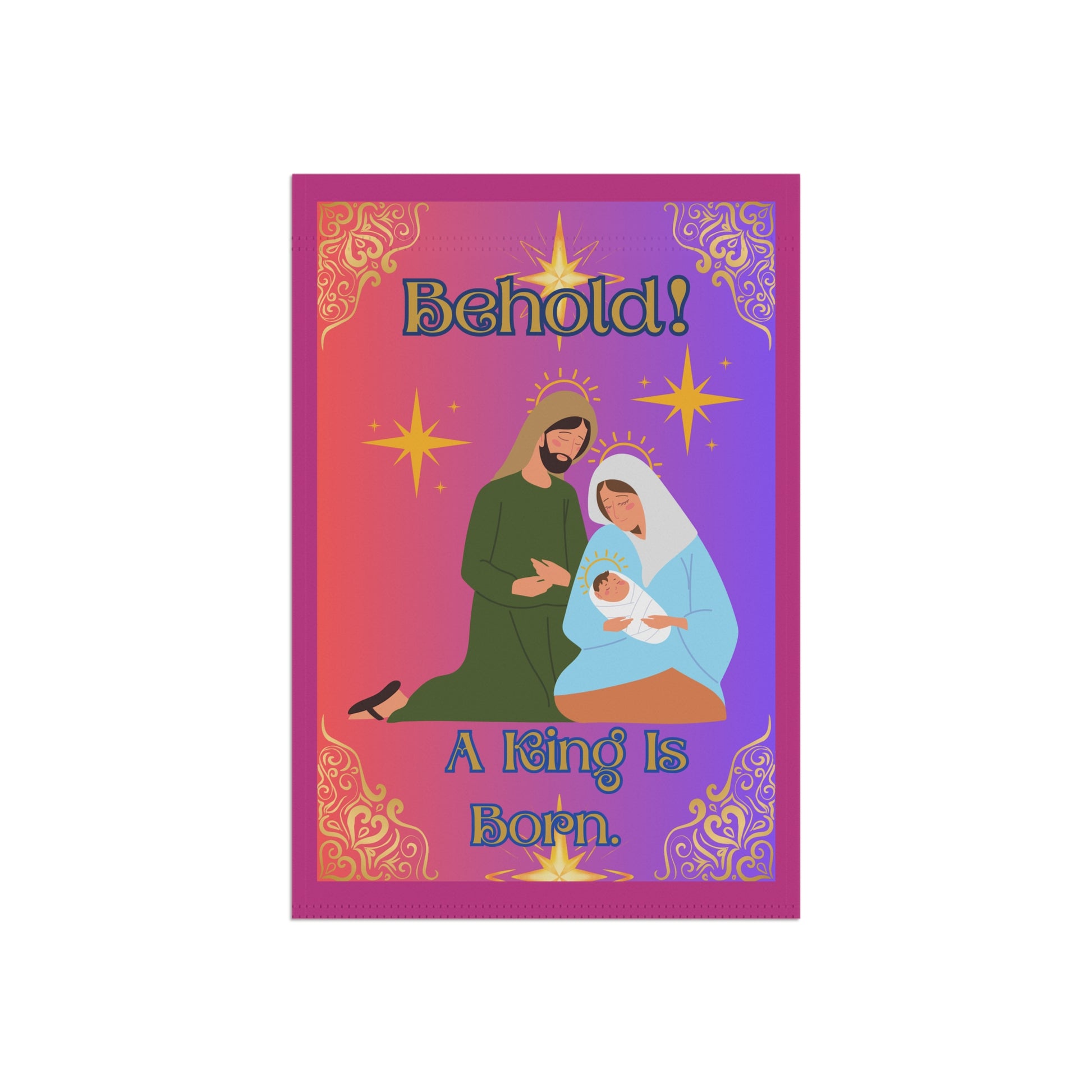 "Behold. A King Is Born!", Garden/Lawn Banner, 12 in x 18 in, Purple Ombre