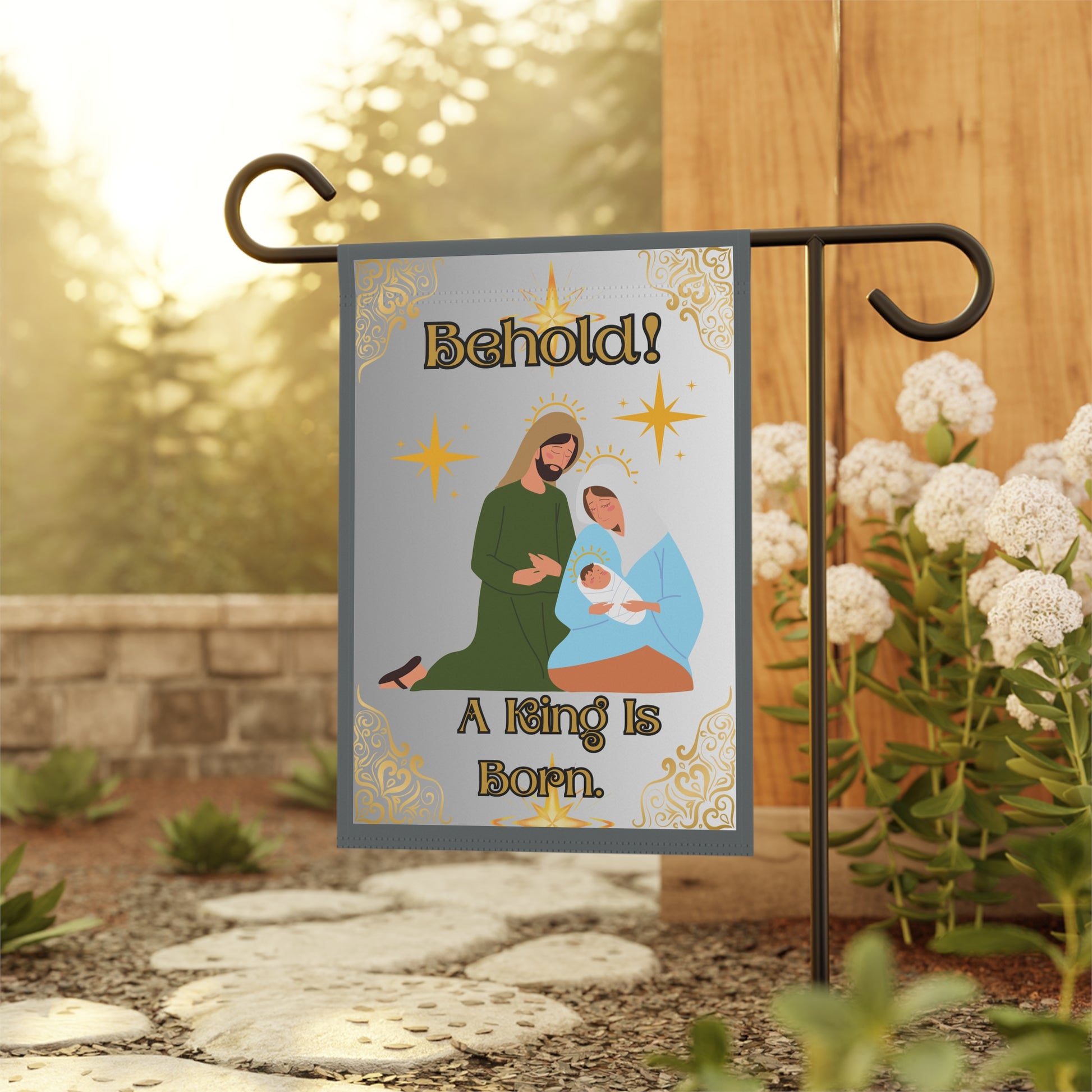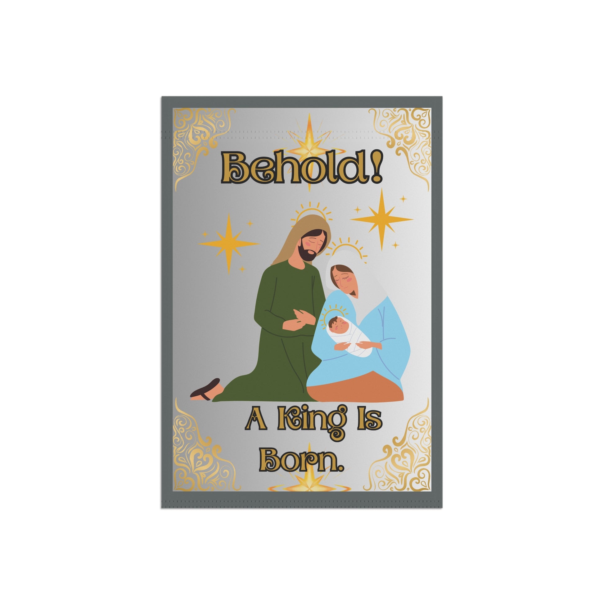 Get our custom designed "Behold A King Is Born" Lawn/Garden/Banner in White Ombre to help decorate and share your sentiment for the Christmas Season! Made with lightweight yet highly durable poly poplin-canvas fabric, this particular banner comes in size 12'' × 18'' and features a top sleeve for easy placement on poles. This design is printed in crisp detail and color on both sides of the flag. Check our store for different color variants of this same design. Happy Holidays!