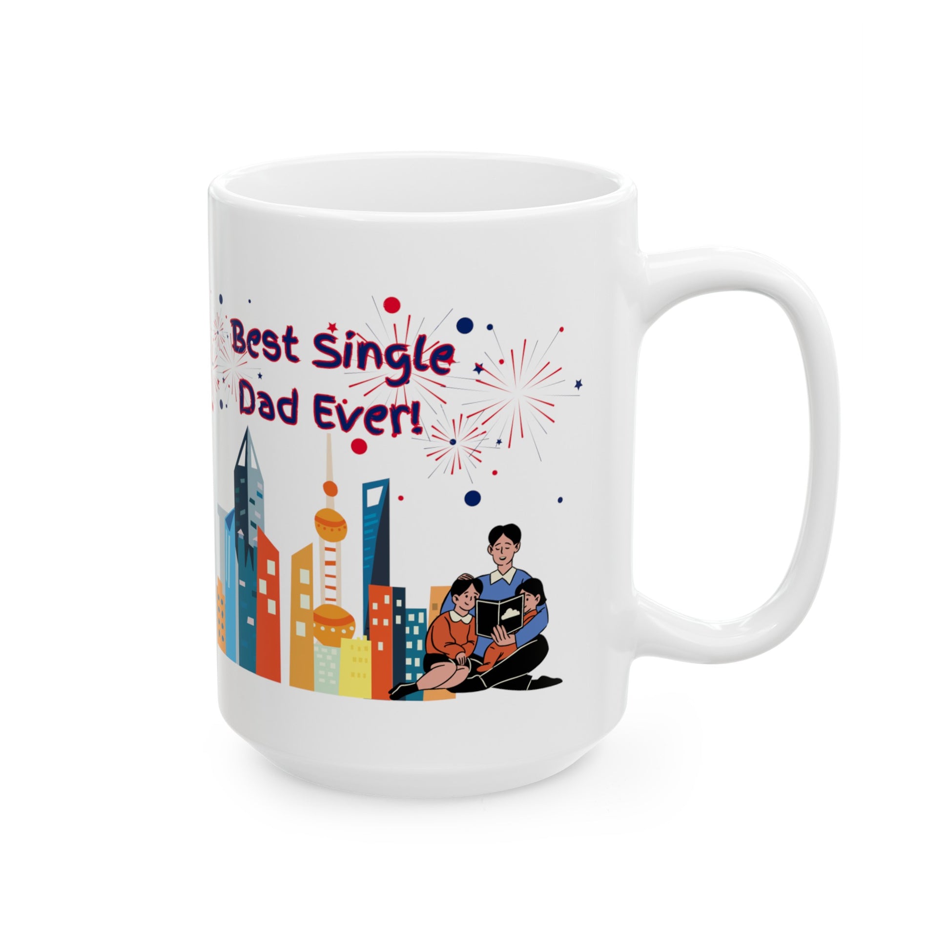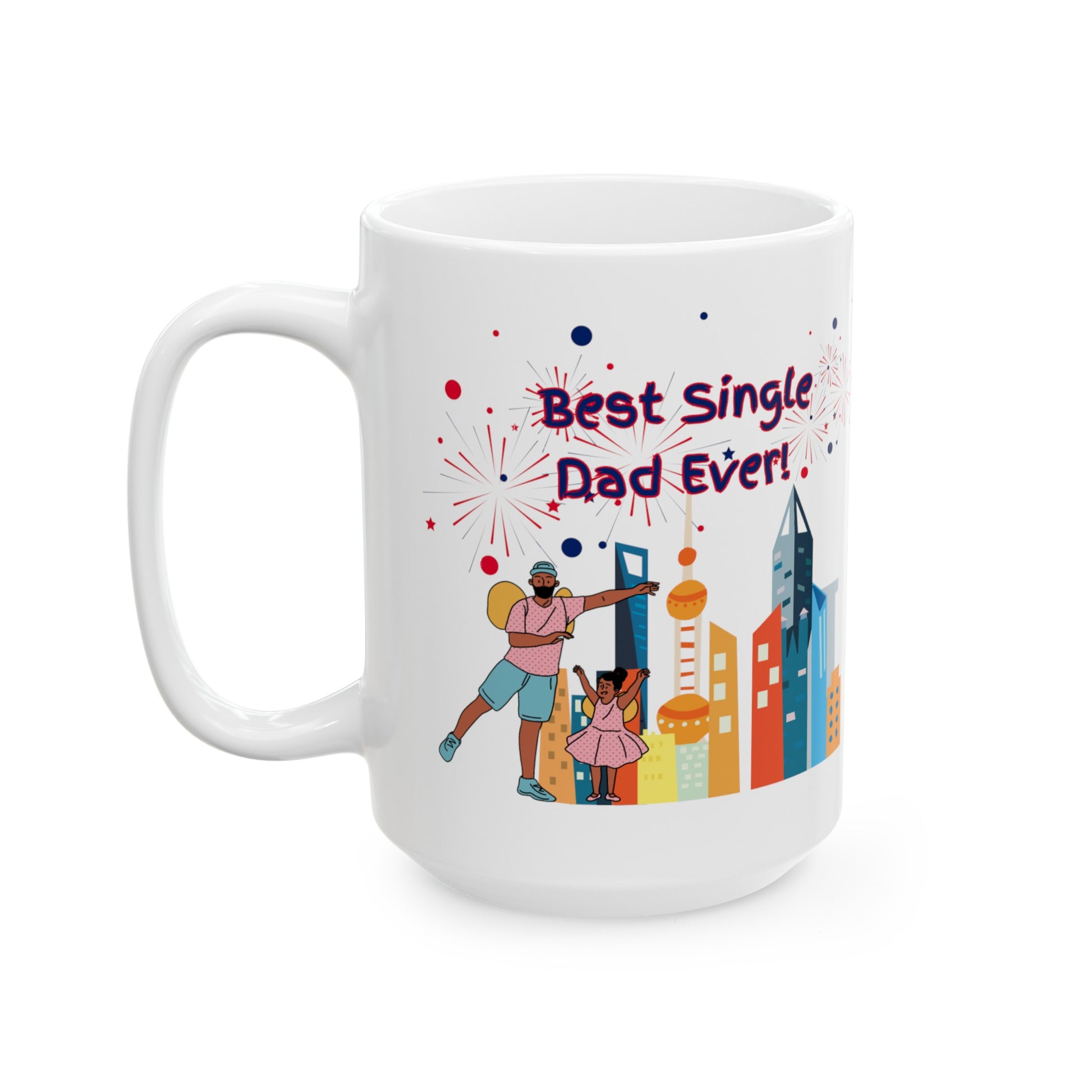 "Best Single Dad Ever" Urban Setting-Design, White Ceramic Mug, (11 oz, 15 oz)