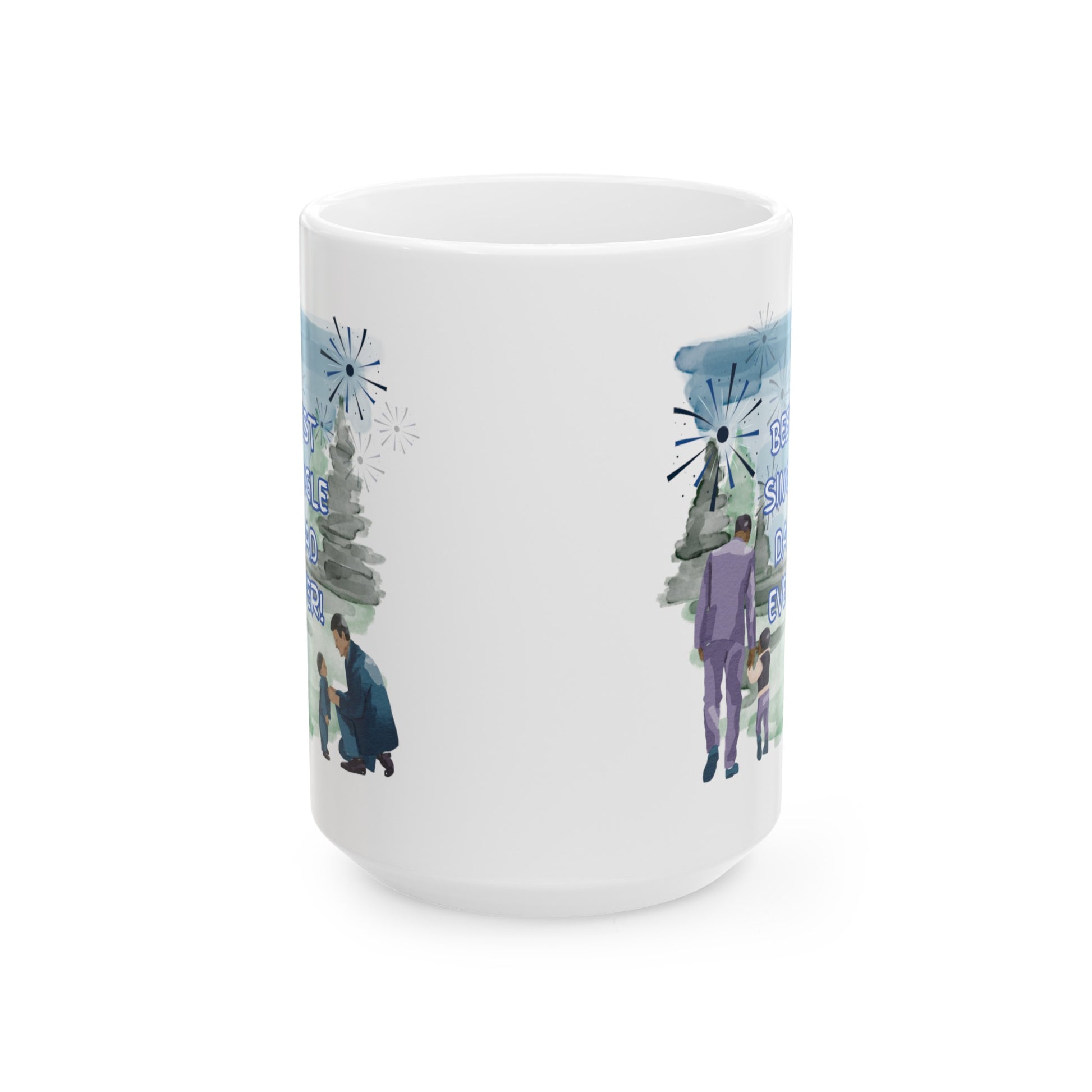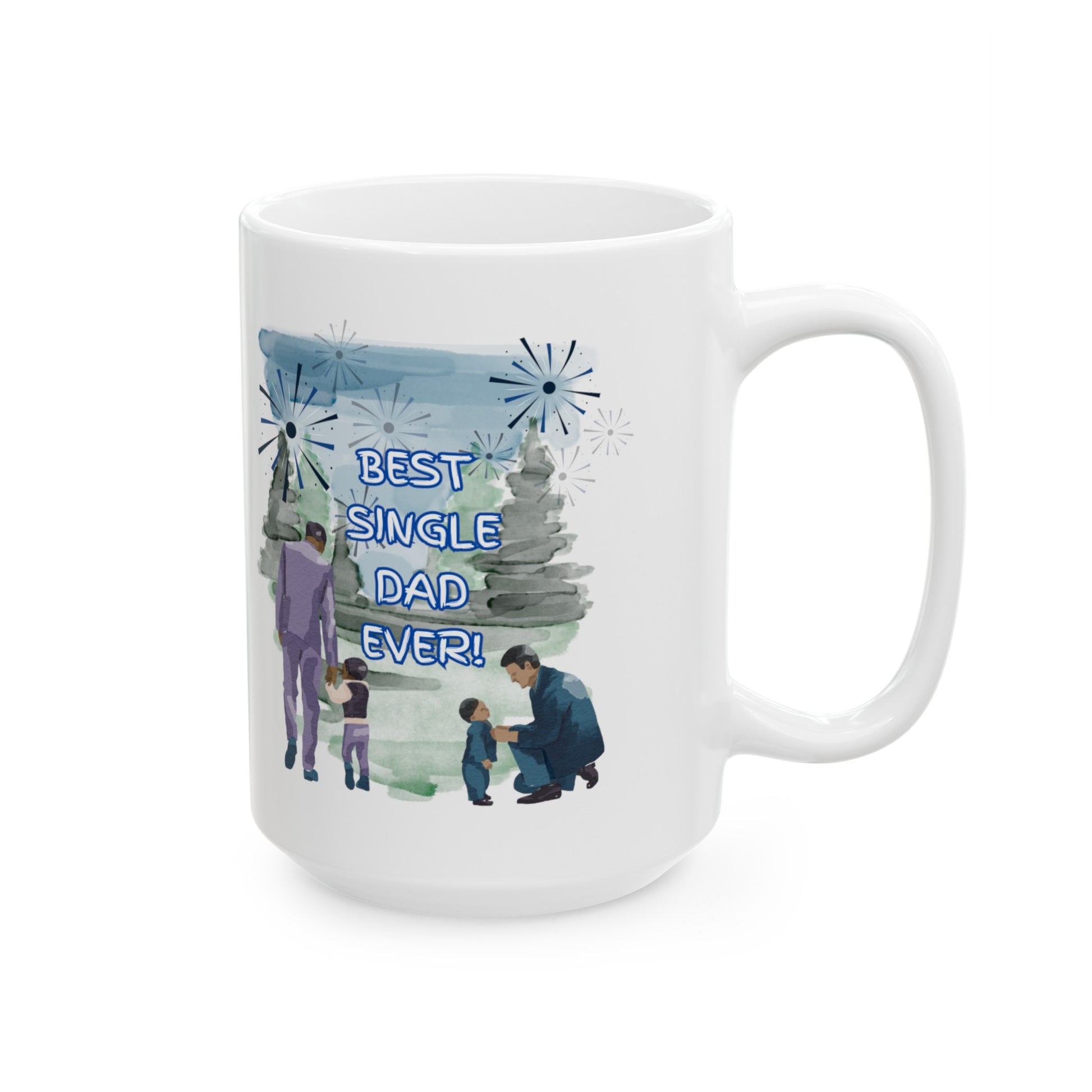 "Best Single Dad Ever" Retro Nature Setting, White Ceramic Mug, (11 oz, 15 oz)