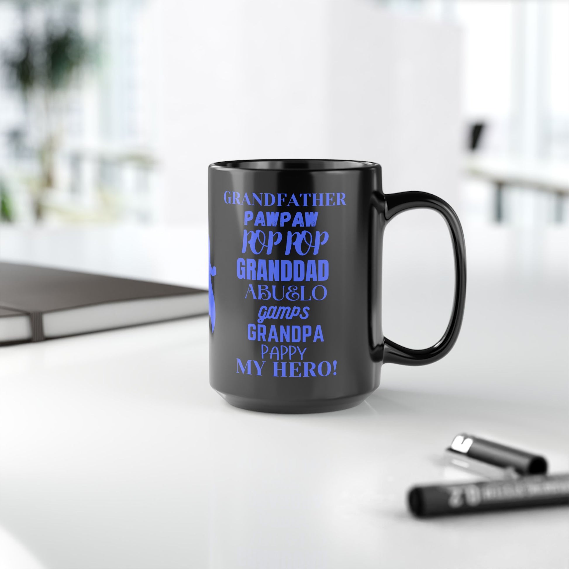 "Grandfather...My Hero", Black Ceramic 15 oz Mug