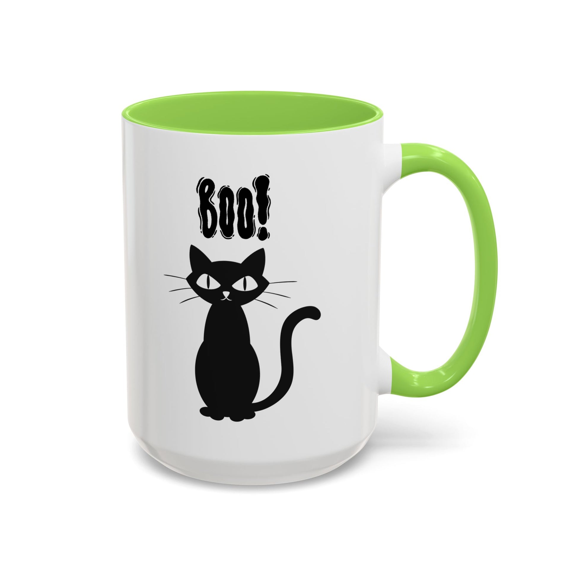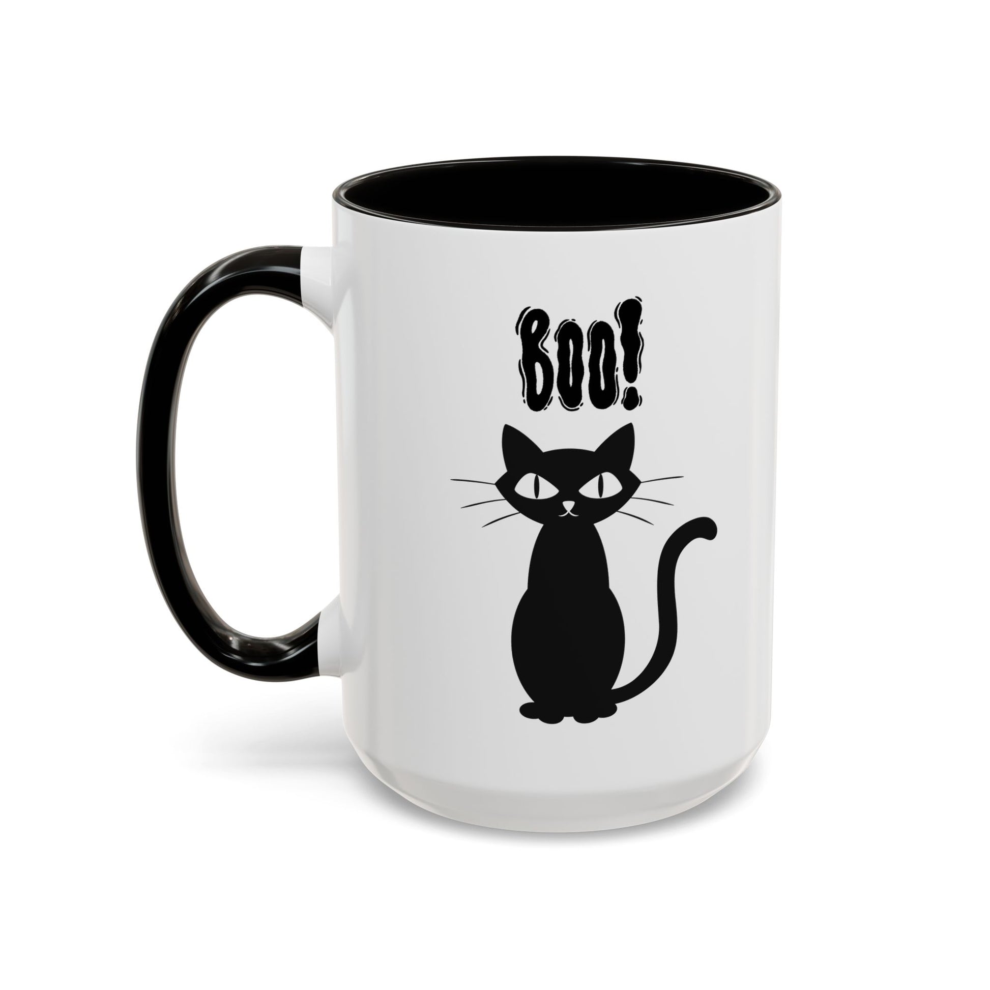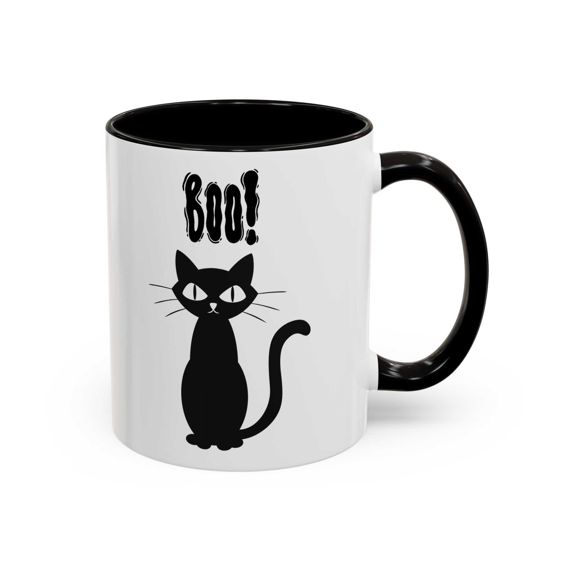 ''Boo" Black Kitty, White Ceramic Mugs With Colorful Accents (11oz and 15oz)