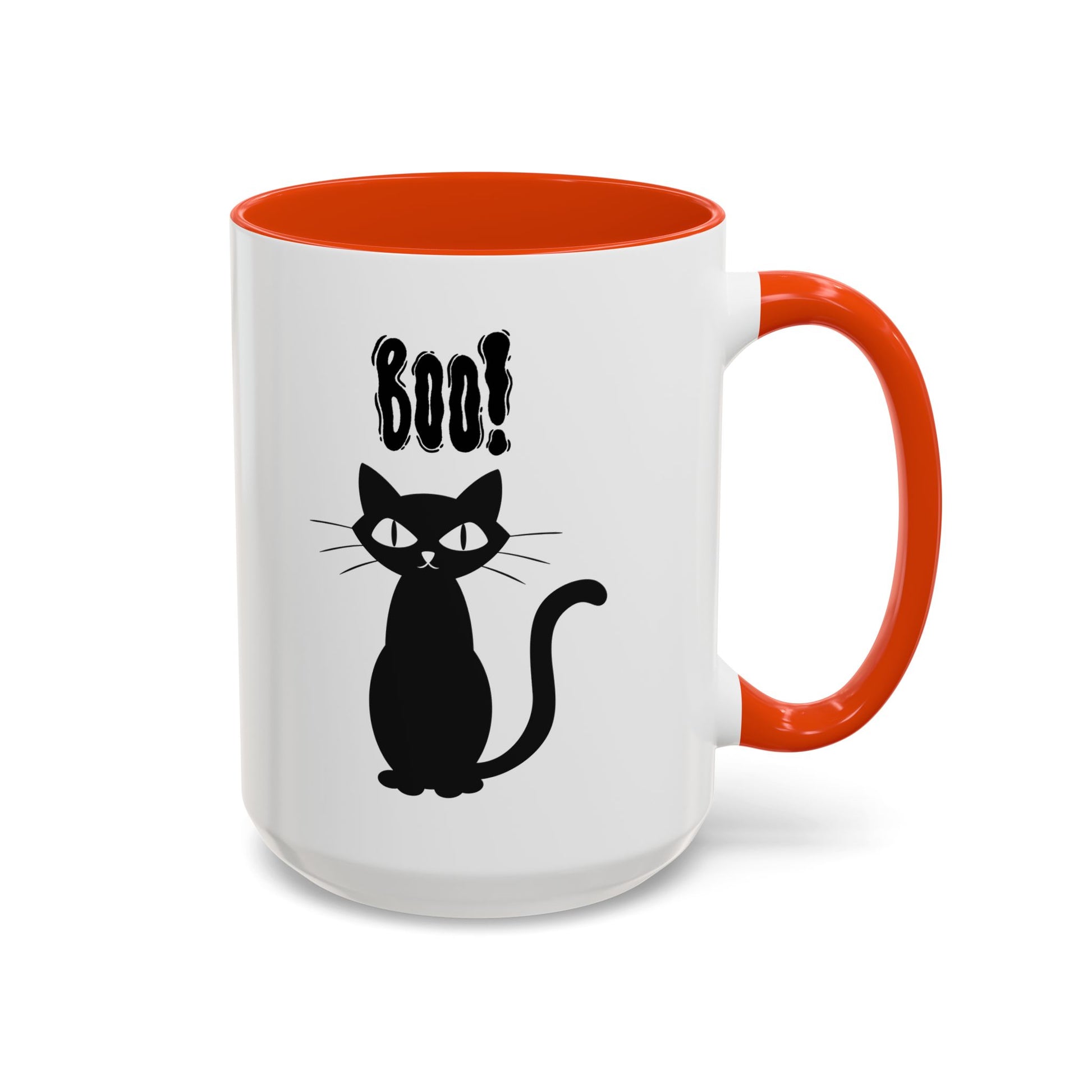 Have your favorite Fall Season Brew in our fun "Boo" Black Kitty, white ceramic mugs. Get one for yourself one for Halloween or give as gifts to those who love this spooky & fun time of the year! Mugs are a staple in every kitchen and when they're combined with a custom flair, they become instant favorites. This custom Halloween inspired design comes in in 5 color options. These white ceramic mugs hold 11oz & 15oz sizes of your favorite warm or cold beverage and come with a colored handle and interior. Happy Halloween!