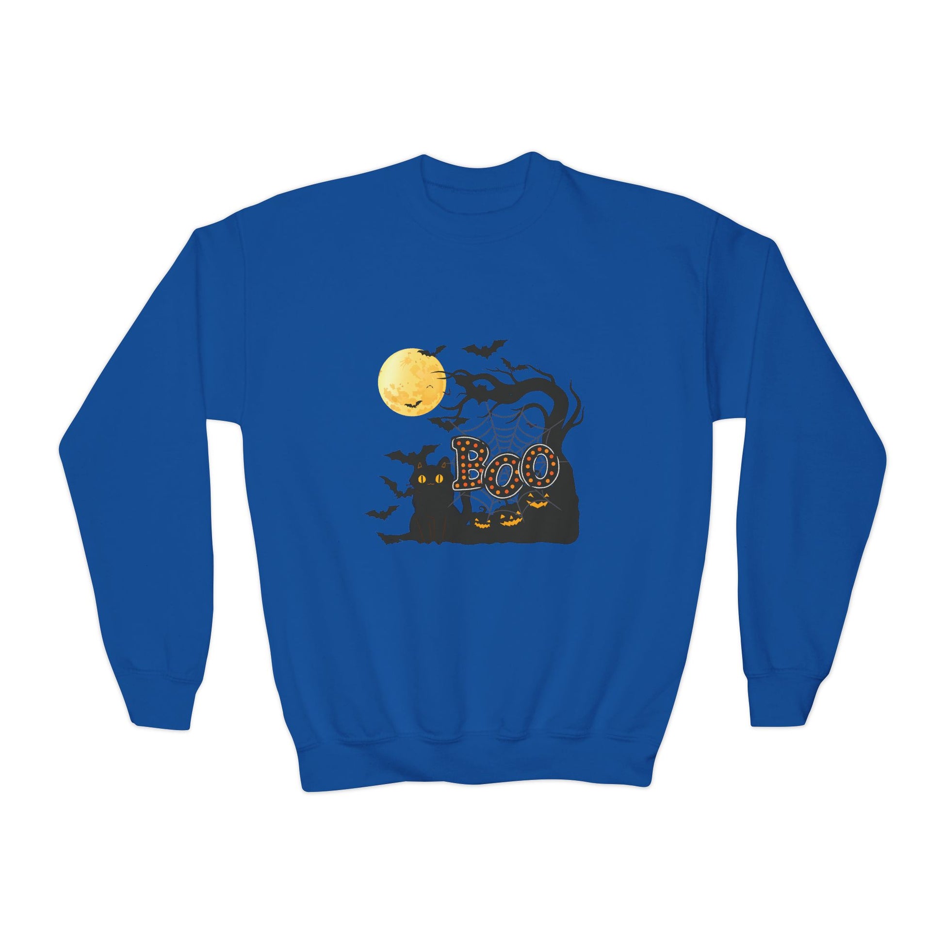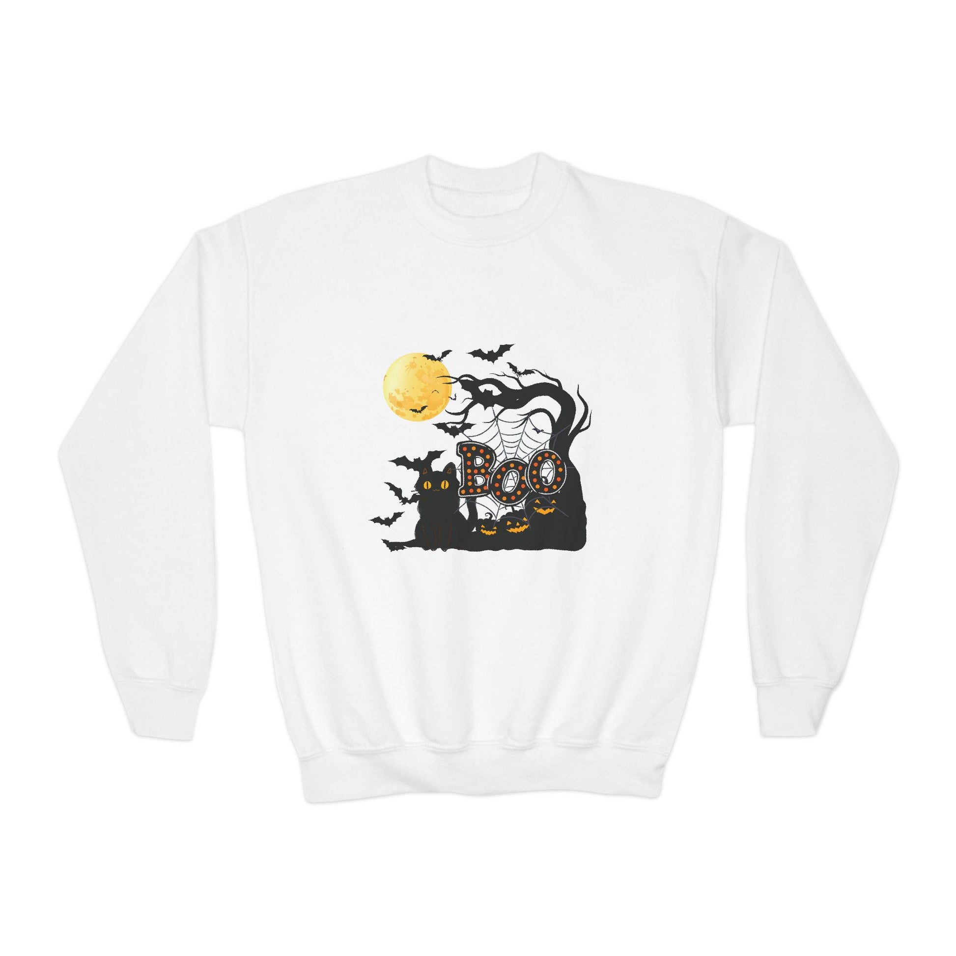 Get ready for Halloween fun with a cozy Youth Crewneck Sweatshirt! Featuring our custom designed, playful "Boo" complete with a cute black cat and spooky bats, smiling pumpkins and a full moon,this sweatshirt is perfect for keeping your young ones warm during trick-or-treating or while enjoying seasonal festivities. Made from a soft and durable cotton-poly blend, it’s designed for comfort and flexibility, making it ideal for active kids. Whether they're attending Halloween parties, school events, or just enjoying movie nights at home, this sweatshirt adds a fun flair to their wardrobe. Perfect for Halloween, fall gatherings, and everyday wear, it’s a delightful addition to any child’s collection. Take a look in our store for the adult version of the same design and make it a family affair. Happy Halloween Season!