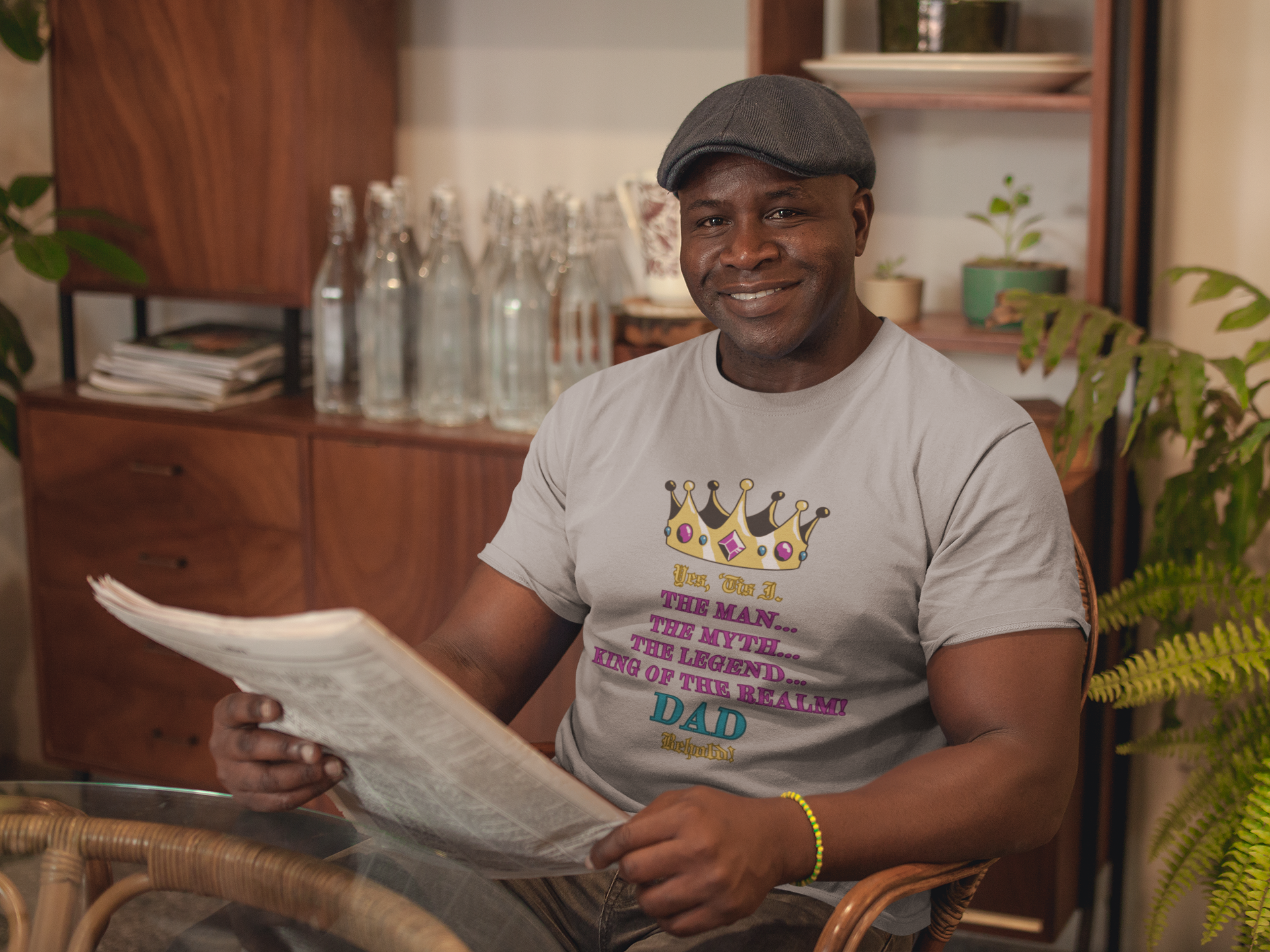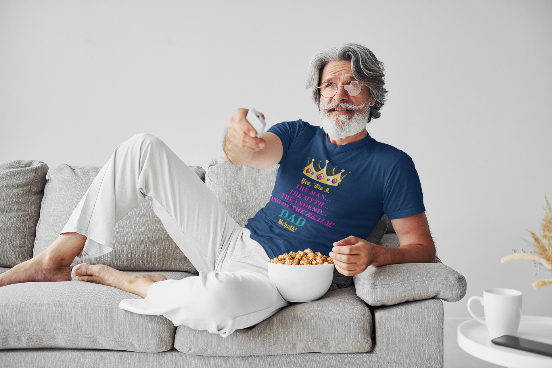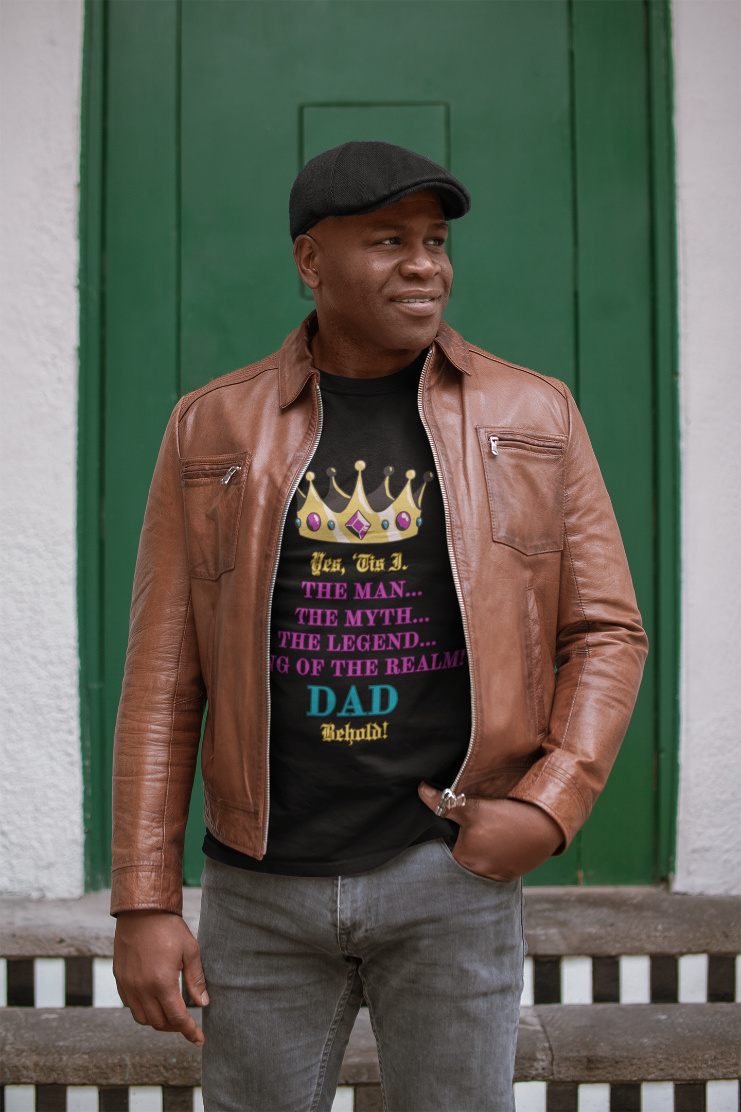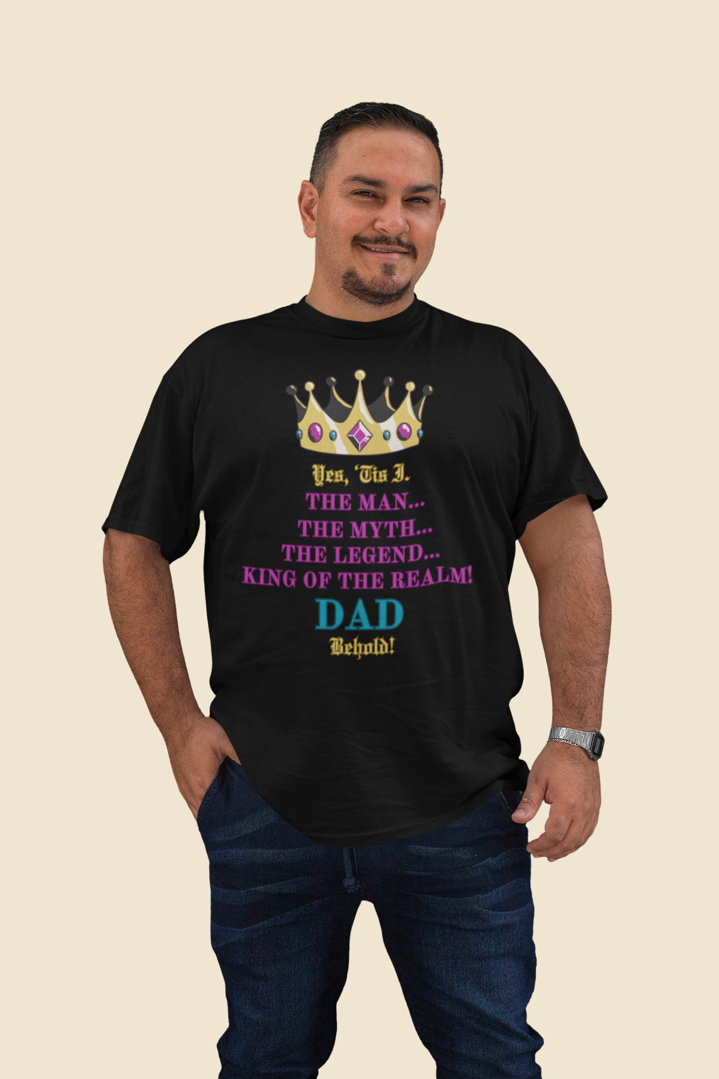 "The King Of The Realm" better known as "Dad," will love this T-shirt!. This fun, custom designed premium quality, T-shirt will command attention and garner smiles or maybe even some envy- when worn-LOL. A great gift for Father's Day, Birthday's, Retirements or "just because".