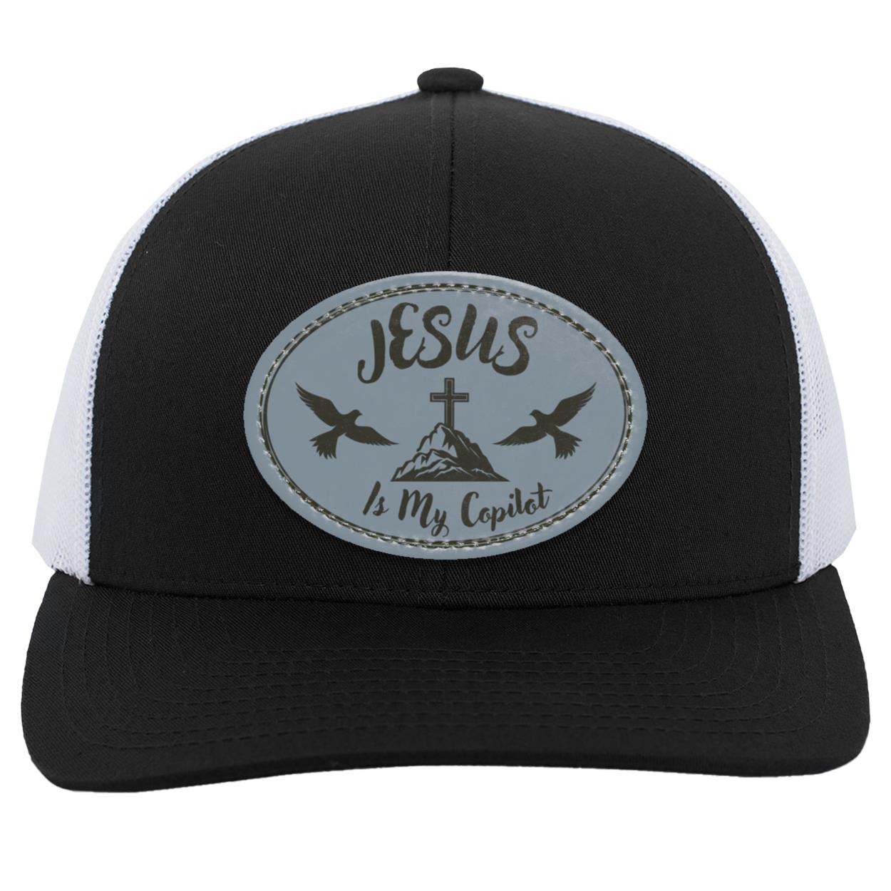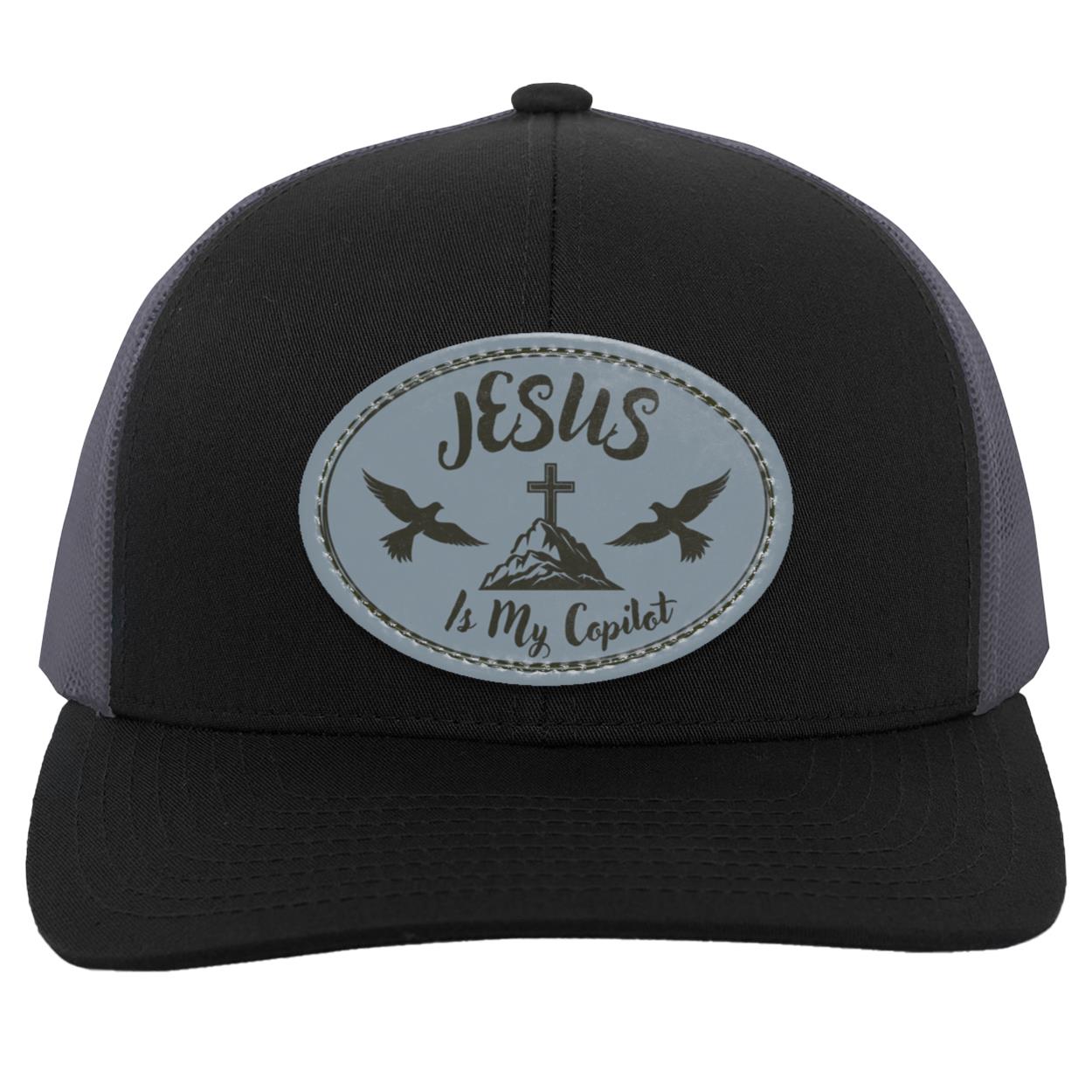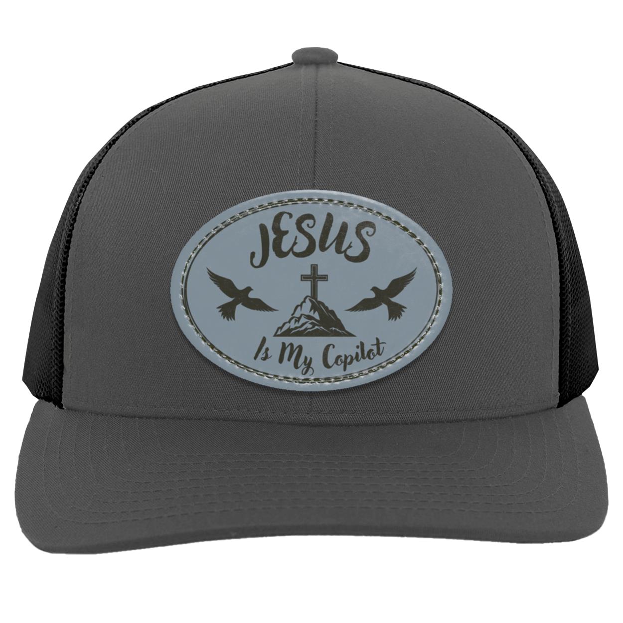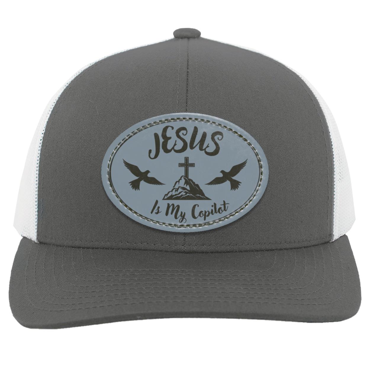 - Get this awesome snap back trucker hat for the person who loves to share their faith. Our custom designed "Jesus Is My Copilot", gray colored Vegan Leather Patch, is in a classy Oval shape and the hat itself comes in a variety of 7 different colors. This Trucker Style hat is one that could truly become a favorite! Please check our store for different versions of the same design.