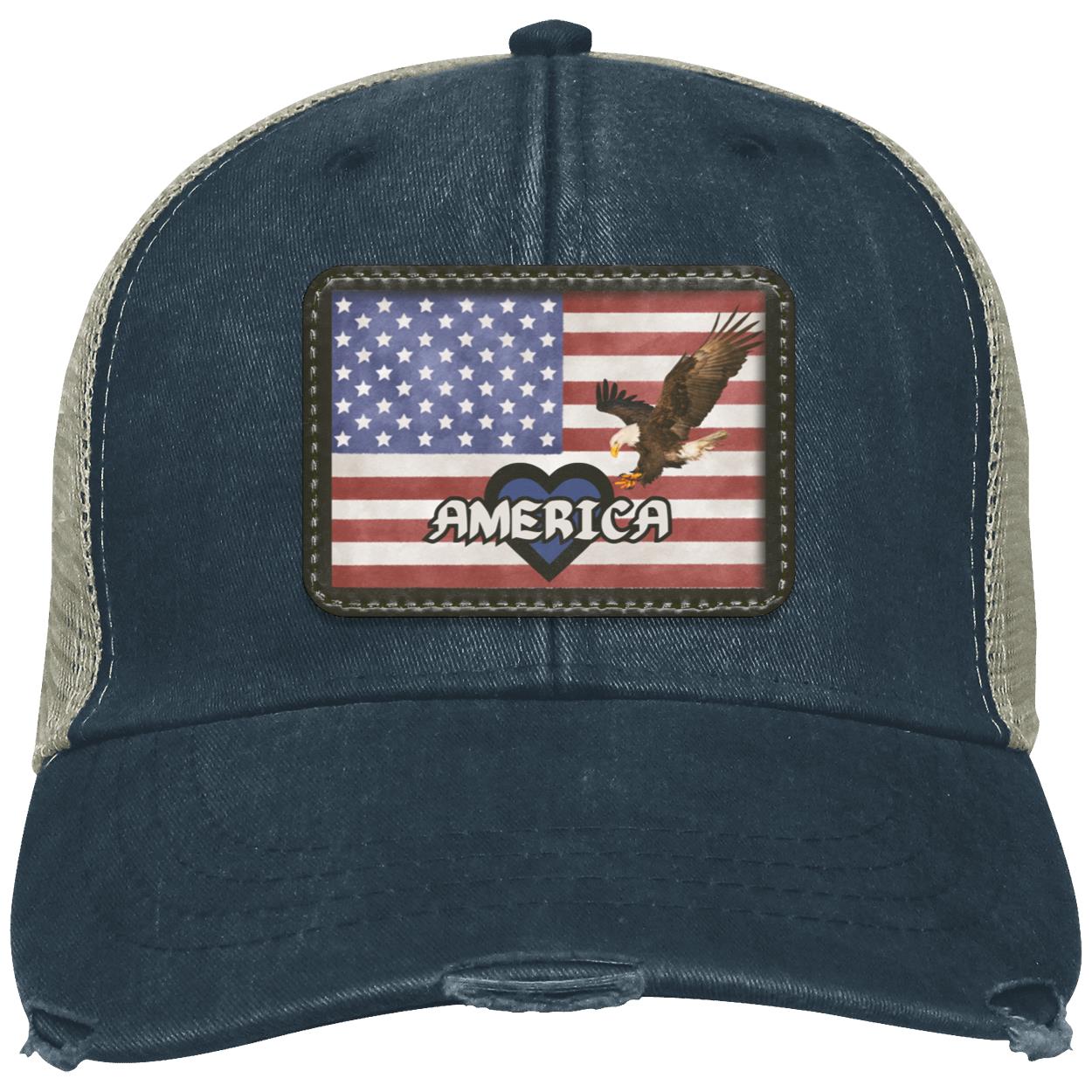 "Love America" Ollie Disrtressed Trucker Hat with Blue Heart Design
