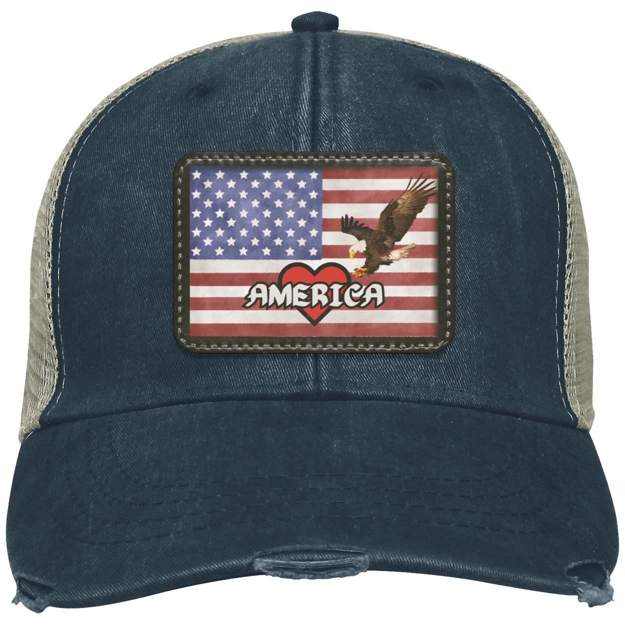 "Love America" Ollie Disrtressed Trucker Hat with Red Heart Design