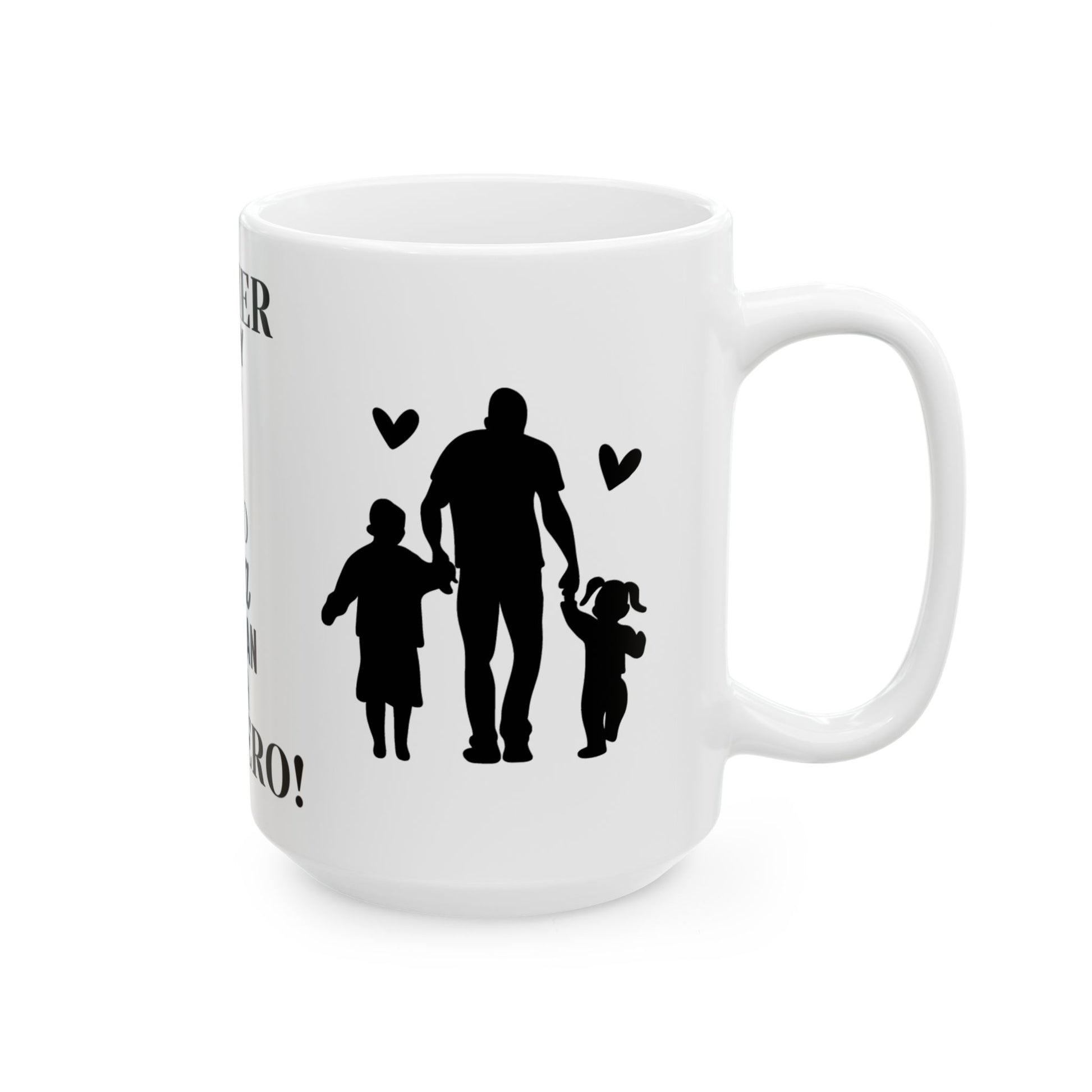 "Father -My Hero" White Ceramic Mug 15oz, for the Dad that deserves to know just how special he is with every sip!