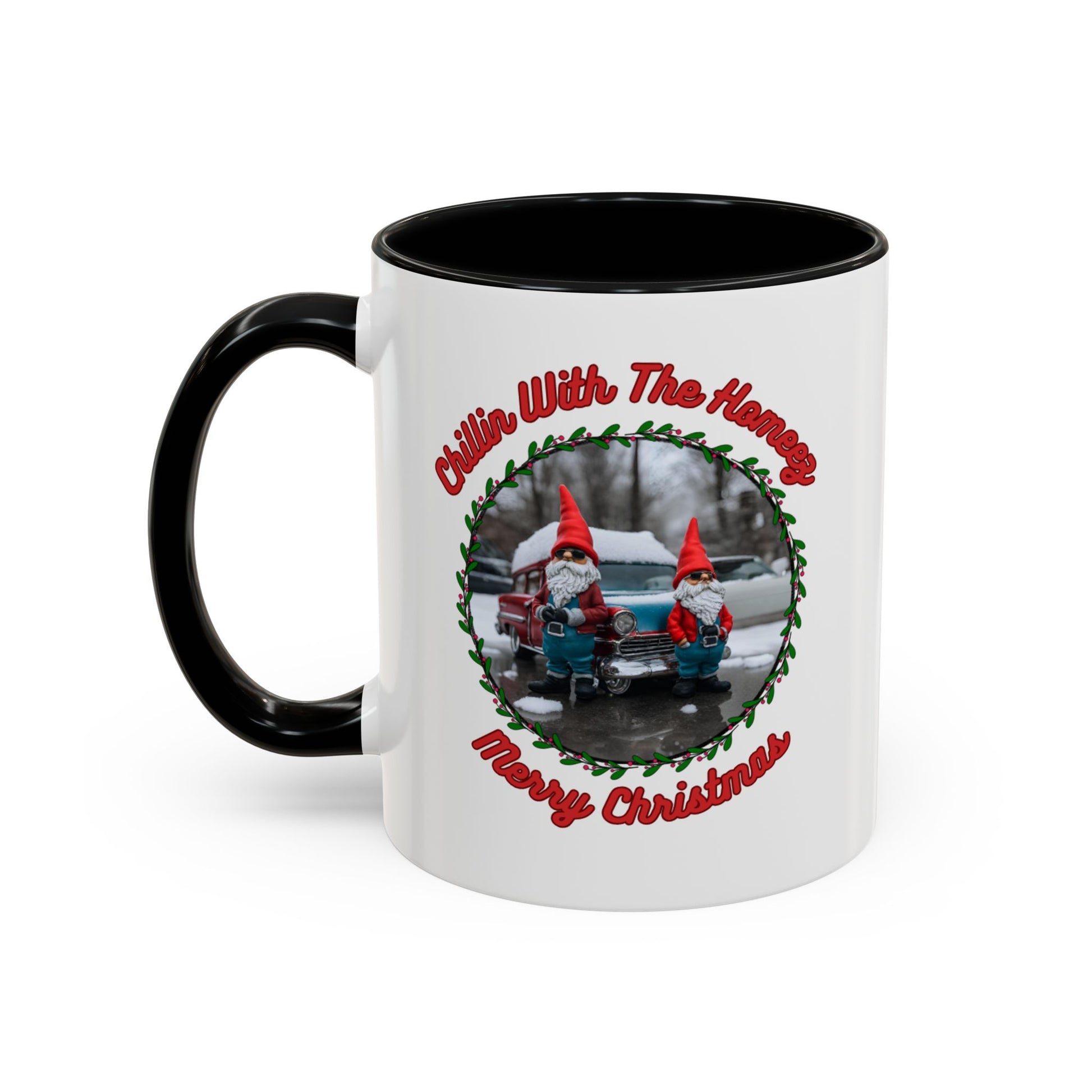 Get our fun, custom designed, two-tone accent white ceramic mug, "Chillin With The Homeez"-Merry Xmas." This stylish mug comes in 2 sizes 11 oz and 15 oz and 5 different accent colors for the interior and handle areas. Made with white ceramic and sporting a sleek glossy finish with eye-catching contrast, this mug is a bliss both to use and to look at. The ergonomic C-shaped handle provides a comfortable grip, while the lead and BPA-free construction guarantee peace of mind with every sip. Happy Holidays!