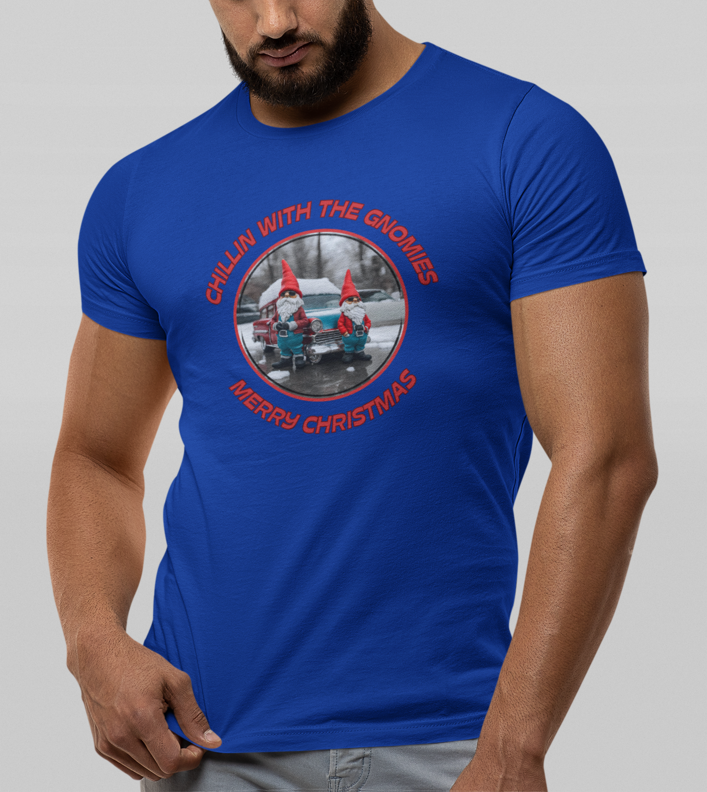 Get our custom designed, "Chillin With The Homeez-Merry Christmas", Unisex short sleeved cotton jersey T-shirt, for yourself or as a gift for someone else to help share holiday cheer in style! Check out the cool "Gnome like " figures standing in front of a snow capped vintage ride. This particular item comes in 8 different color choices. Happy Holidays!