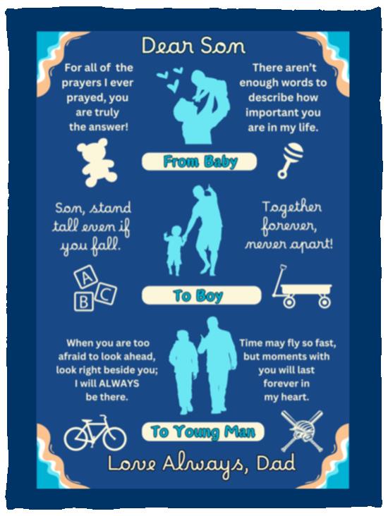 "Dear Son-Love Always-Dad" Cozy Fleece Blanket in Blue, 30 in x 40 in