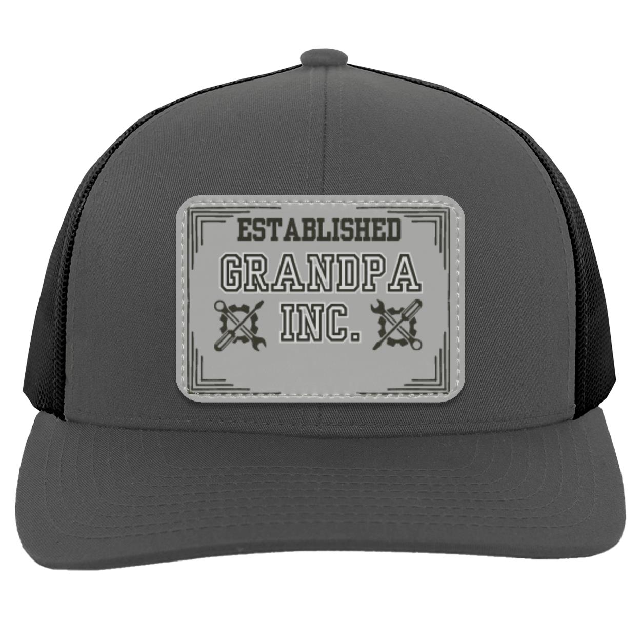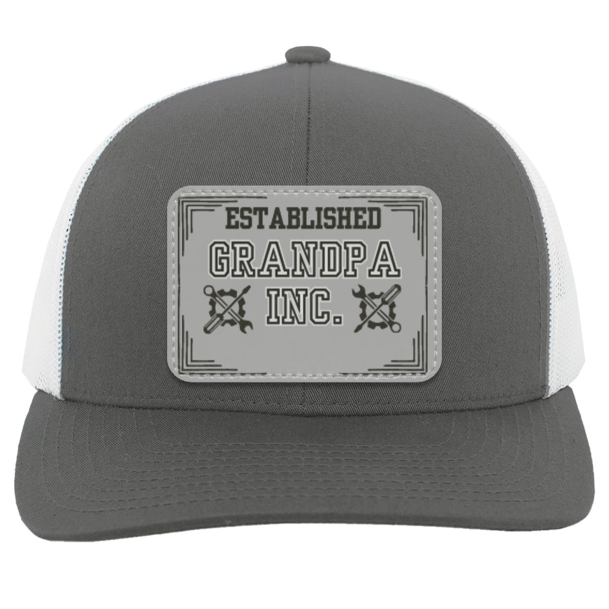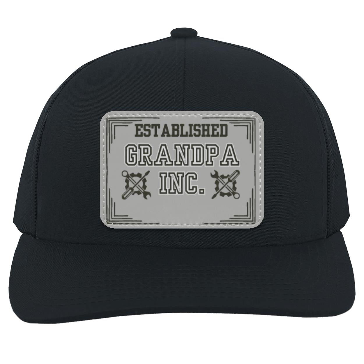 "Grandpa Inc." Trucker Snap Back - Personalized Gray Vegan Patch