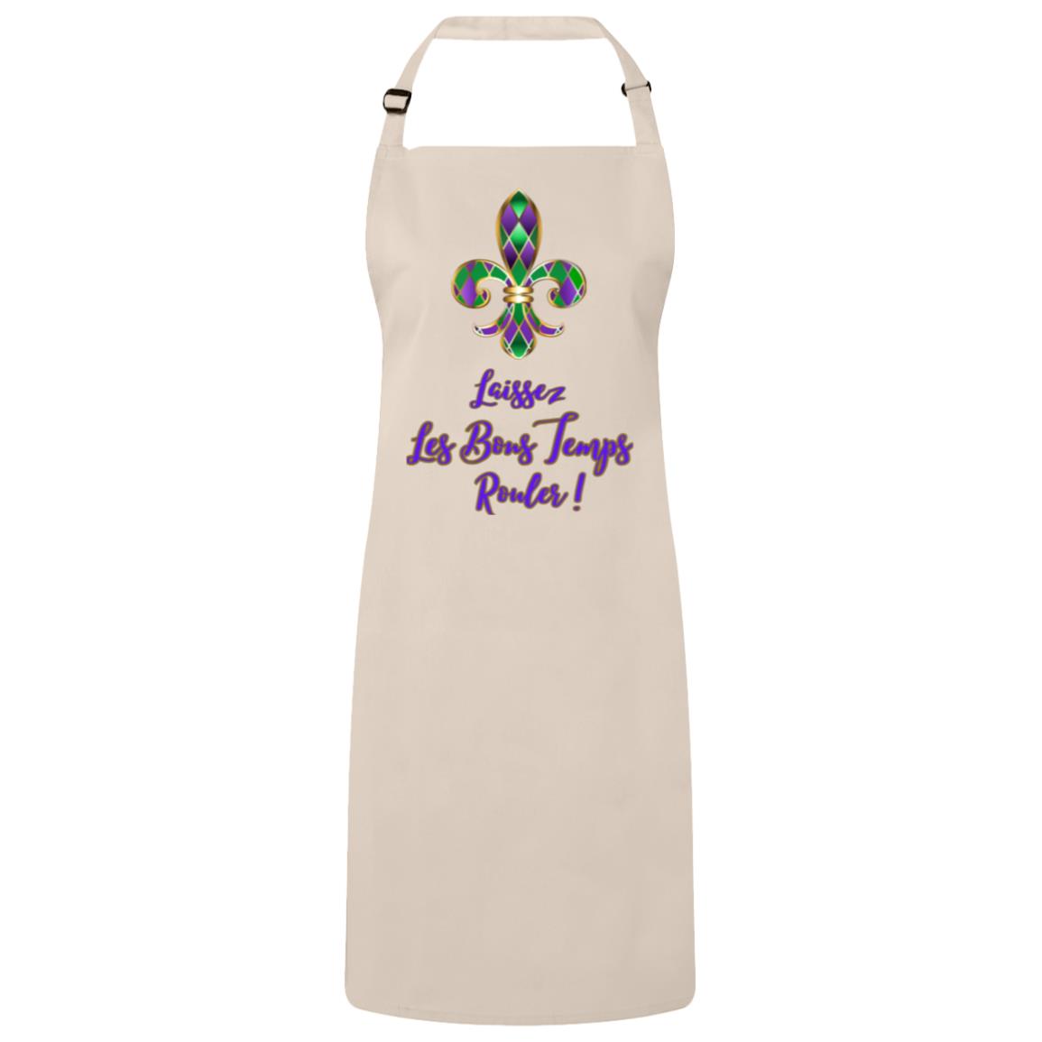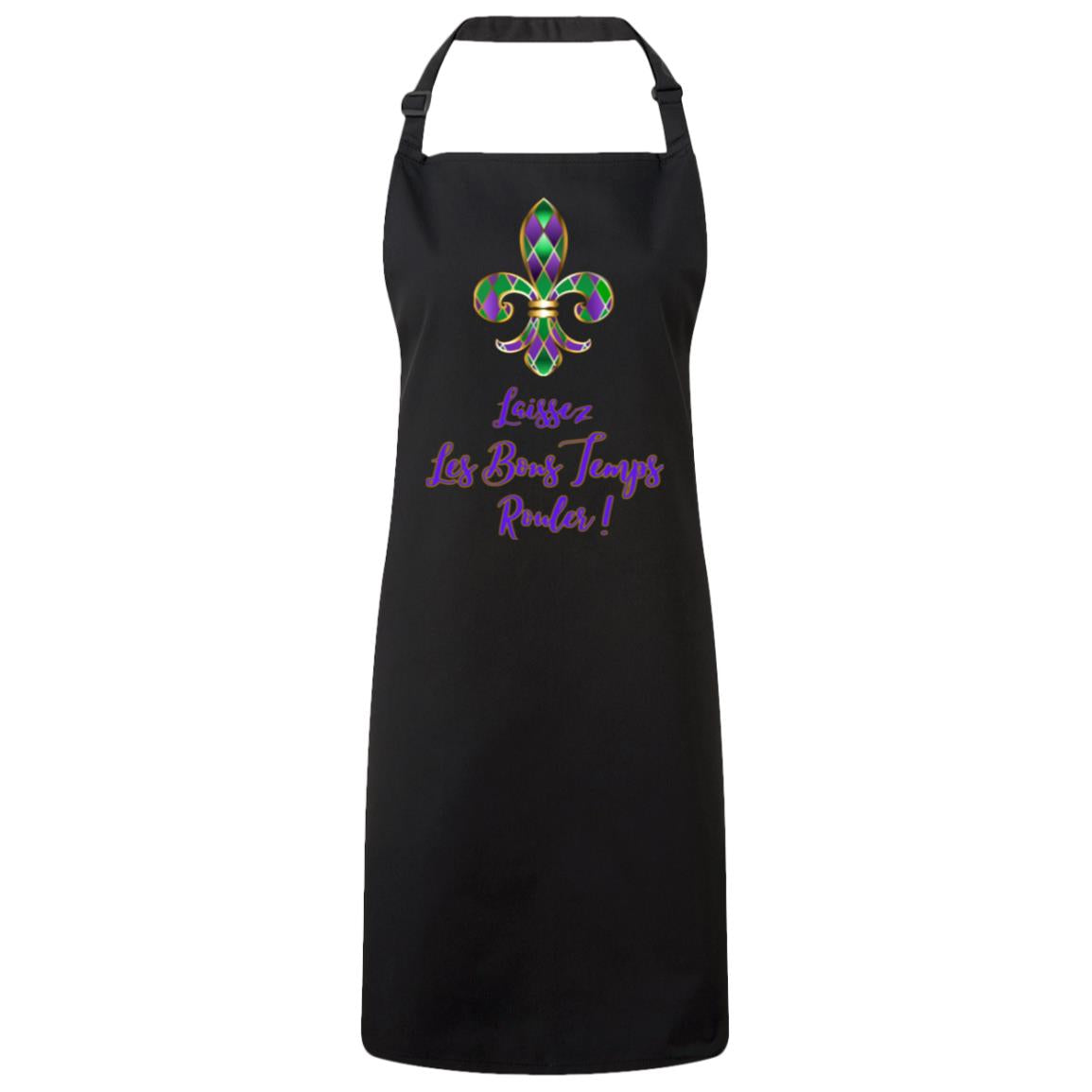 "Laissez Les Bons Temps Rouler" Unisex Bib Apron, Purple, Green and Gold Design