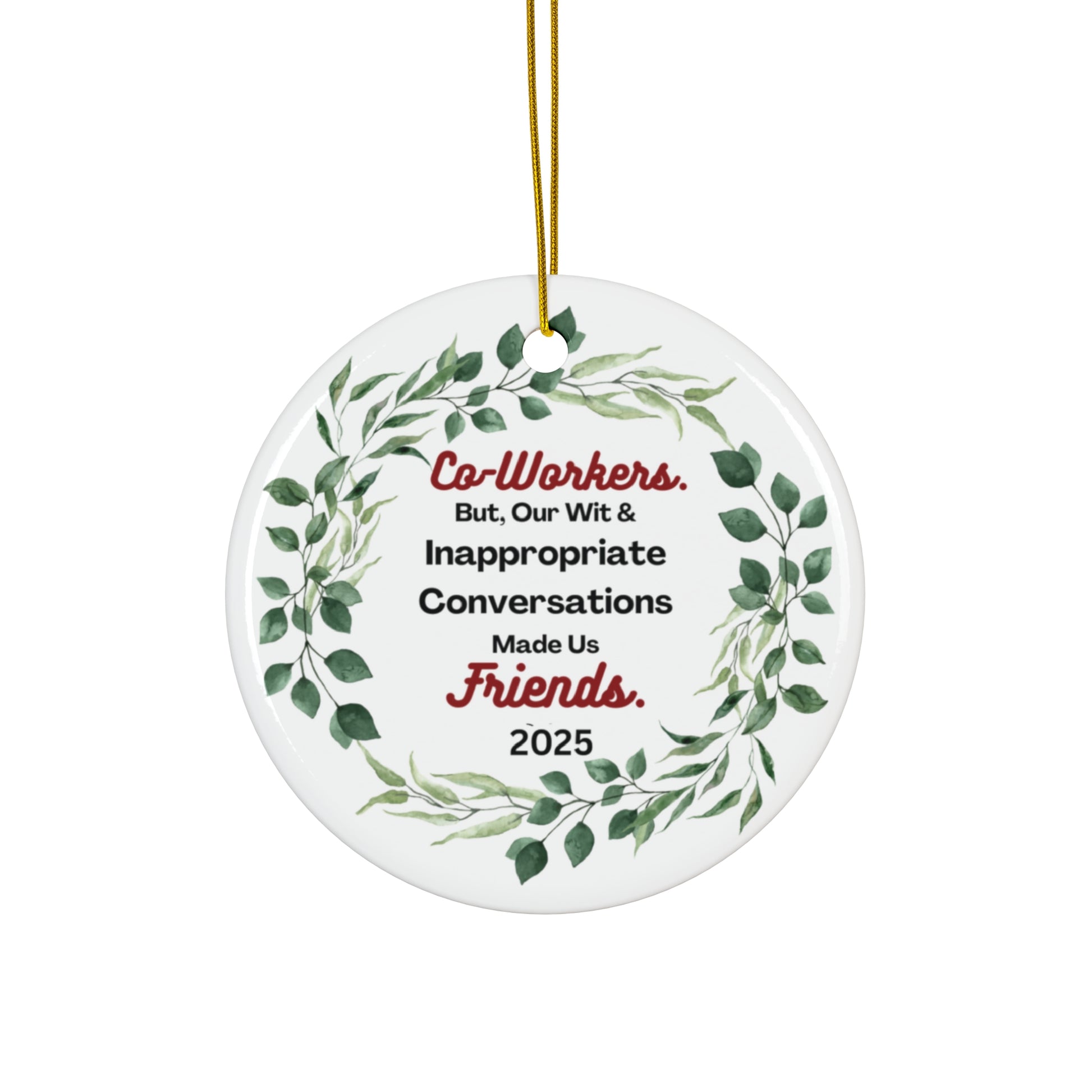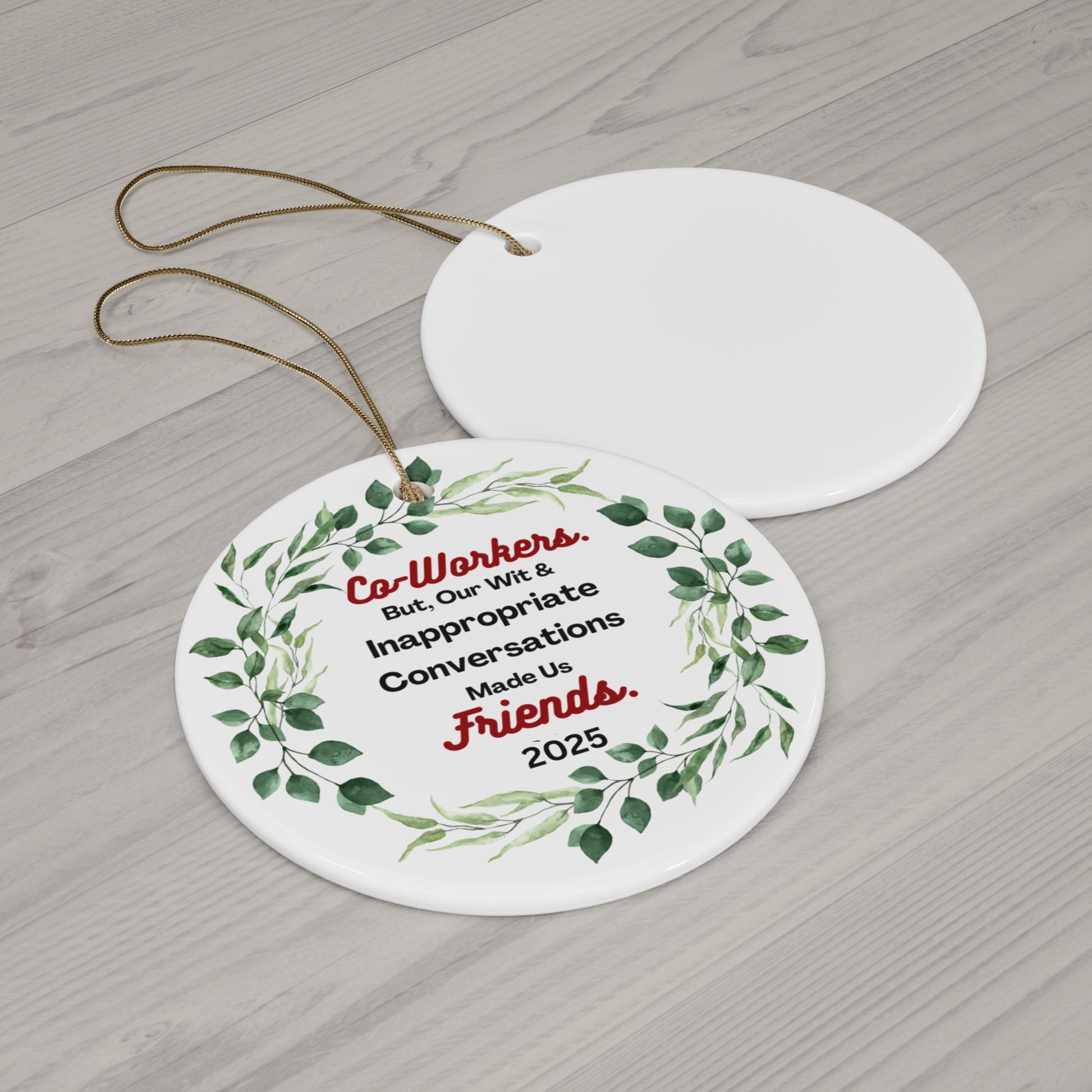 "Coworkers-Friends,-2025 Round Ceramic Ornament, So They Know EVERY Christmas, Just How Important They Are !
