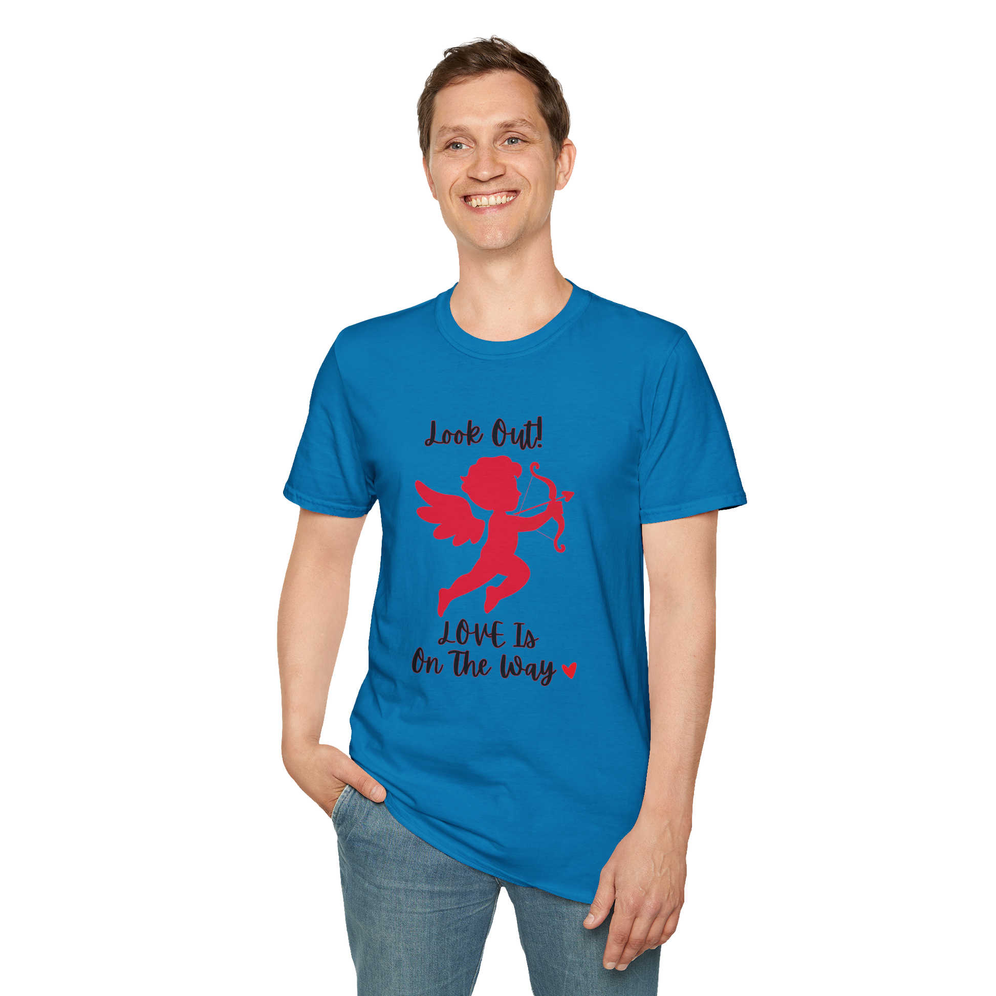 Cupid with Bow T-Shirt — "Look Out! LOVE Is On The Way" Valentine Unisex Tee