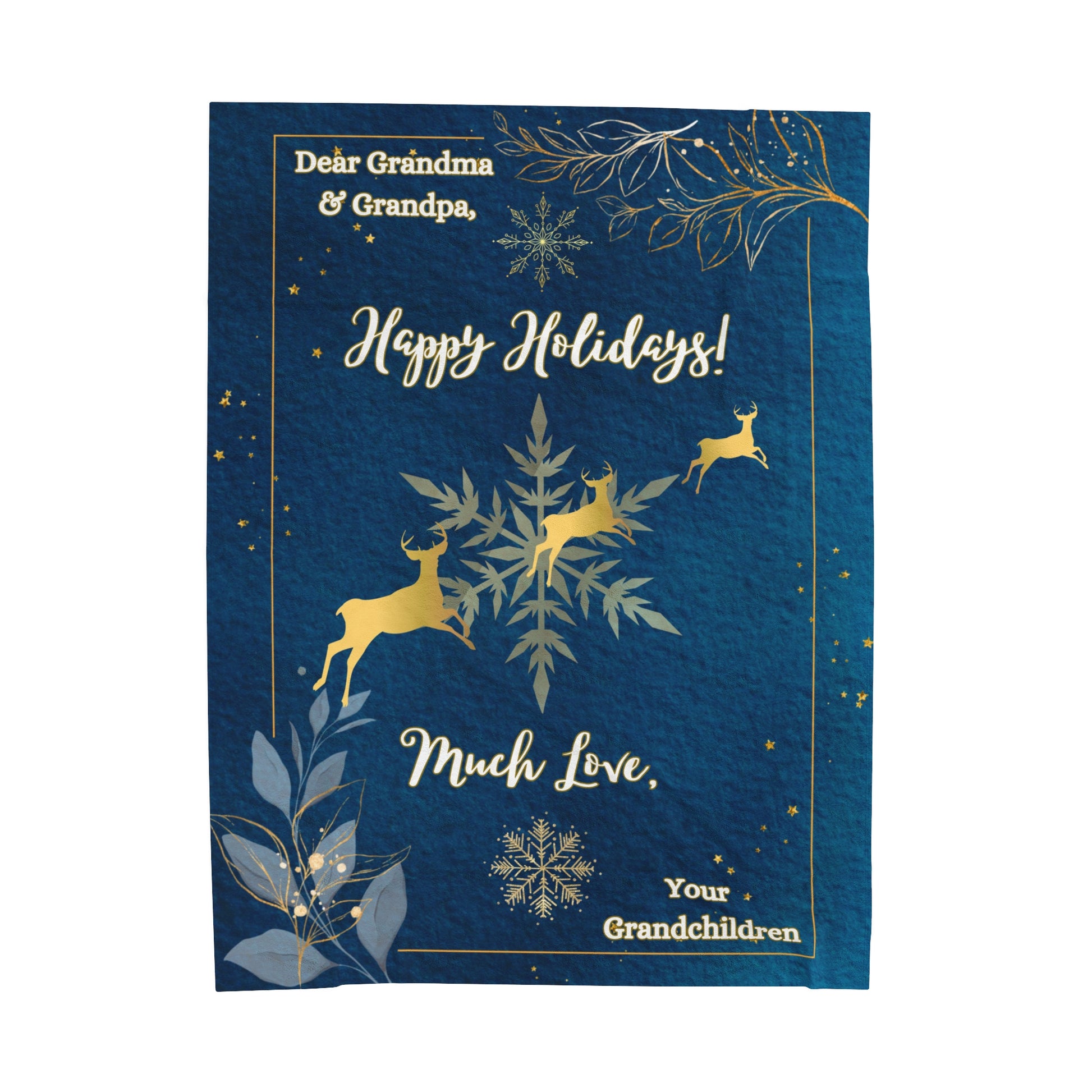 "Dear Grandma and Grandpa, Happy Holidays! Navy Blue,Velveteen 60 in x 80 in Plush Blanket