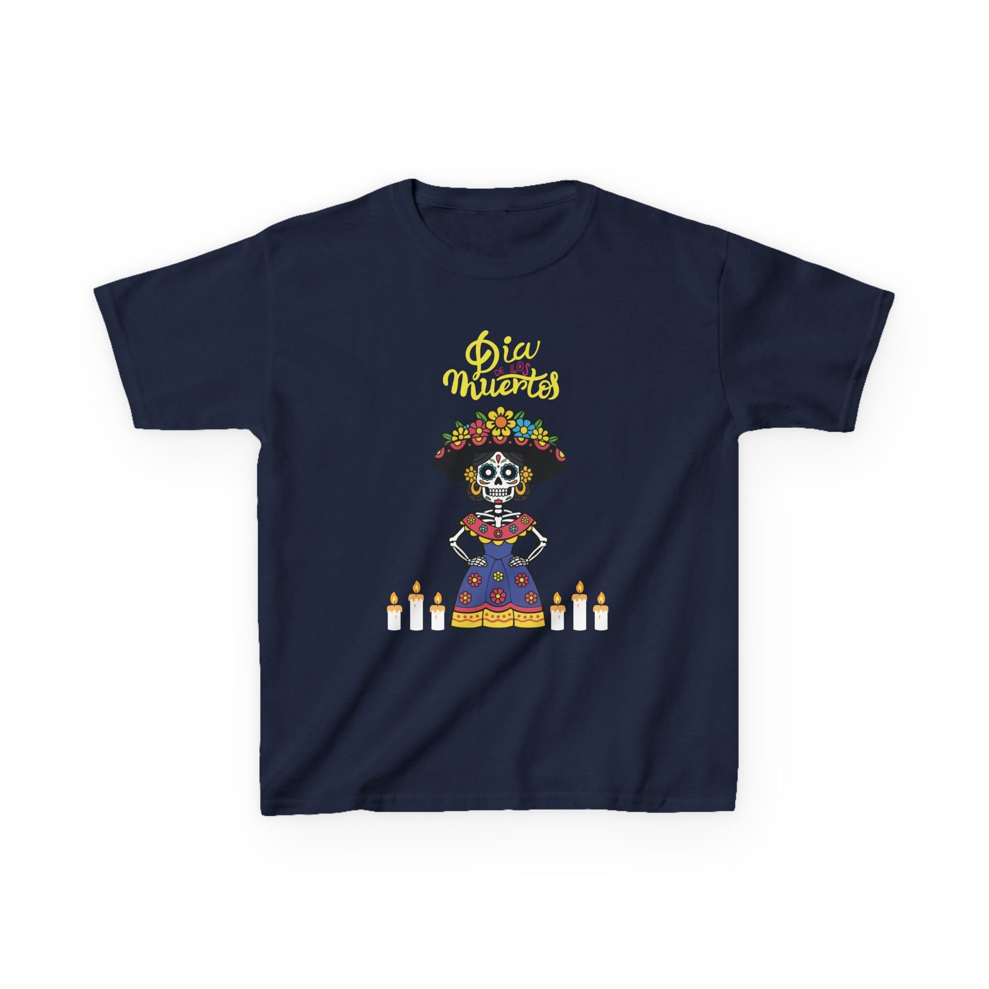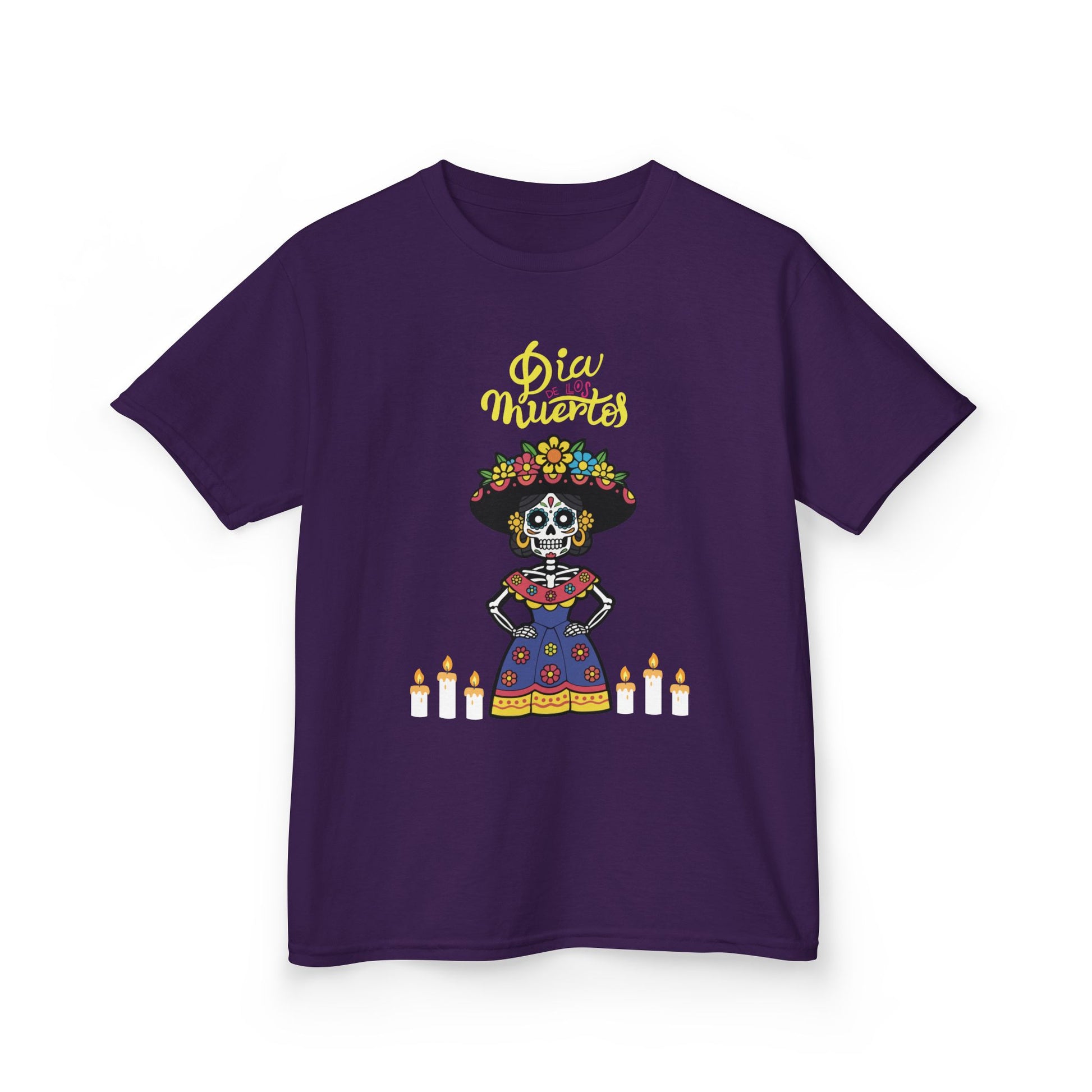 "Dia De Los Muertos" Kids Heavy CottonTee. A Fun and Colorful Sugar Skull Design
