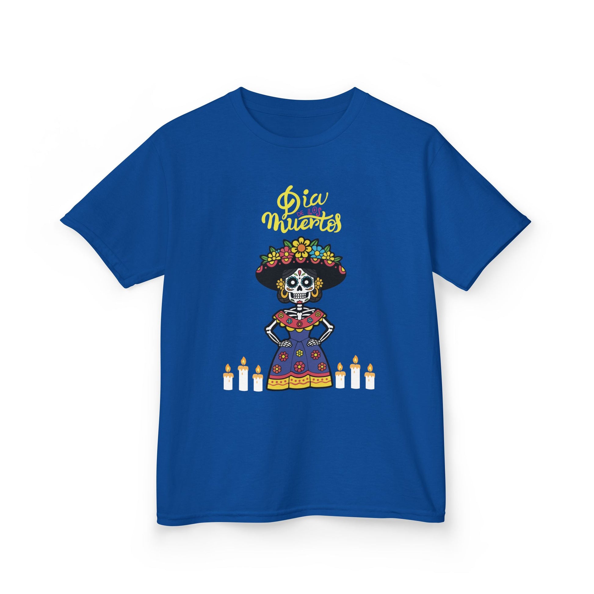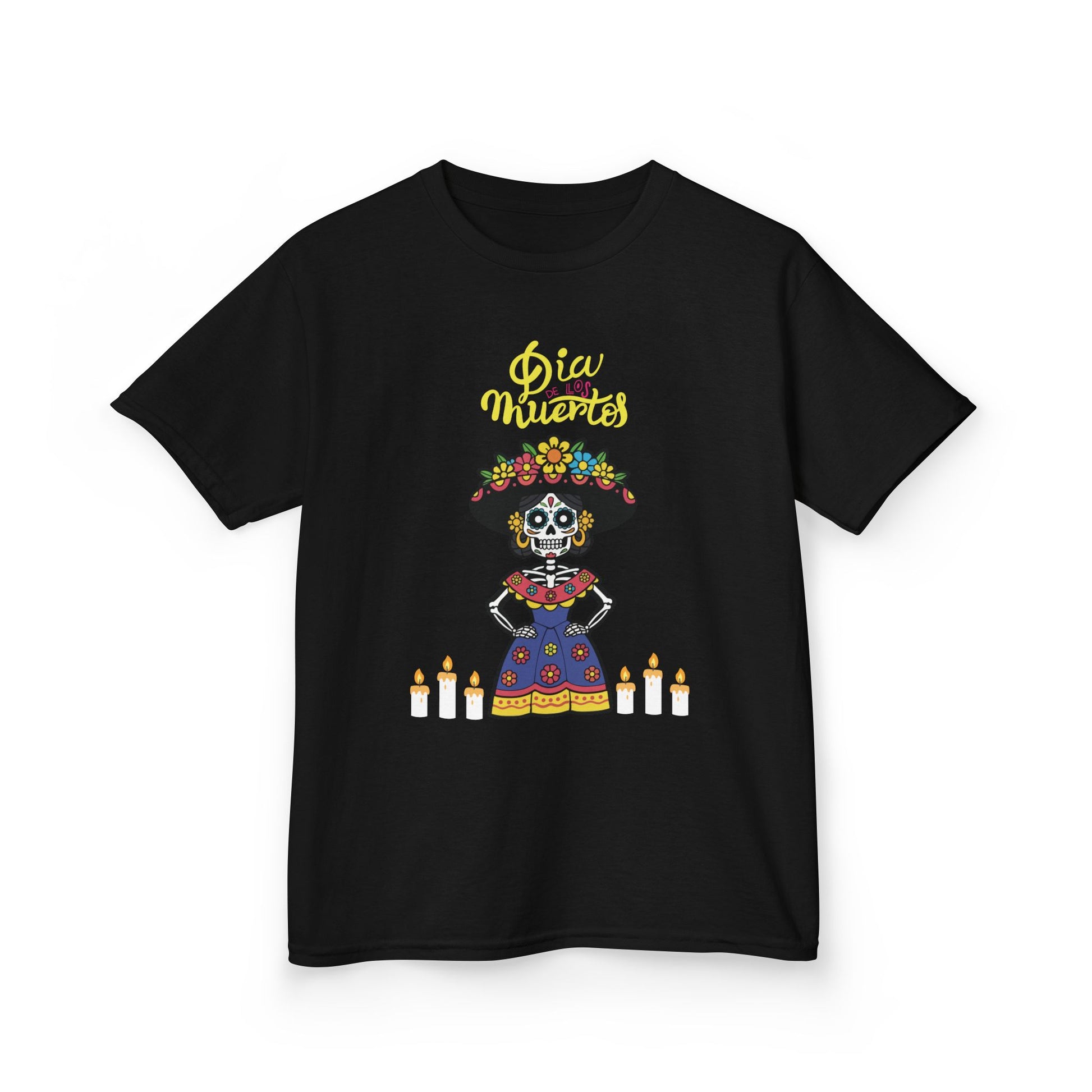 Celebrate the vibrant spirit of childhood with this charming "Dia De Los Muertos", Kids Heavy Cotton™ Tee. Our custom designed Tee-features a playful "Sugar Skul" insired design. This Tee also offers a fun and festive vibe, perfect for everyday adventures or special occasions. Its classic fit and soft, mid-weight cotton ensure maximum comfort for active young ones, making it an essential addition to any child's wardrobe. Ideal for holidays like Día De Los Muertos, Halloween, and casual family gatherings, this tee makes a wonderful gift for birthdays or just because. It's a fantastic option for those who appreciate vibrant designs and quality craftsmanship, appealing to parents looking for stylish yet comfortable clothing for their children. This item come in 10 great colors.