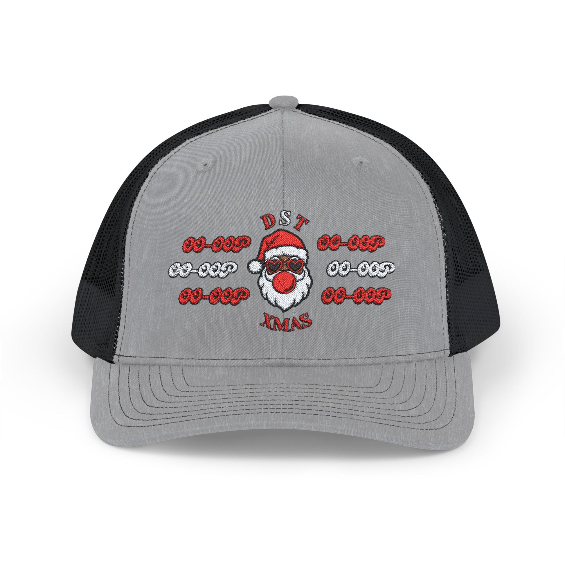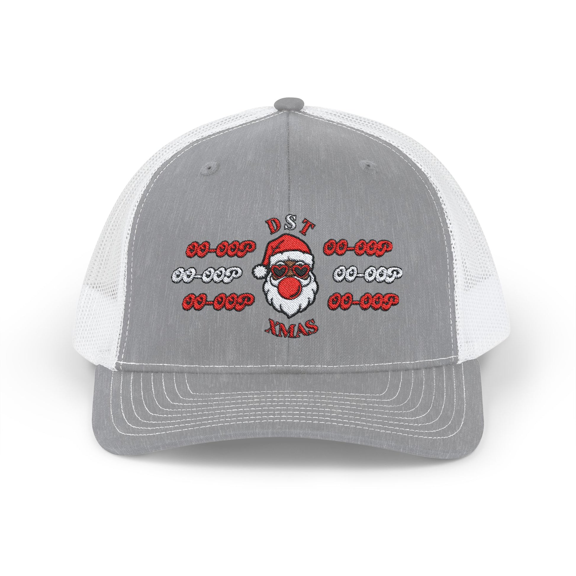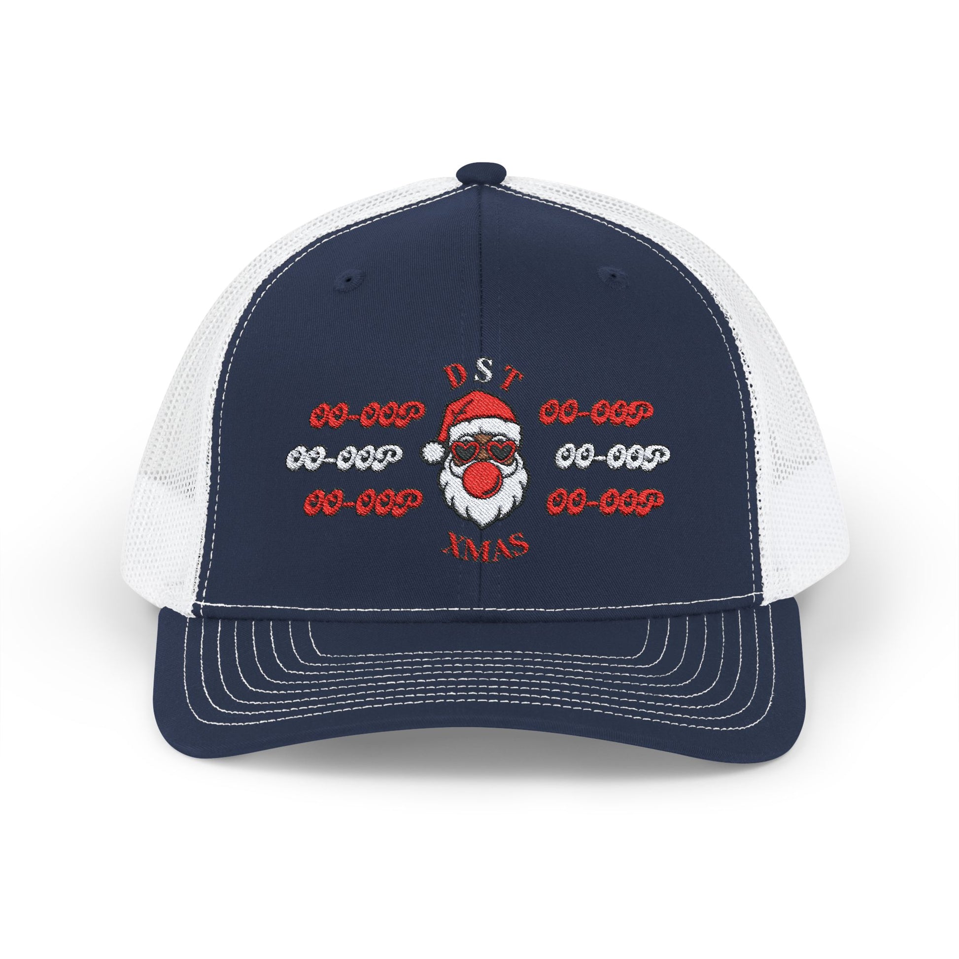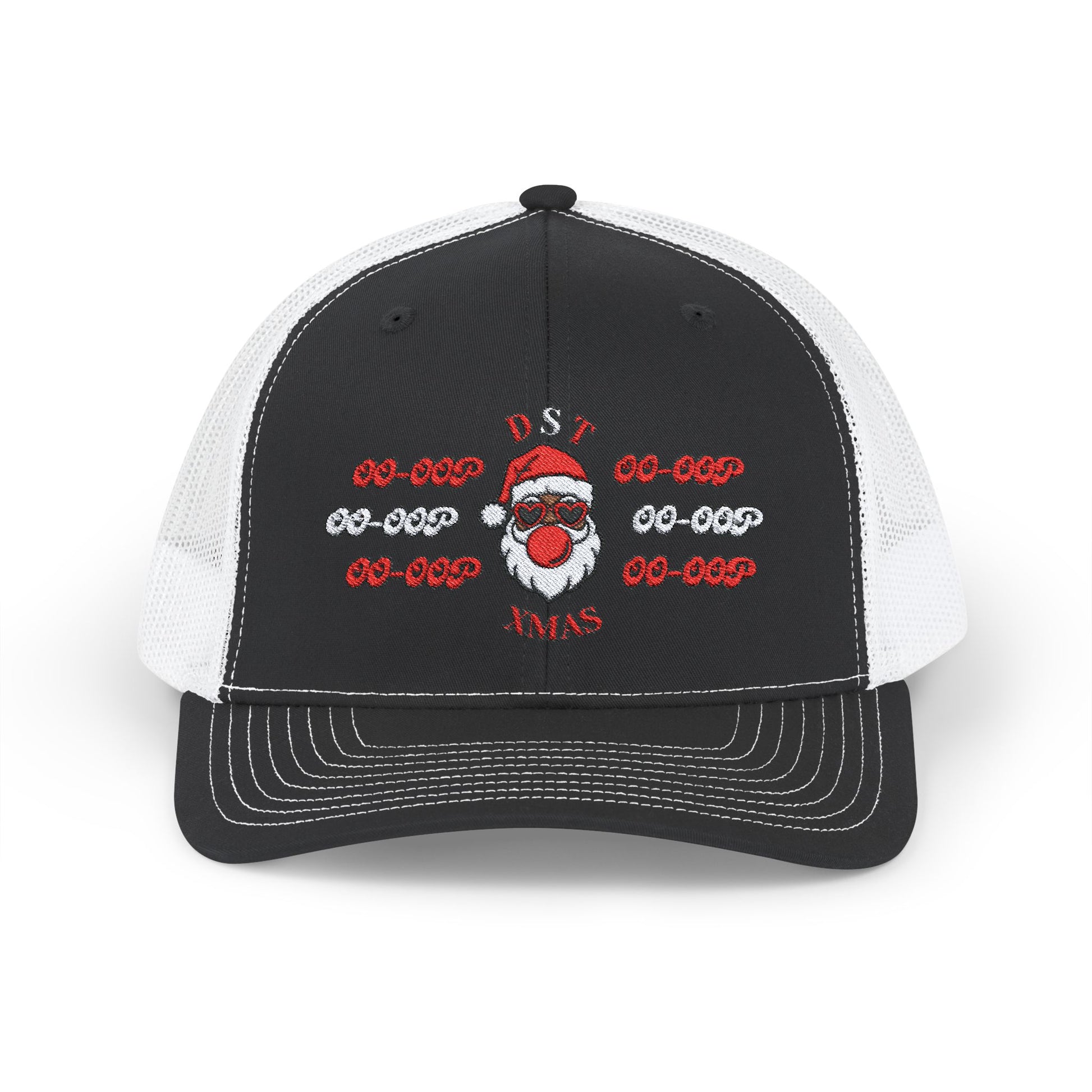 Represent the "Delta Sigma Theta Sorority" with this cute Xmas themed "Bubble Popping Santa" flanked by the signature "OO-OOP" call: all done in classic Crimson and Cream embroidery ! Add a sleek yet casual appeal to any outfit with the snapback trucker cap. Featuring a classic 6-panel construction with a mid-profile fit, this cap delivers both comfort and style. The precurved visor adds a touch of classic low-key charm, while the cotton sweatband ensures a comfortable wear, keeping you cool and dry. Crafted from a blend of cotton-poly and nylon mesh fabric, this cap strikes the perfect balance between durability and breathability. With a composition of 60% cotton and 40% polyester, it offers a soft feel and a structured shape that maintains its form wear after wear. This particular style of hat comes in 6 color combinations. This hat was made just for the Holiday season so grab one while you can. Happy Holidays!
