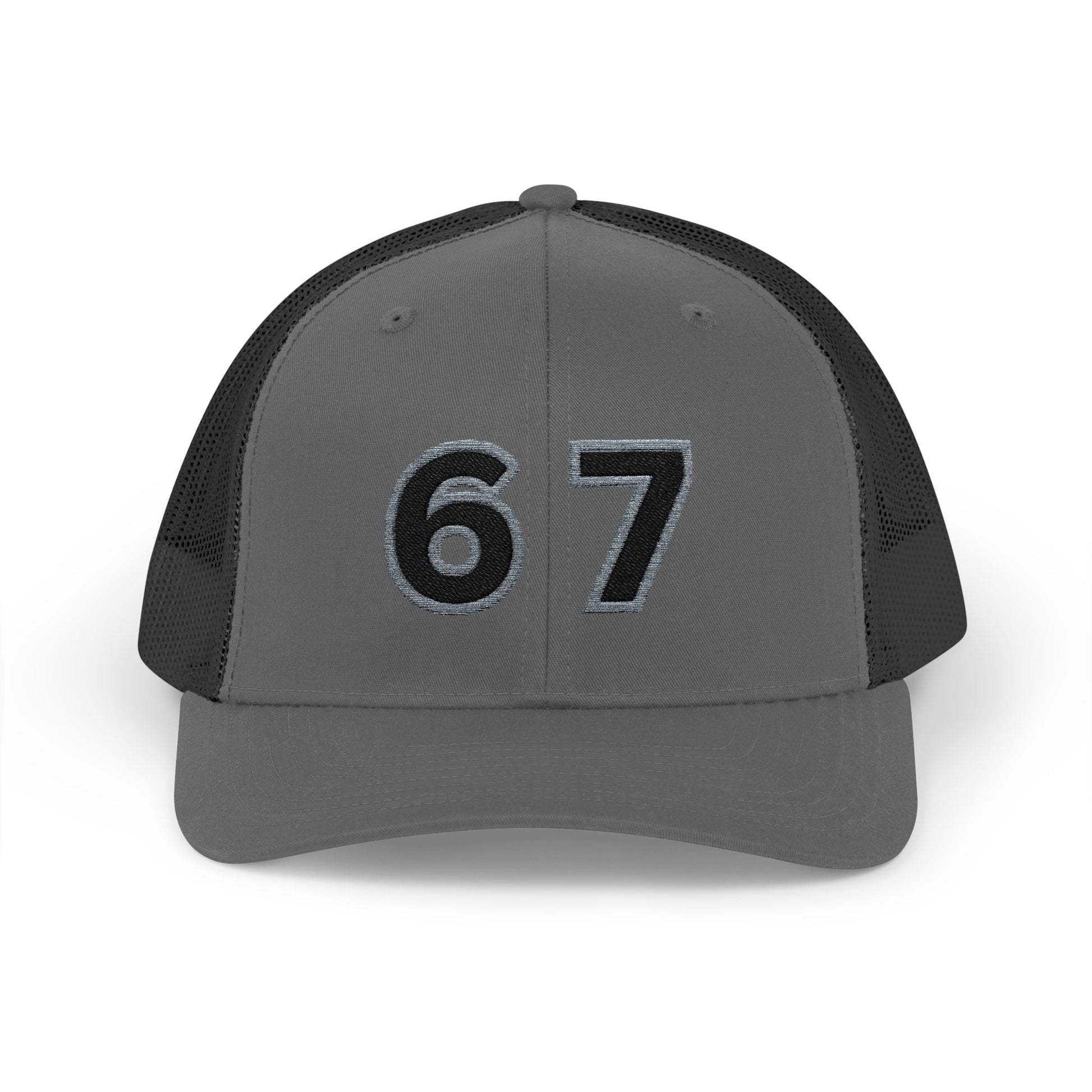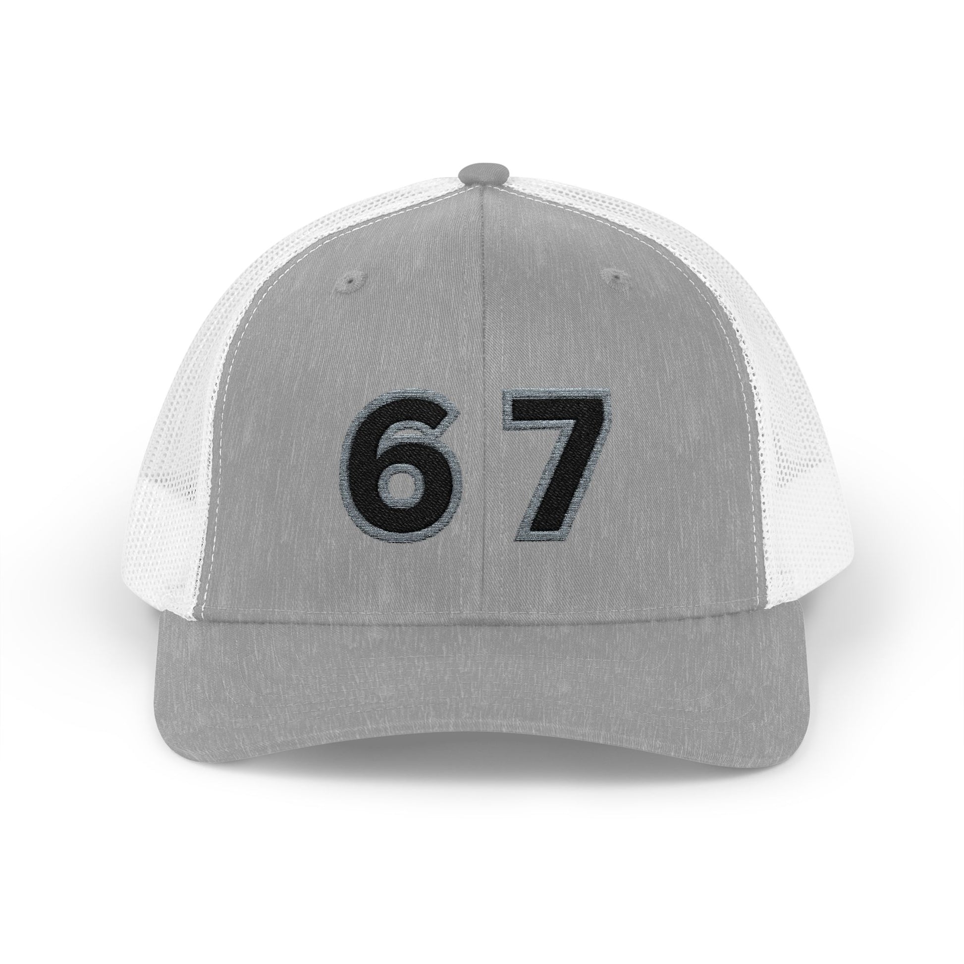 Embroidered '67' Mesh Snapback Trucker Cap — Vintage Number Baseball Hat