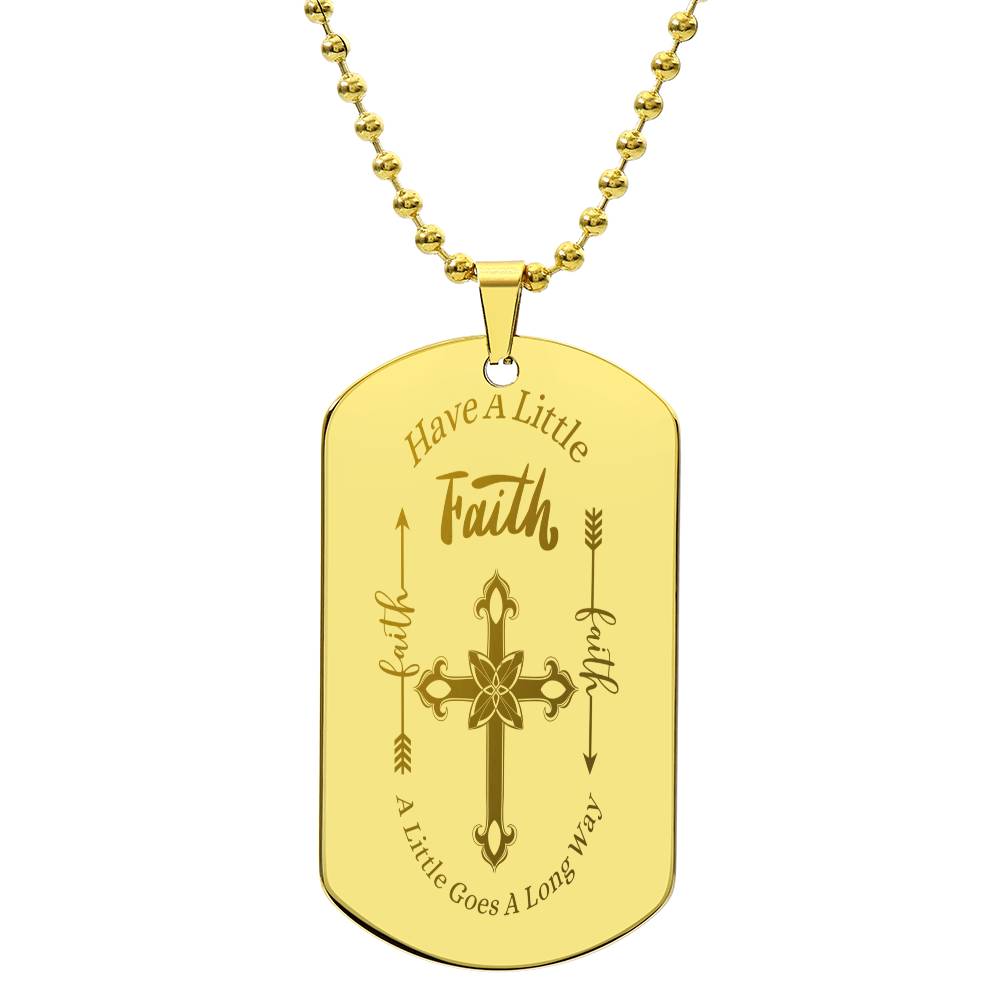 "They put this on as soon as they read the message!" Faith, Stainless Steel Engraved Dog Tag Necklace.