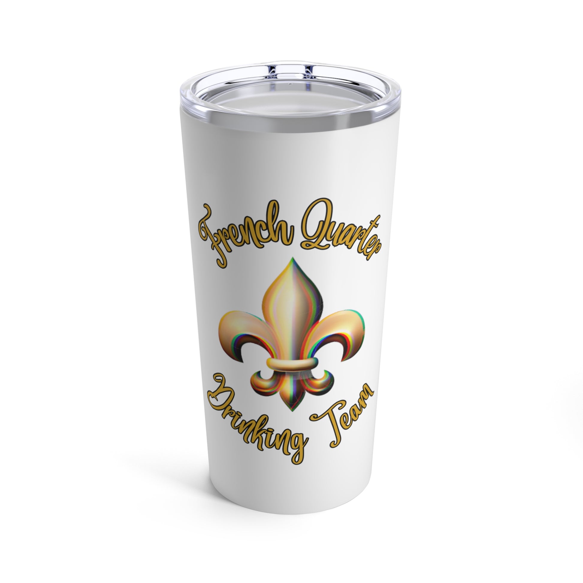 "French Quarter Drinking Team" 20 oz Tumbler, White With Gold Letters