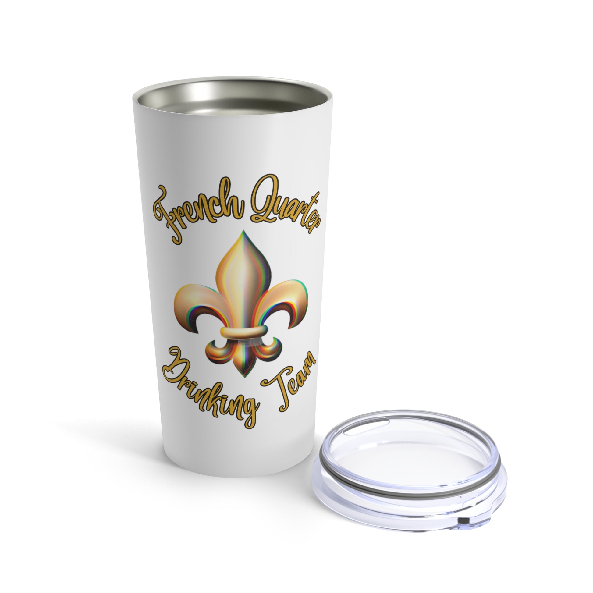- Our custom designed, "French Quarter Drinking Team" White Tumbler is the perfect accessory to carry while you tour the great city of New Orleans! This tumbler will keep your cold liquids cold while you enjoy the town. 'Can't finish your Daquiri or water while you're making your rounds in the Quarter? Pour it into your tumbler and Voila! Meanwhile, the stainless steel construction provides excellent durability and it's dishwasher safe. Check out our matching bucket hats in black and white with the same design! Please use and enjoy responsibly.