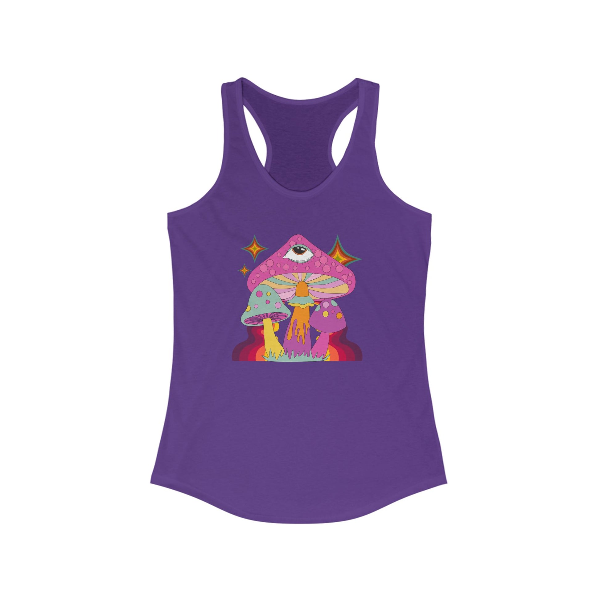 Introducing the ultimate Racerback Tank, perfect for those warm days and active lifestyles. Ladies, our custom designed "Groovy Mushroom" Racerback Tank will get lots of compliments! This tank top embodies a sense of freedom and movement, making it ideal for workouts or casual outings with friends. Its lightweight fabric and breathable design ensure comfort while you're on the go. Whether you're lounging at home, hitting the gym, or enjoying a sunny day outdoors or a fantastic music festival under the stars, this tank is your go-to choice. Our unique and colorful tank comes in 5 colors. Get one today!