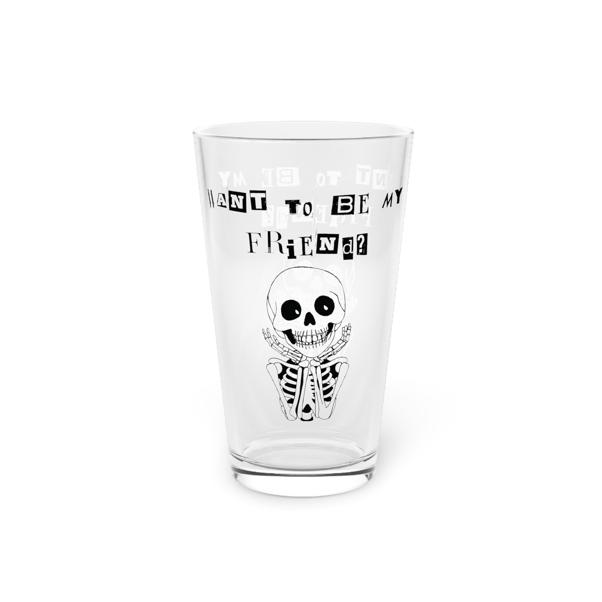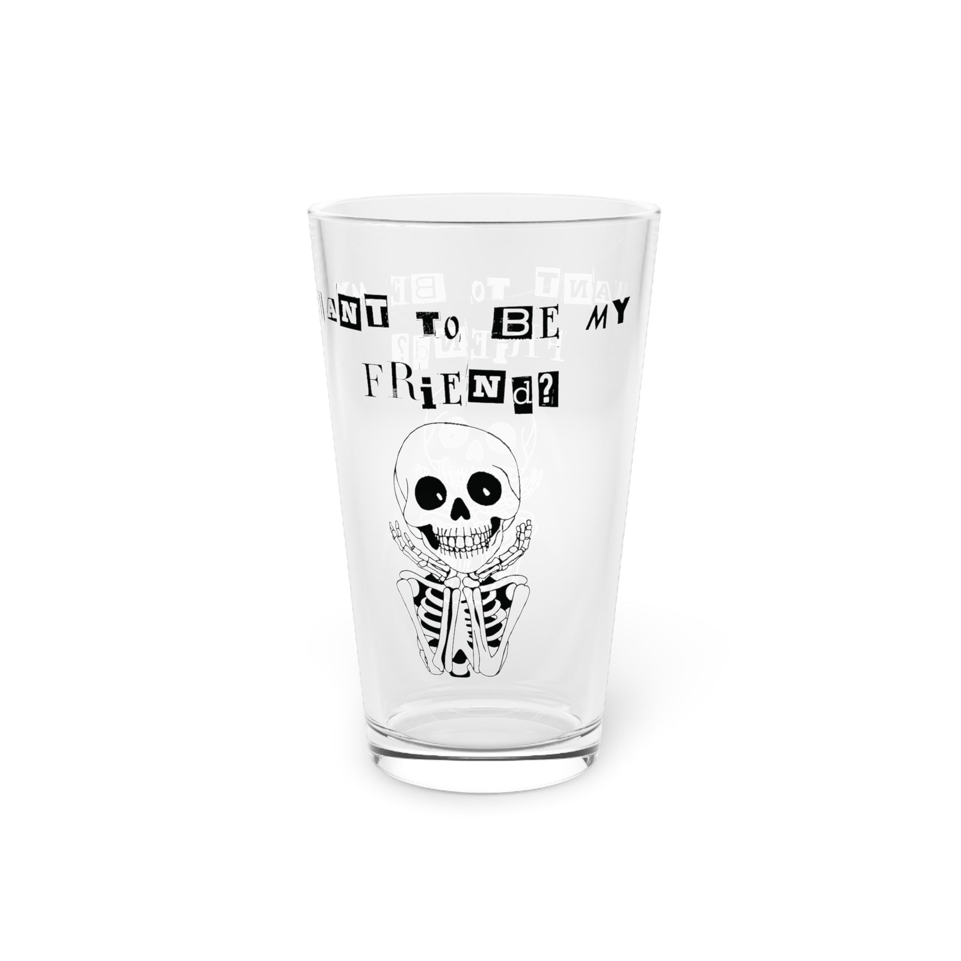 "Want To Be My Friend?", Smiling Skeleton, 16oz Pint Glass. Perfect for Parties or Gifts!
