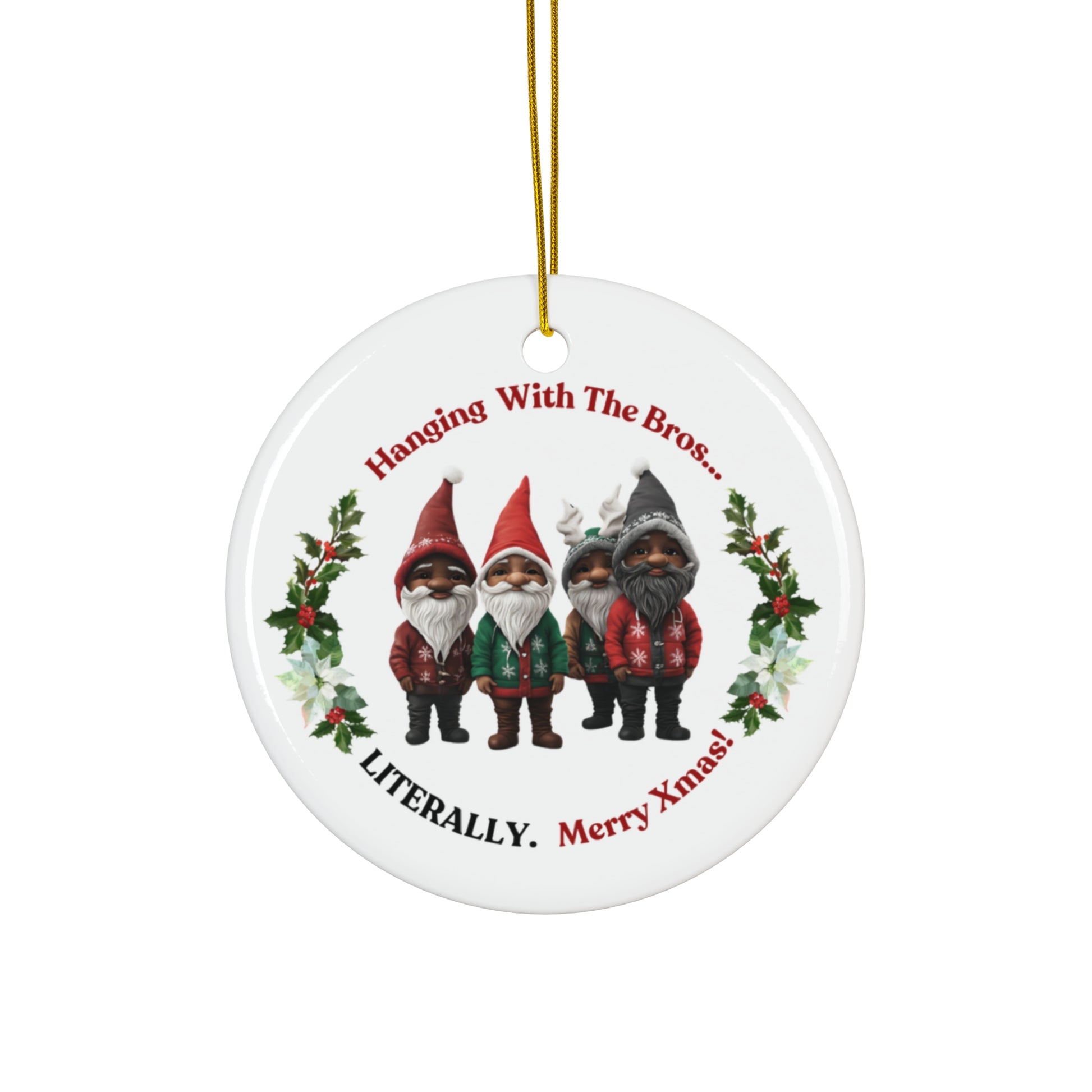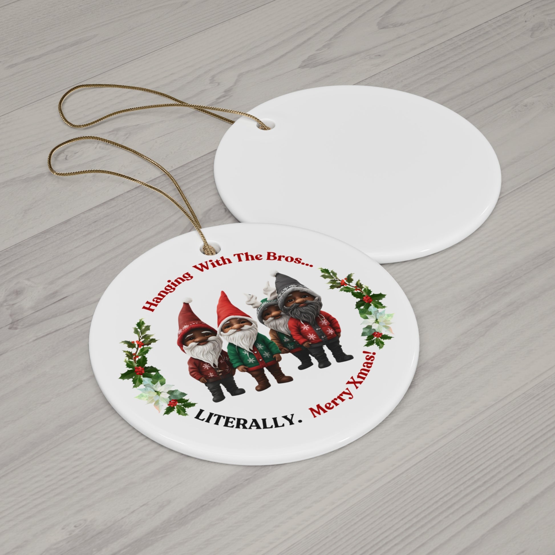 "Hanging With The Bro's" Circular White Ceramic Ornament