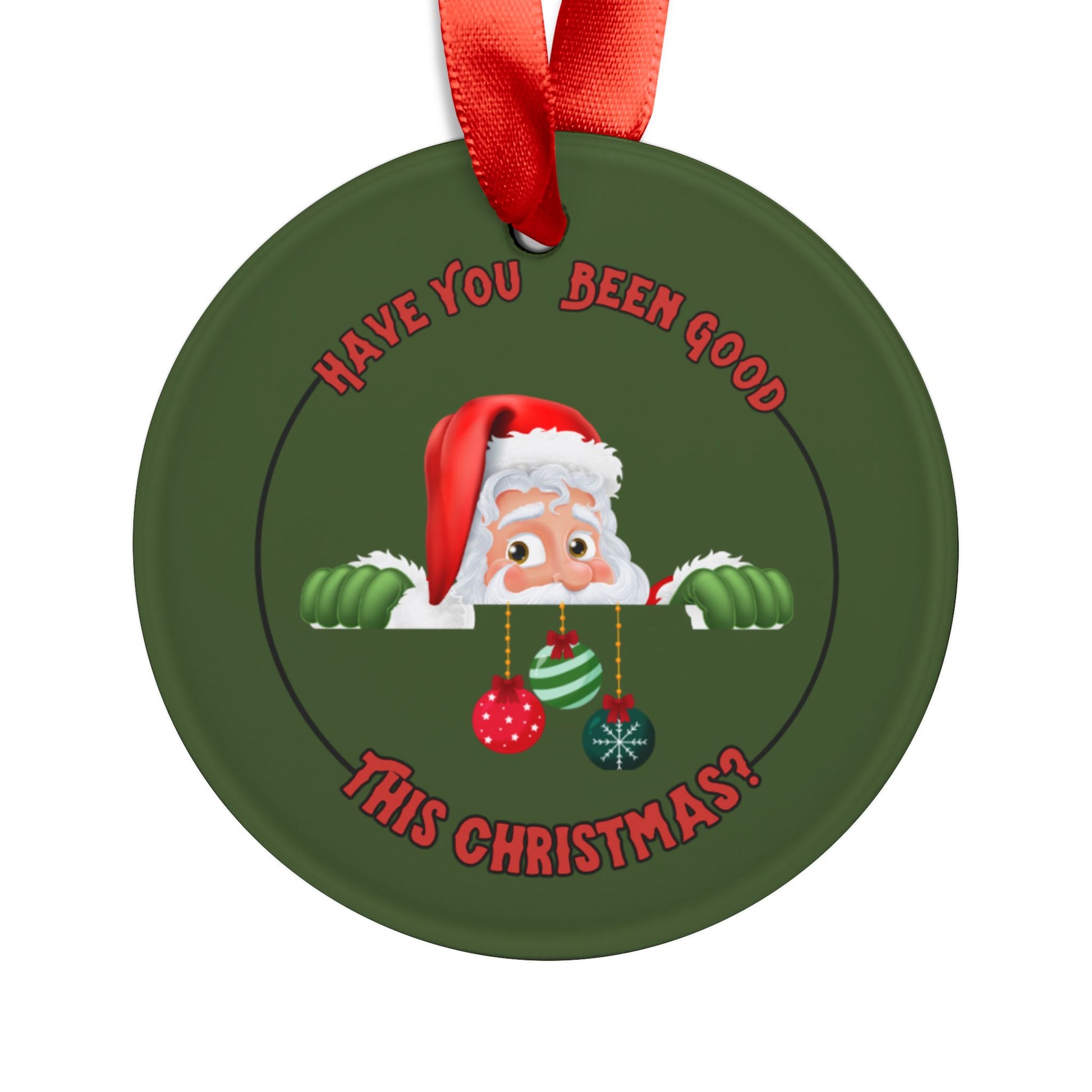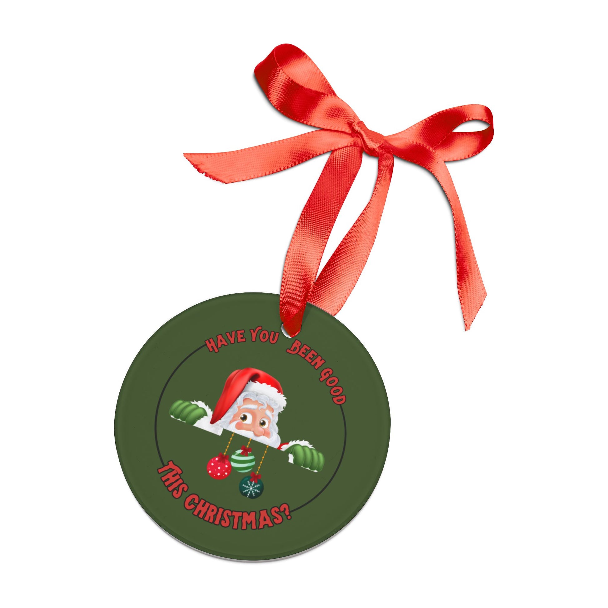 "Have You Been Good This Christmas?" Green Acrylic Round Ornament with Ribbon