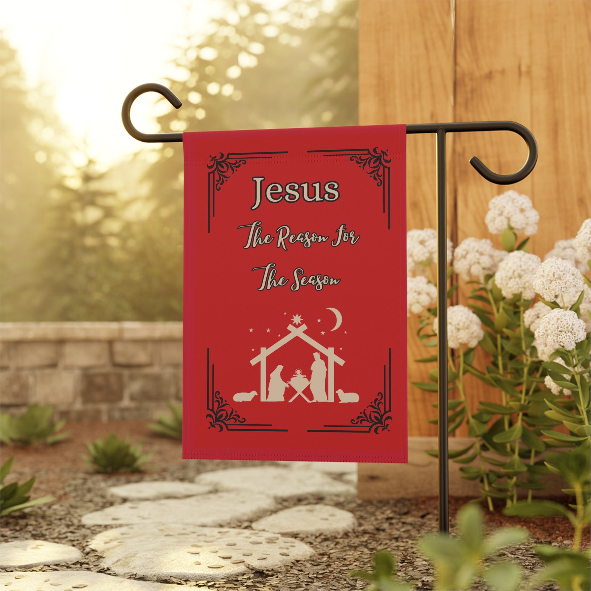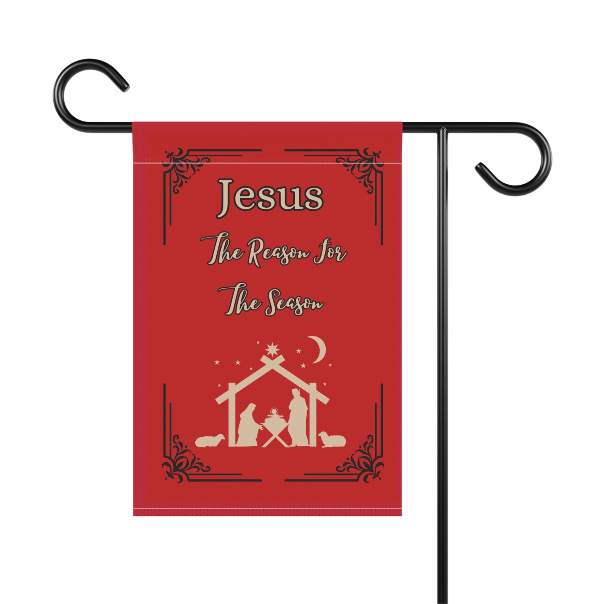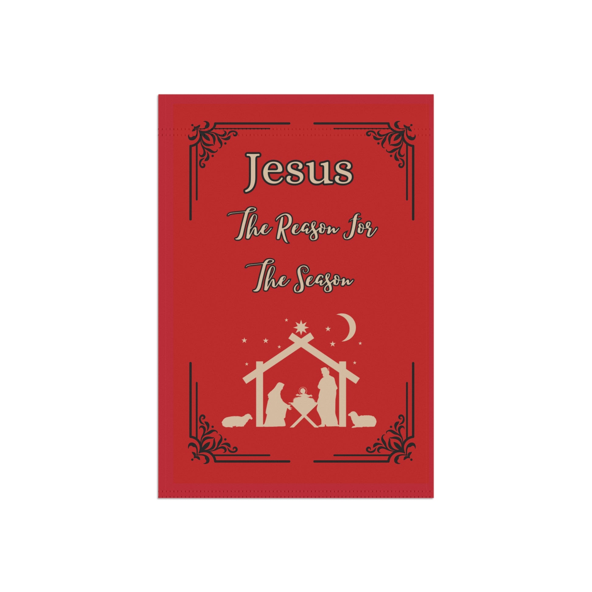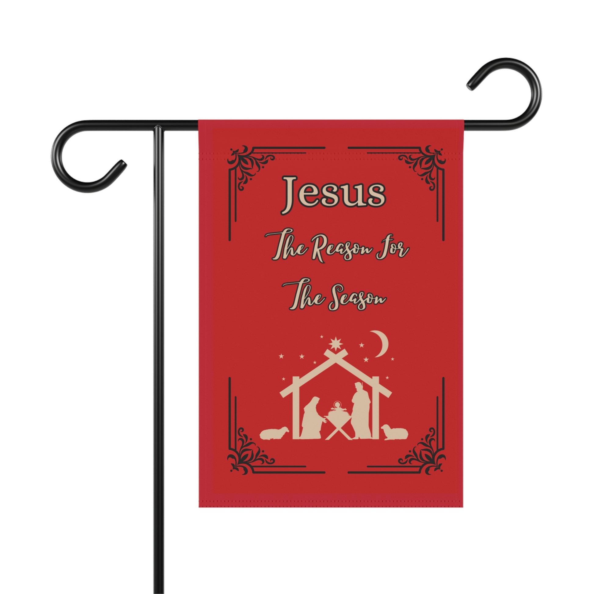 Get our custom designed "Jesus is The Reason For The Season" Lawn Garden Banner in Red to decorate your lawn or garden bed during this Holiday Season! Made with lightweight yet highly durable poly poplin-canvas fabric, our banner comes in size 12'' × 18'' and features a top sleeve for easy placement on poles. The design goes in crisp detail and color on both sides of the flag. Check our listings for other color combinations. Happy Holidays!