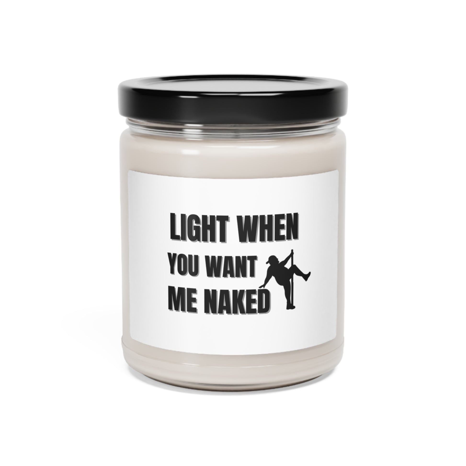 "Light When You Want Me Naked-Dad Bod With Stripper Pole, White Label" Design, 9 oz Scented Soy Candle