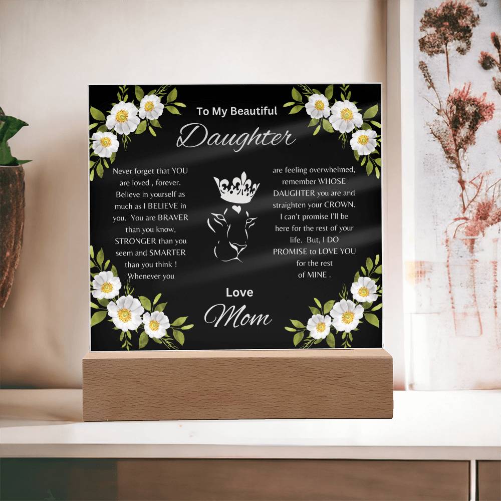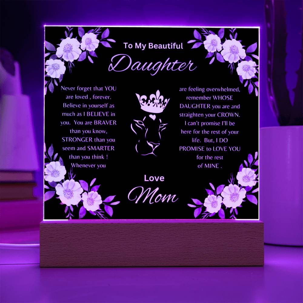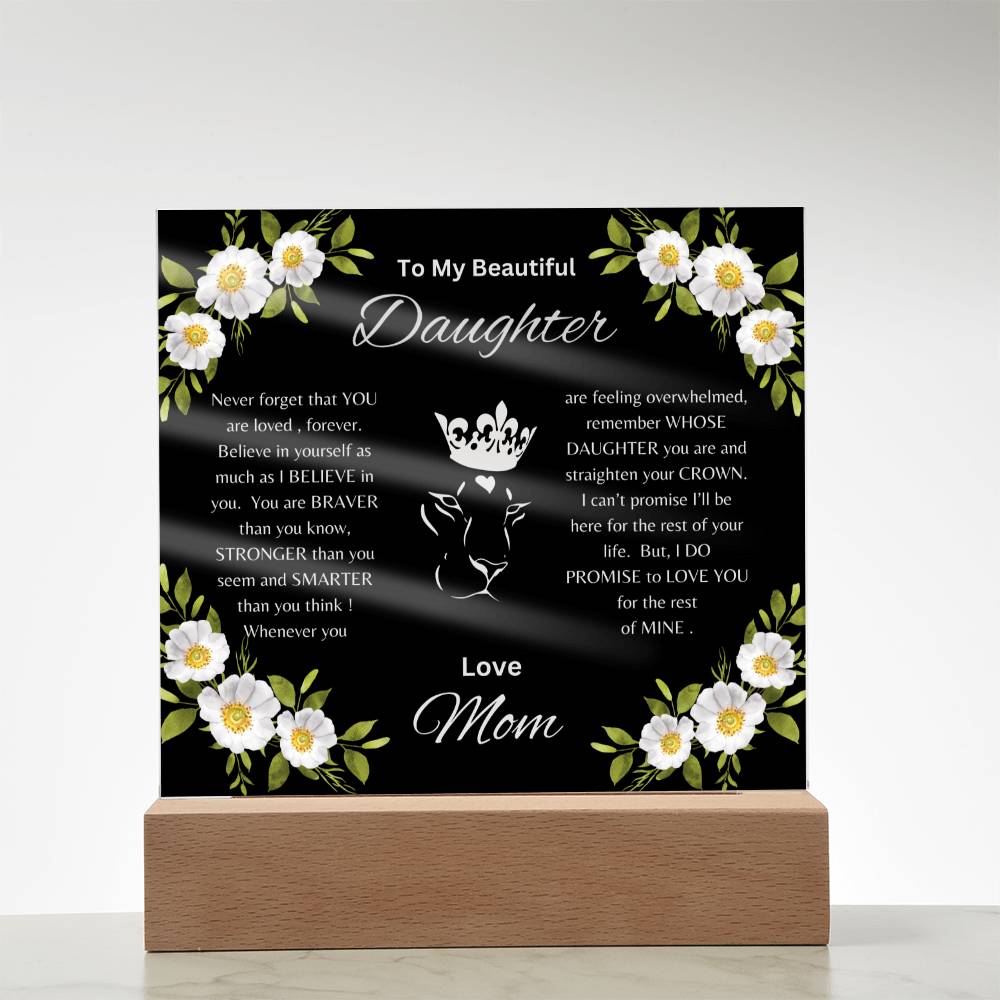Lion Princess Square Acrylic Plaque, "To My Daughter, Love Mom" Your Daughter will cry when she reads this plaque!