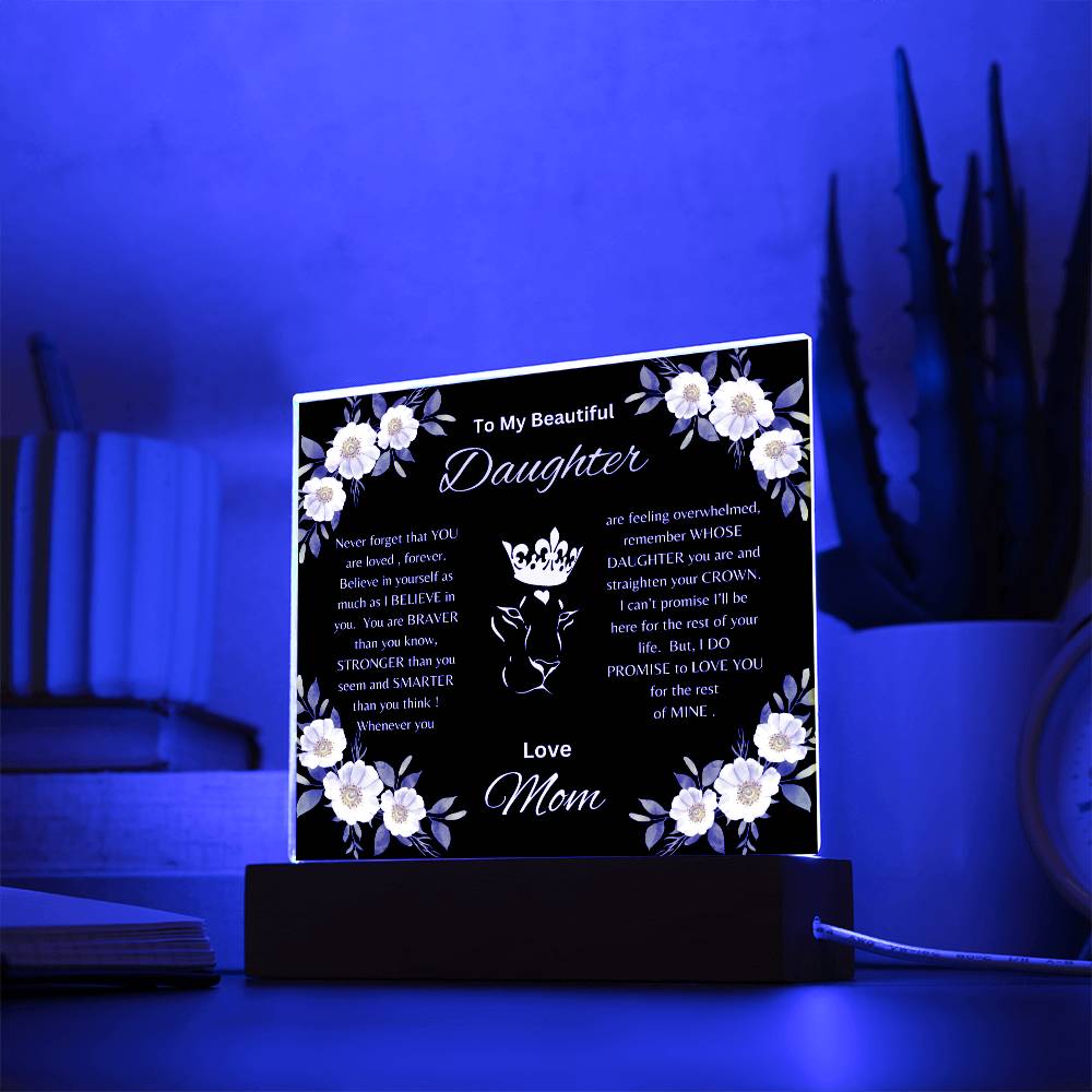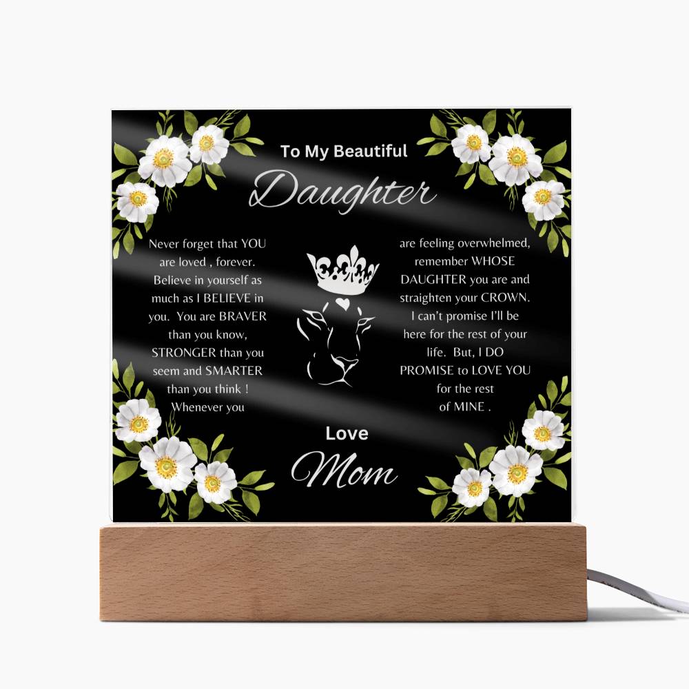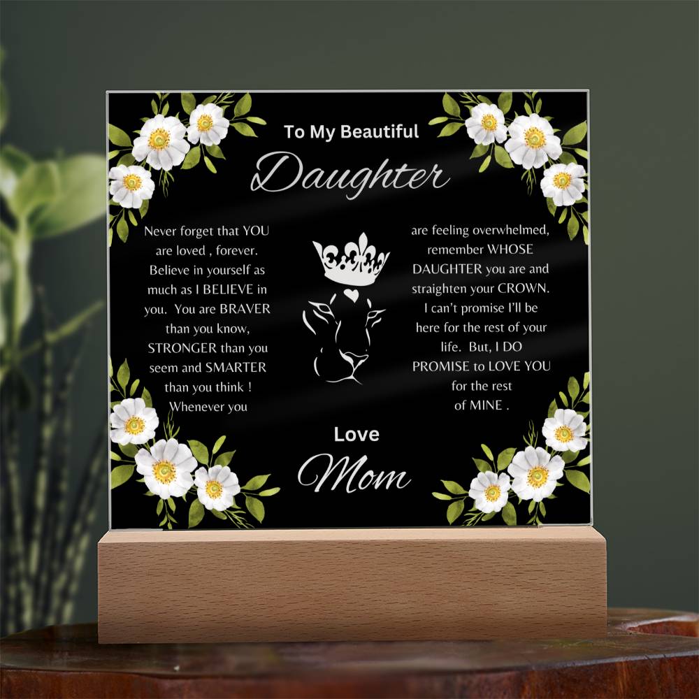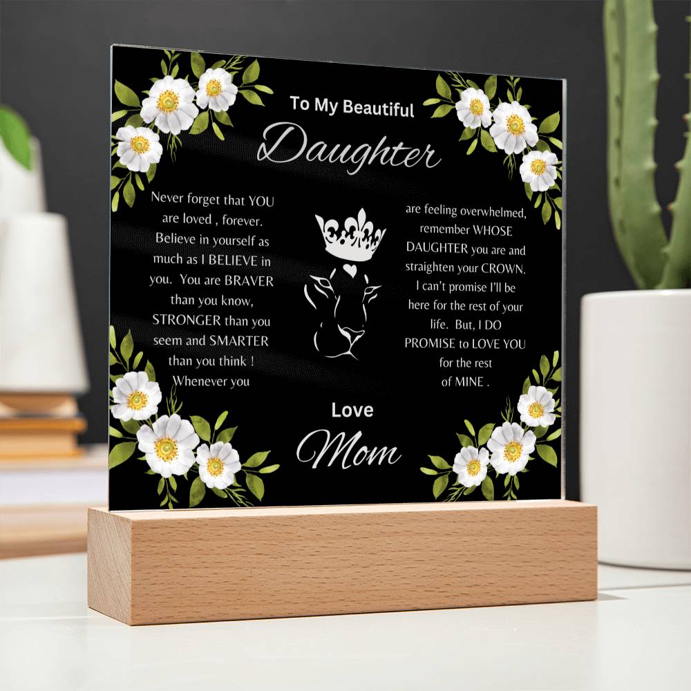 Lion Princess Square Acrylic Plaque, "To My Daughter, Love Mom" Your Daughter will cry when she reads this plaque!