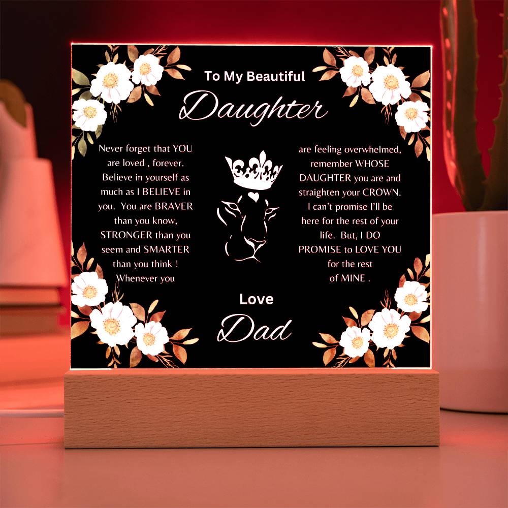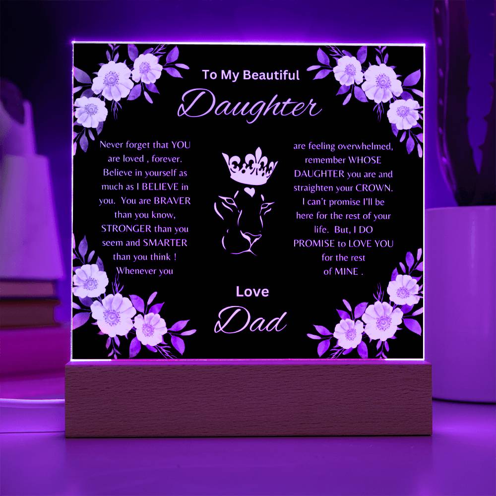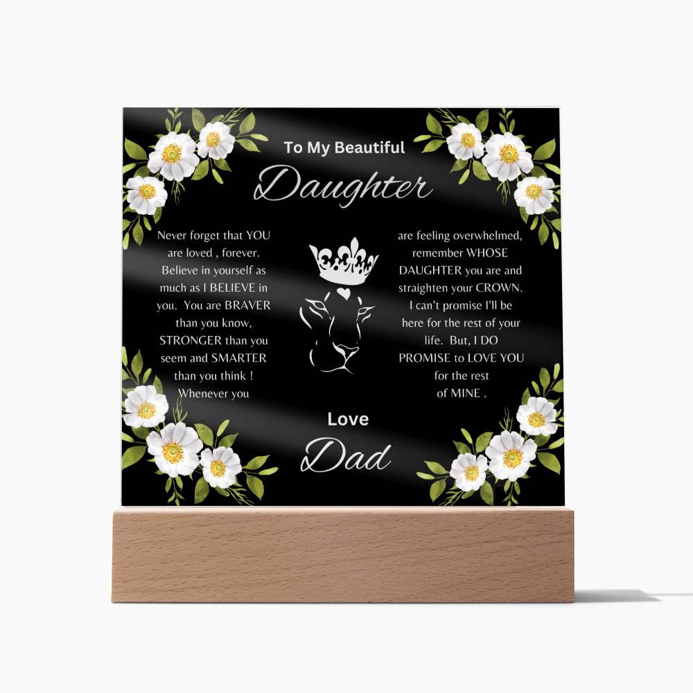 Lion Princess Square Acrylic Plaque, "To My Daughter, Love Dad" Your Daughter will cry when she reads this plaque!