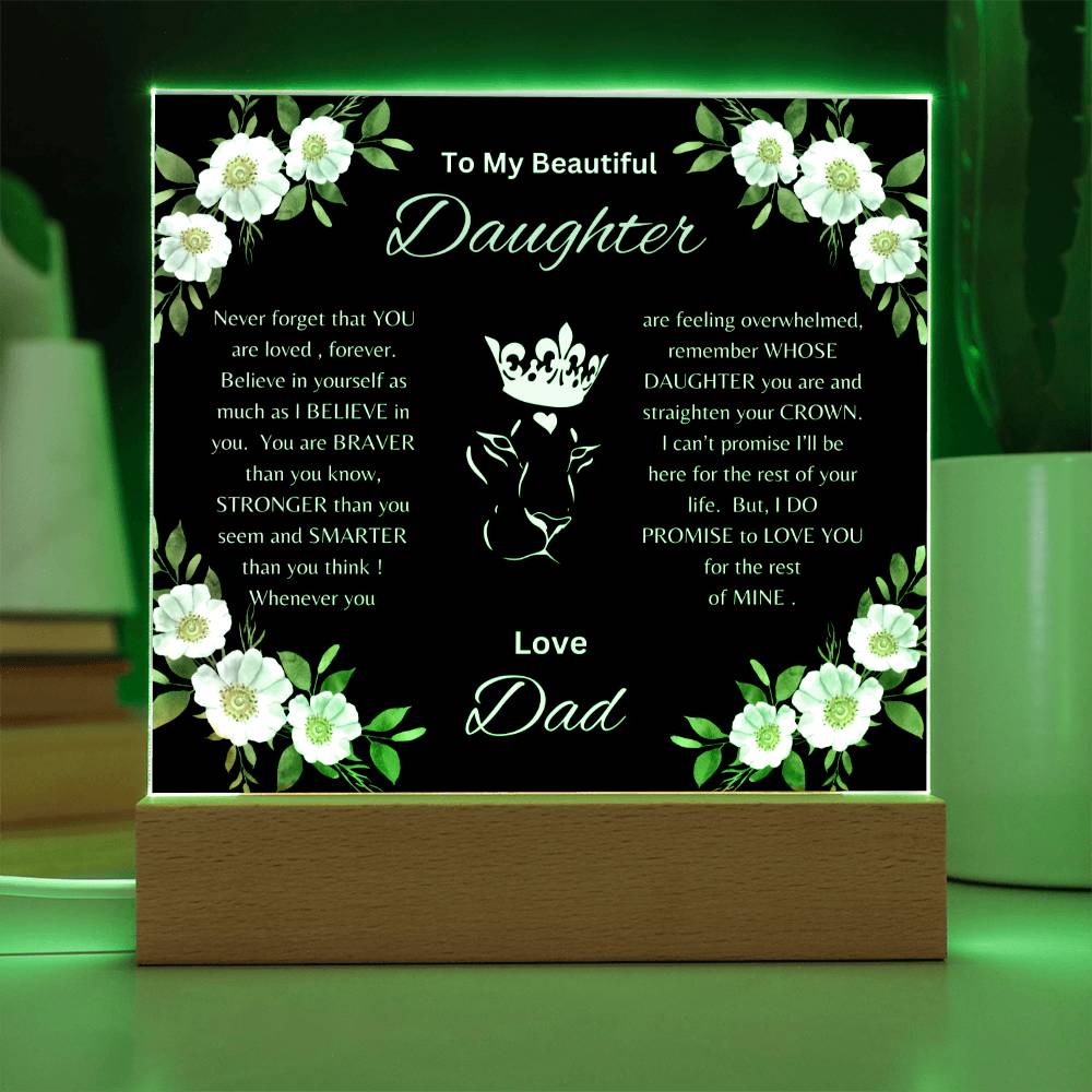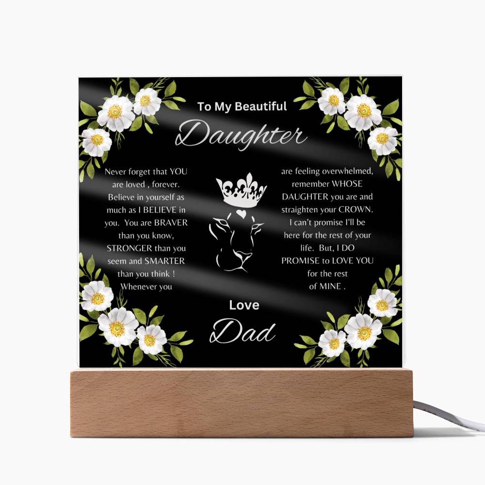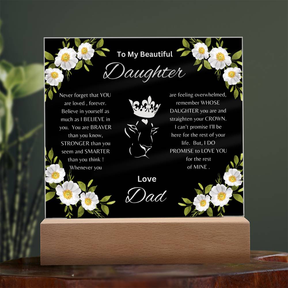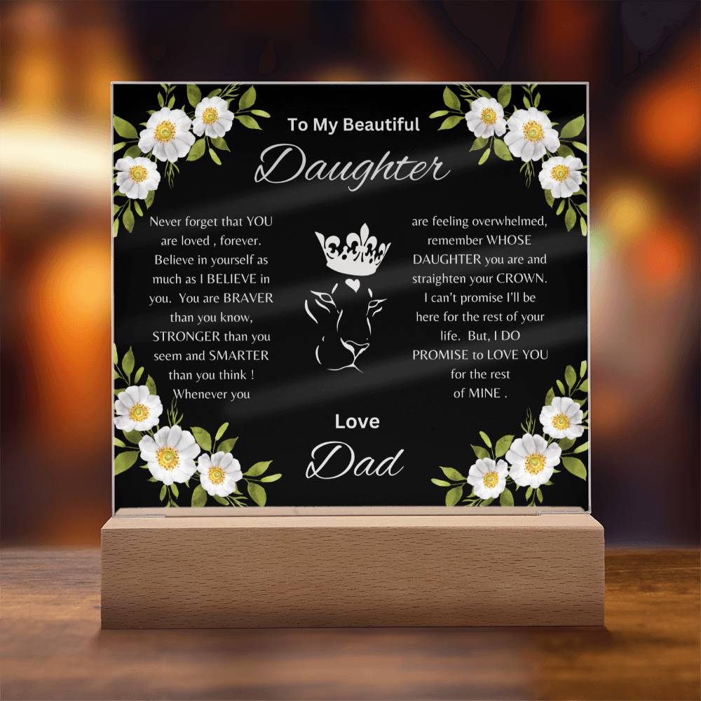 Lion Princess Square Acrylic Plaque, "To My Daughter, Love Dad" Your Daughter will cry when she reads this plaque!