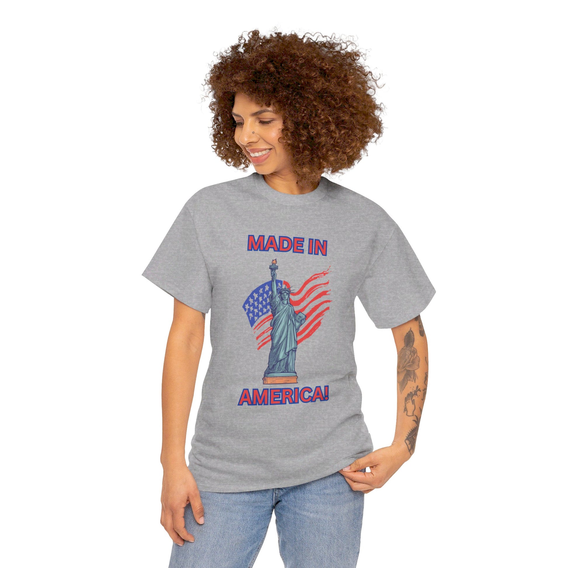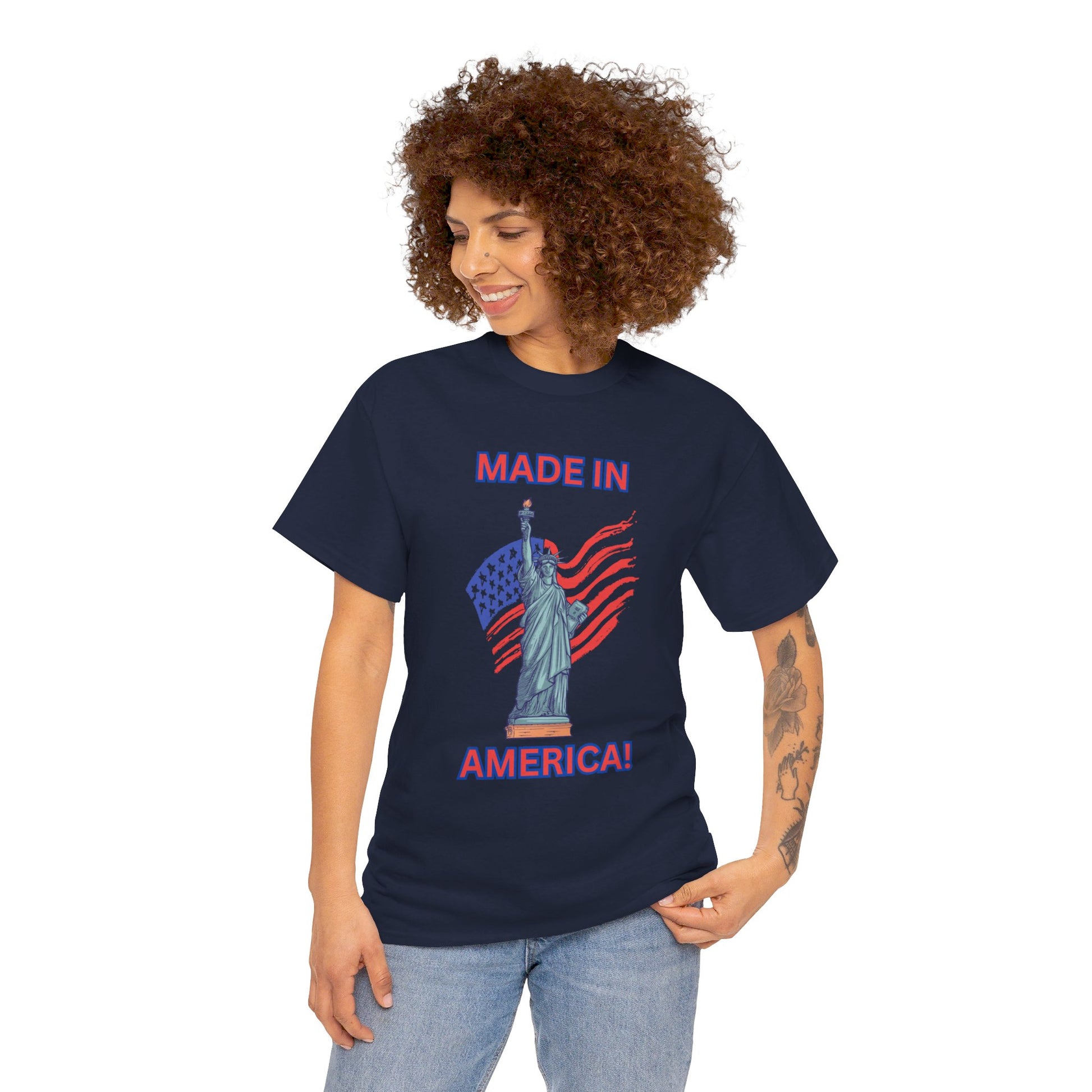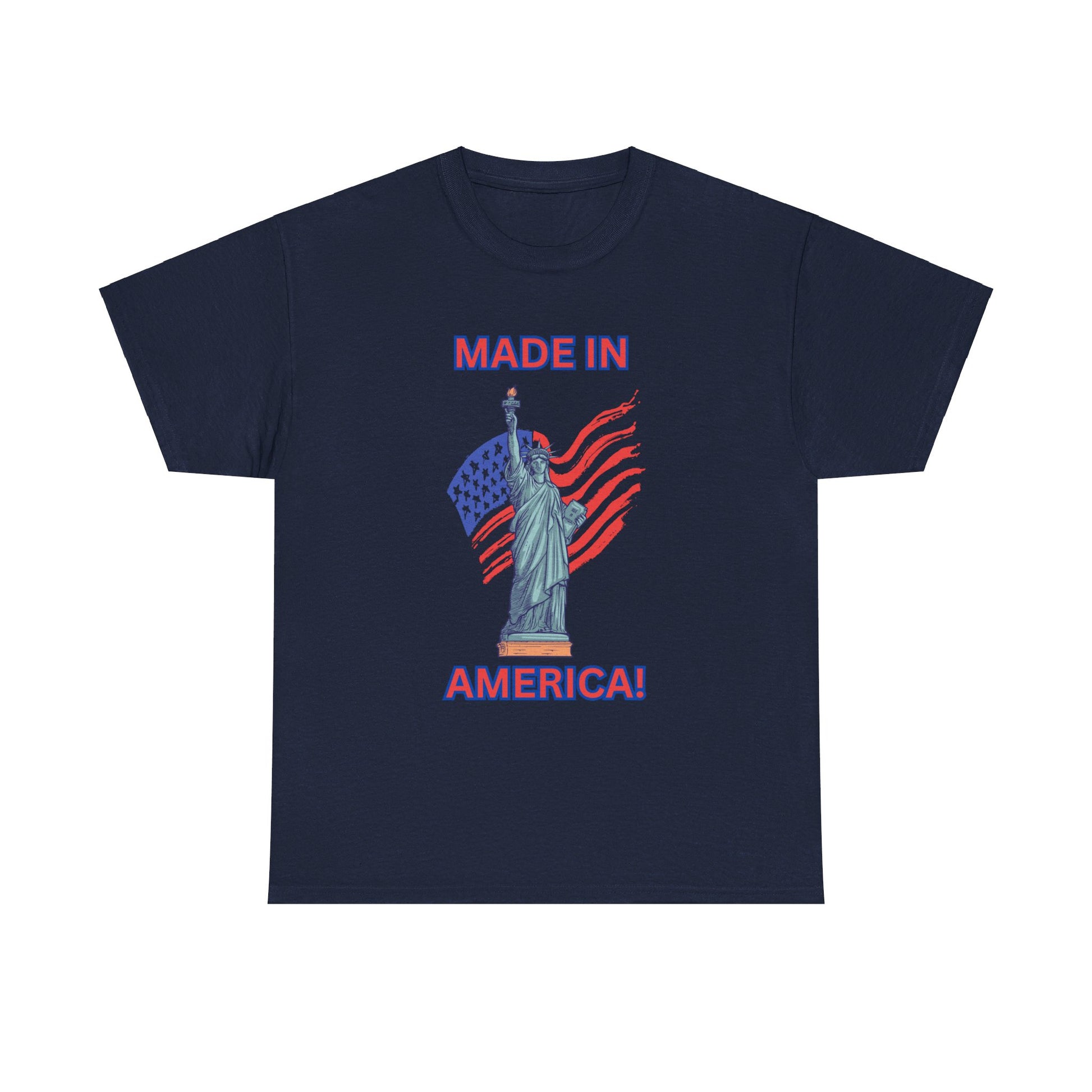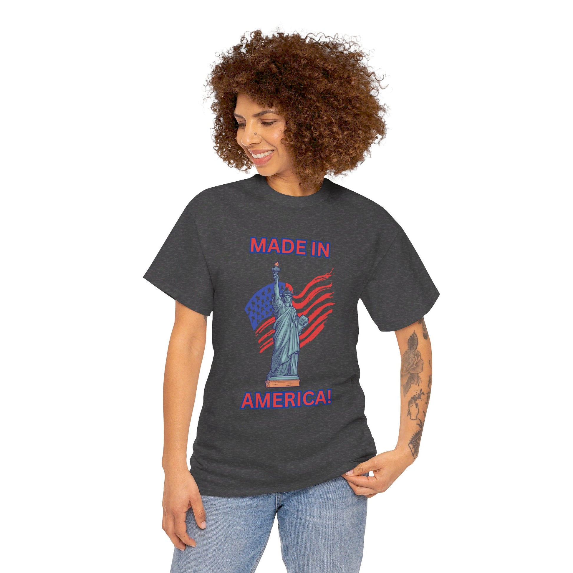 The unisex heavy cotton tee is the basic staple of any wardrobe. It is the foundation upon which casual fashion grows. Our custom designed "Made In America" tee, featuring a stylized "Lady Liberty", shares how much you take pride in being an American! This is a great shirt to wear on Labor Day!!!