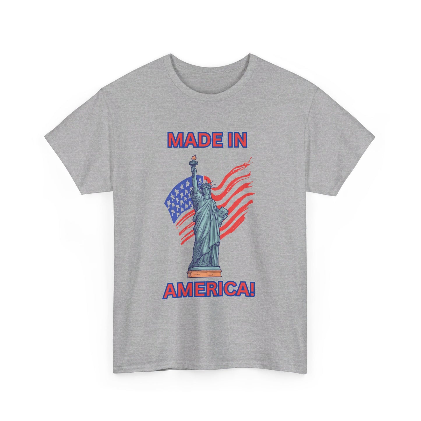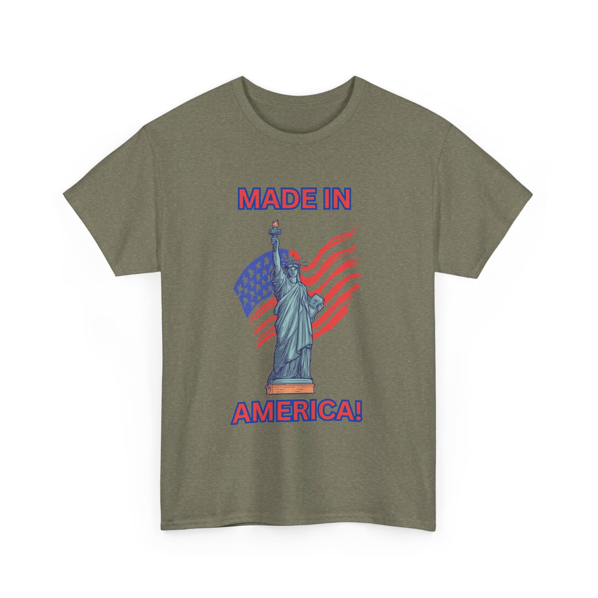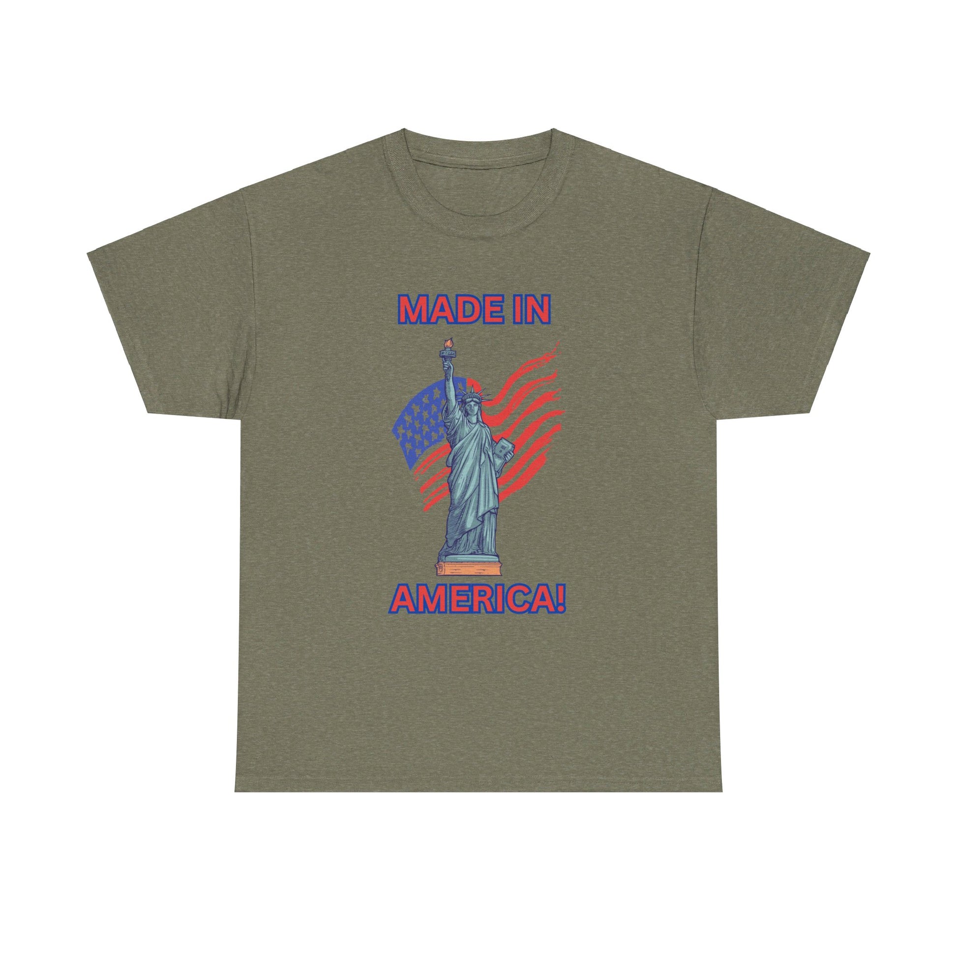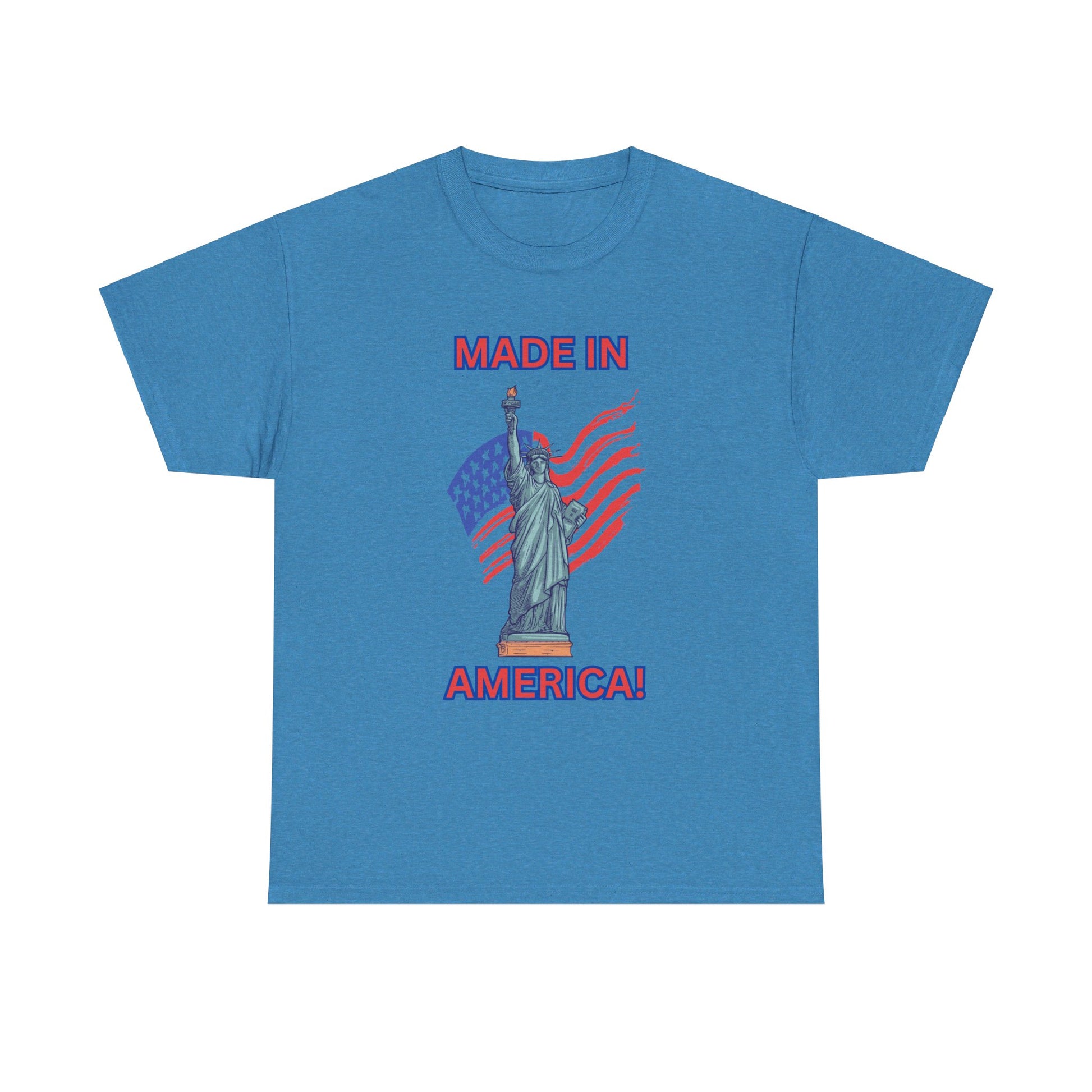 The unisex heavy cotton tee is the basic staple of any wardrobe. It is the foundation upon which casual fashion grows. Our custom designed "Made In America" tee, featuring a stylized "Lady Liberty", shares how much you take pride in being an American! This is a great shirt to wear on Labor Day!!!