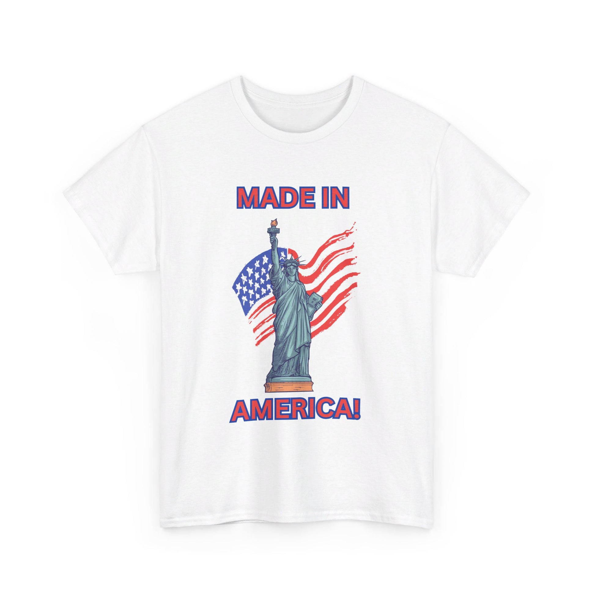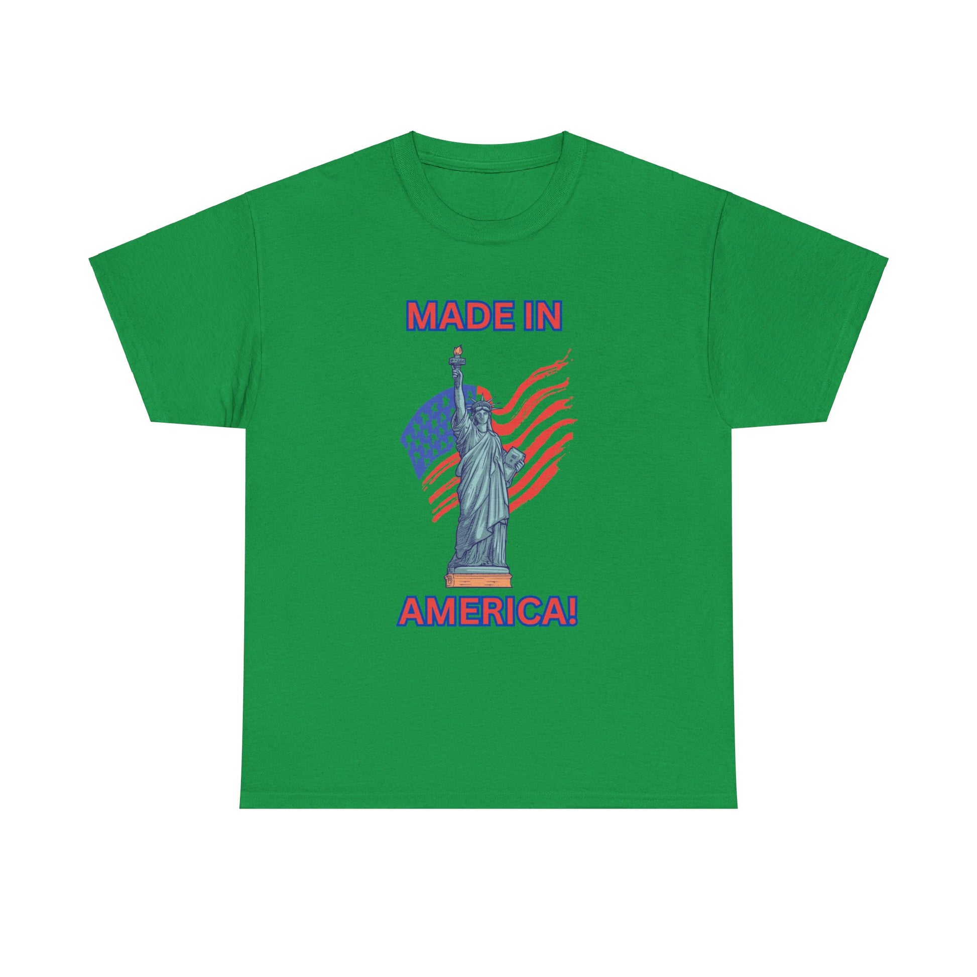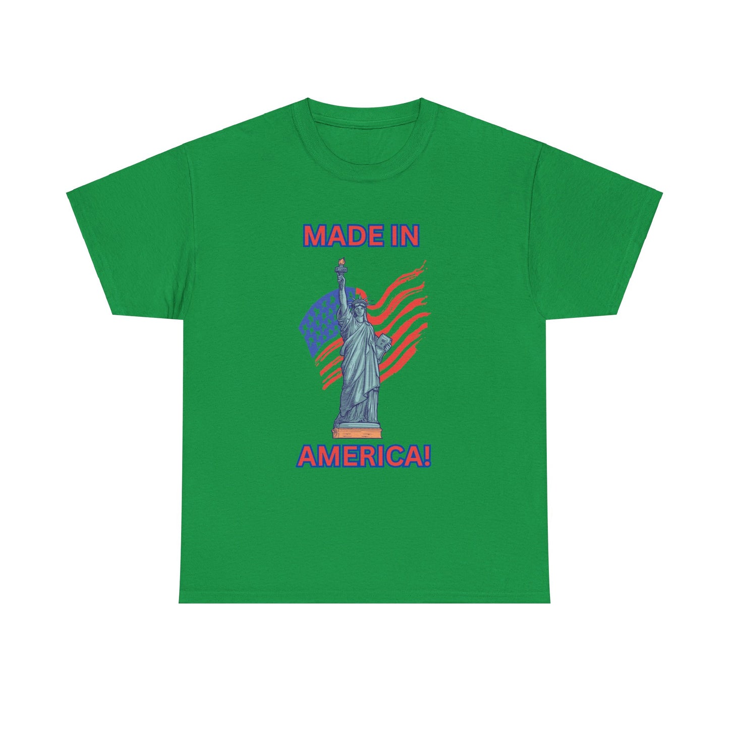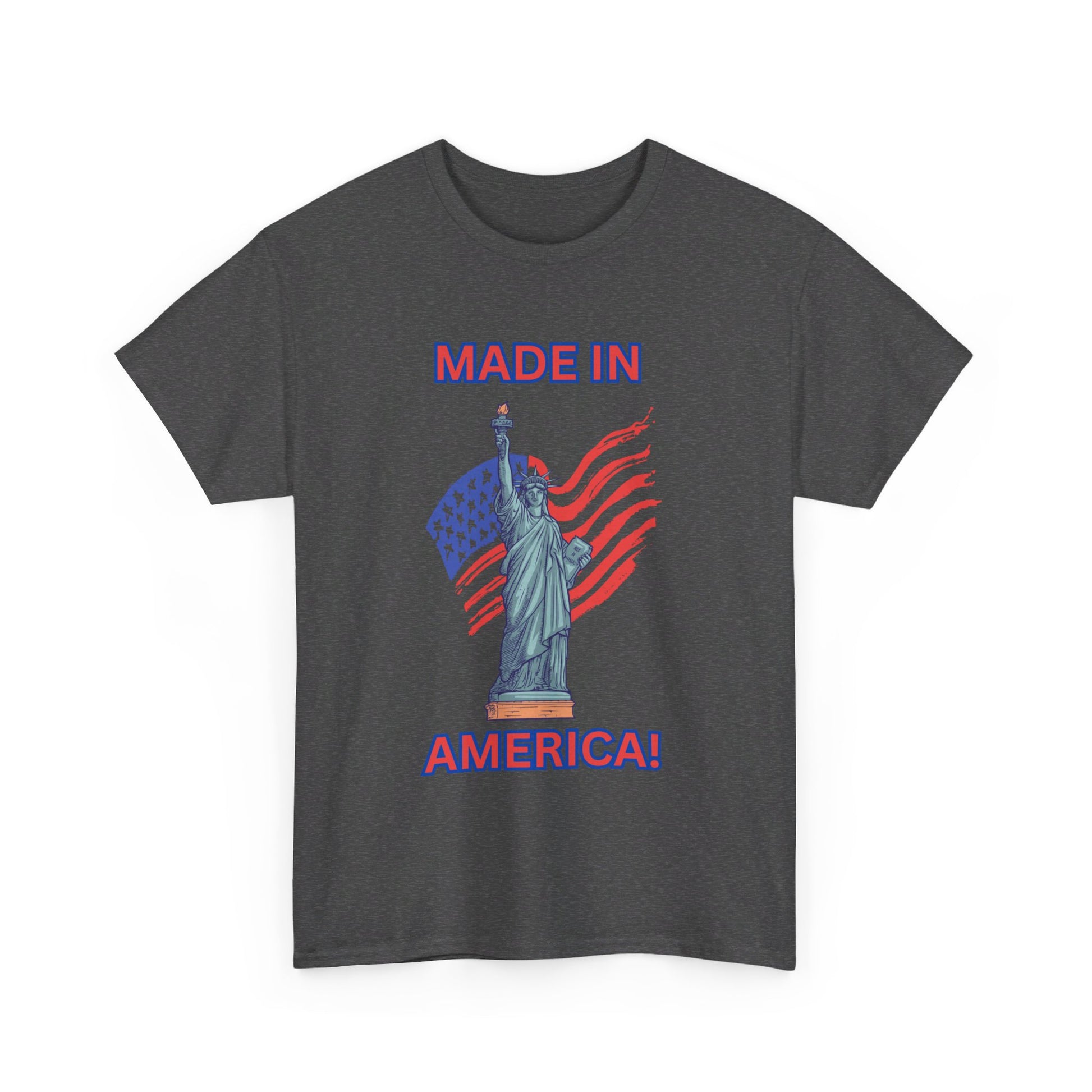 The unisex heavy cotton tee is the basic staple of any wardrobe. It is the foundation upon which casual fashion grows. Our custom designed "Made In America" tee, featuring a stylized "Lady Liberty", shares how much you take pride in being an American! This is a great shirt to wear on Labor Day!!!