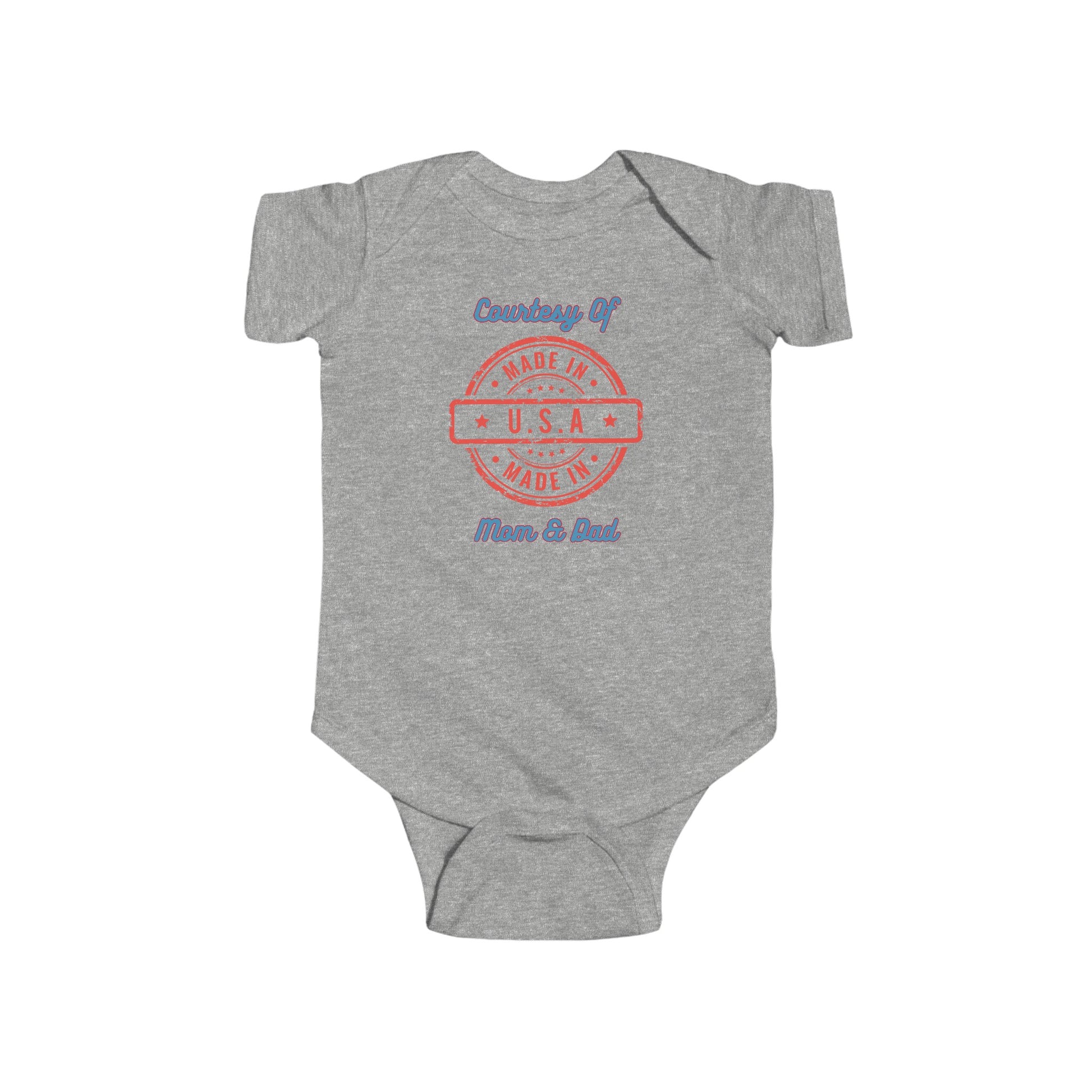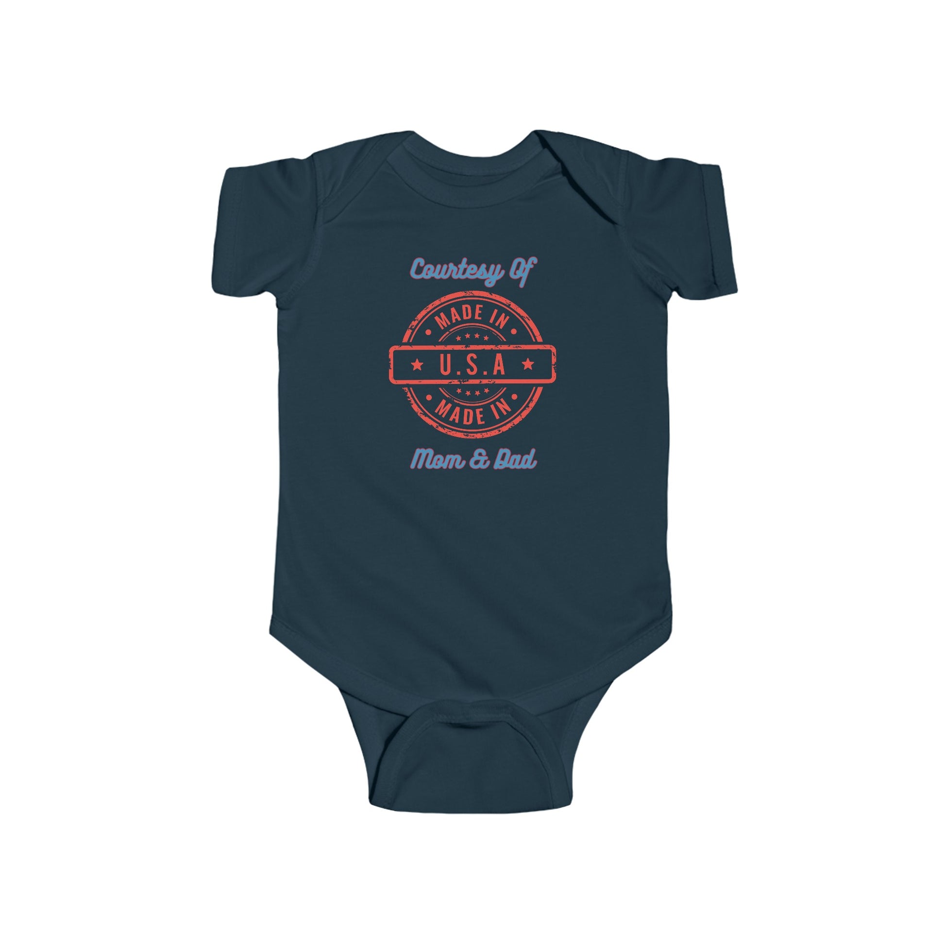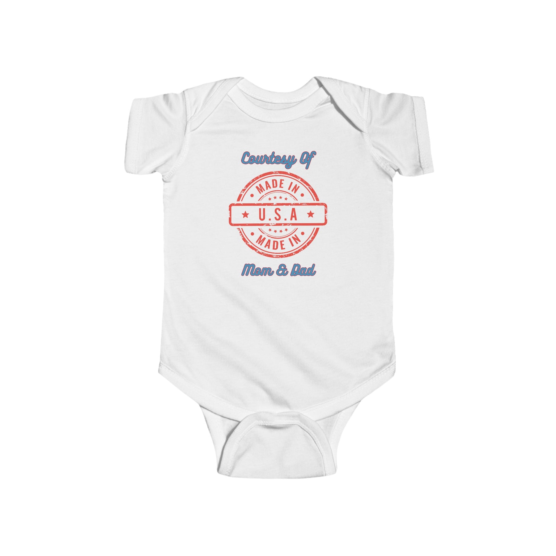"Made In The USA Courtesy Of Mom & Dad", Infant Fine Jersey Bodysuit