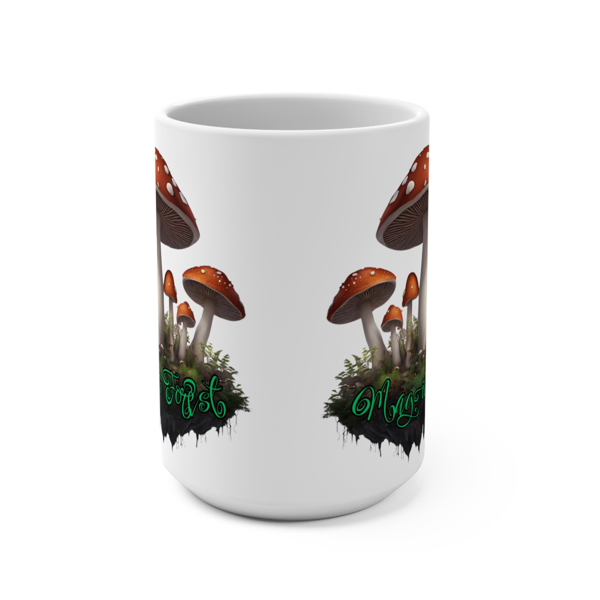 Warm your soul with our custom designed "Floating Magic Forest" 15 oz white ceramic mug. Mugs are a staple in every kitchen and when they're combined with a custom flair, they become instant favorites. This mix of "nature/woodland and retro psychedelic art styles" inspired our custom designed mug. This mug has a wrap around graphic on solid white ceramic. This "groovy" mug holds your favorite mushroom brew/coffee, any hot beverage or your "pick-me-up" juice of choice!