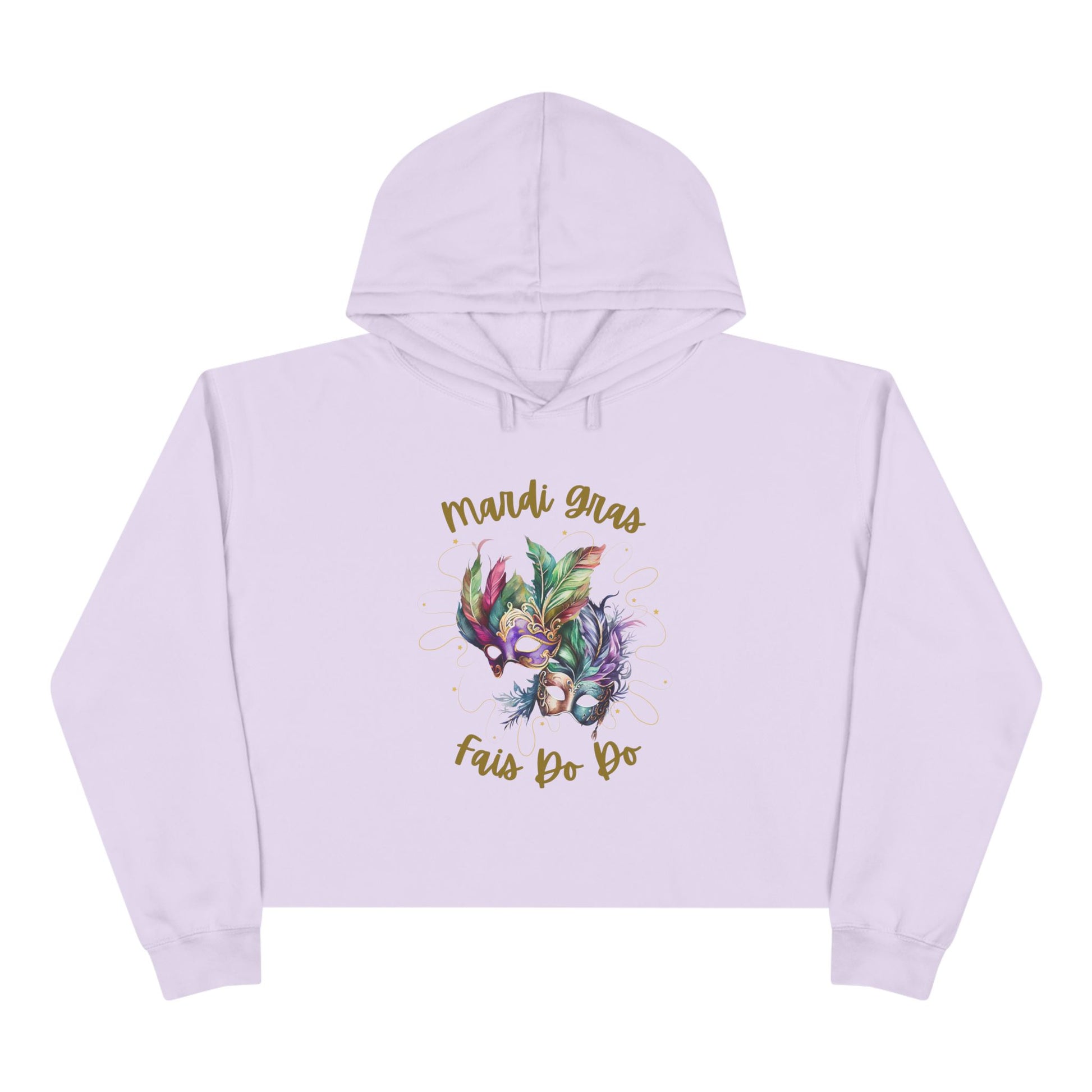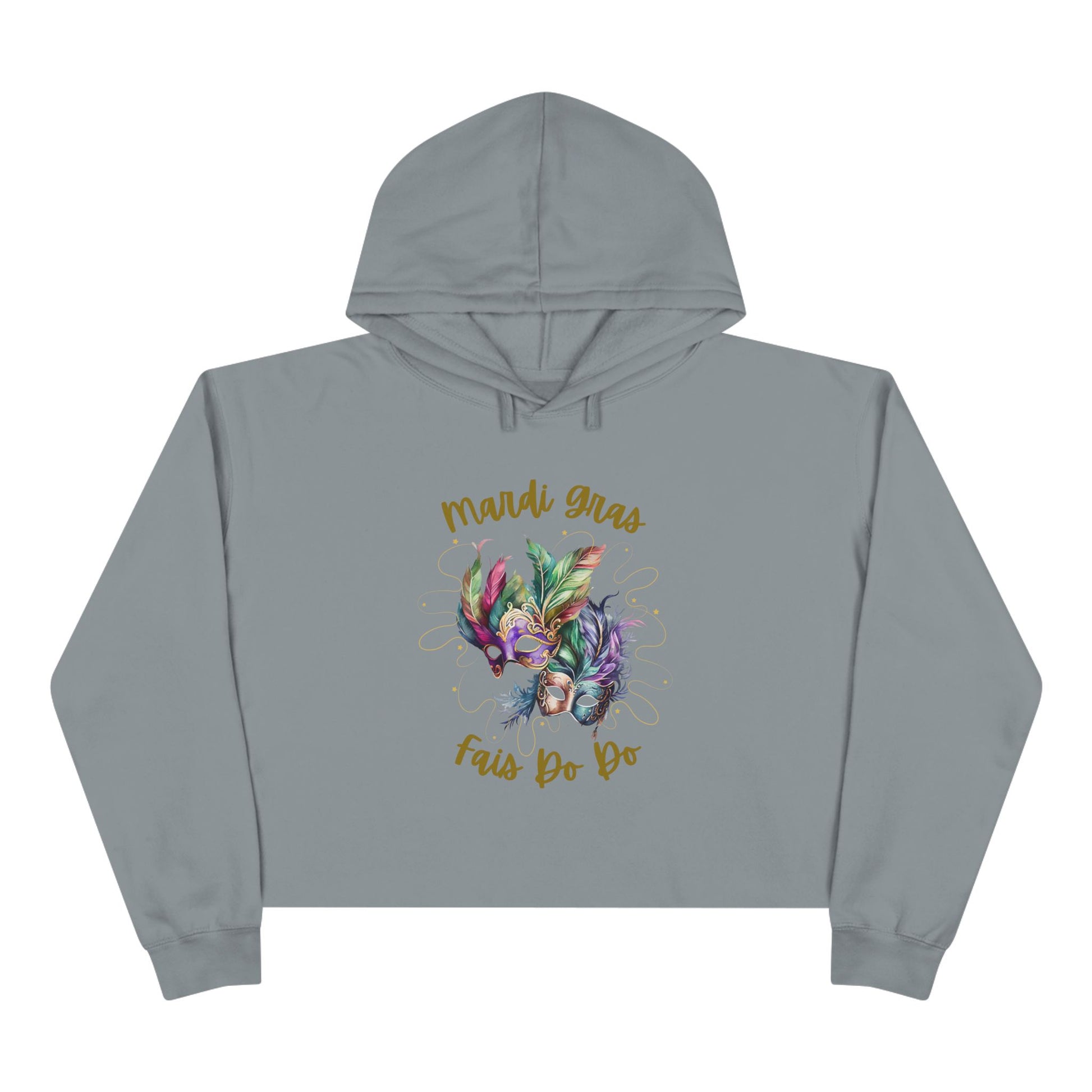 "Mardi Gras - Fais Do Do", Mask & Feathers Festival Pullover. This Trendy Cropped Hoodie Will Make You The Life Of The Party!