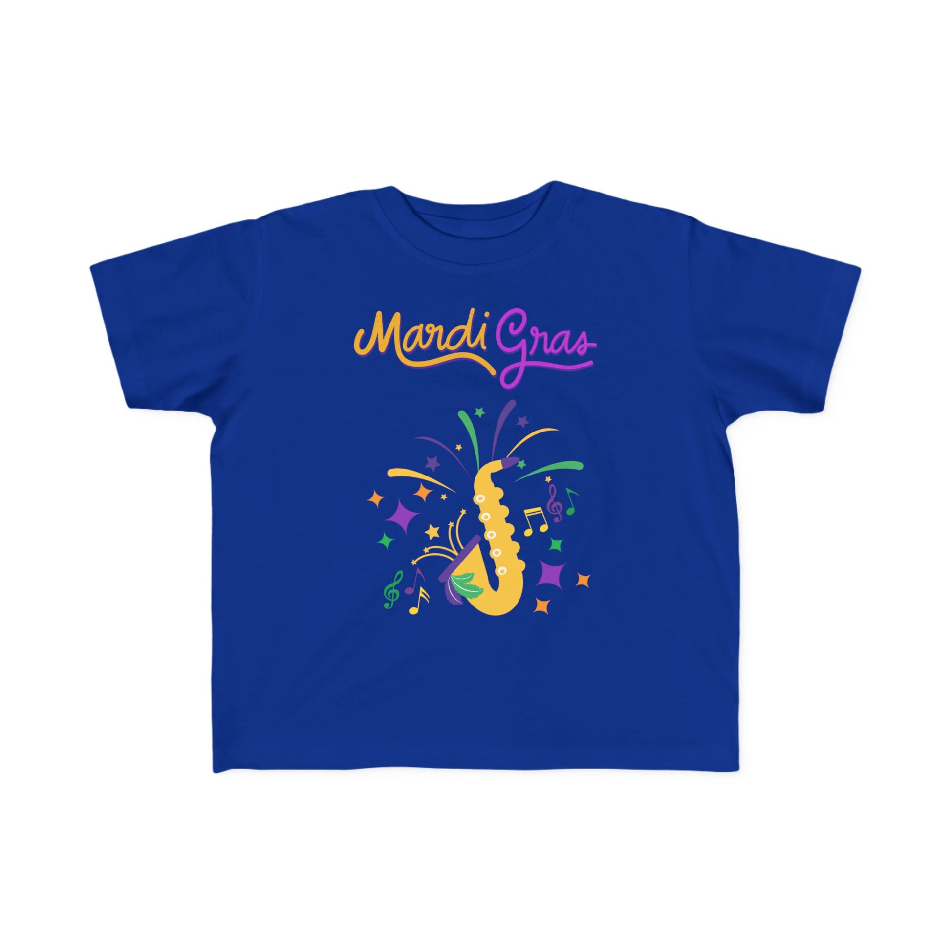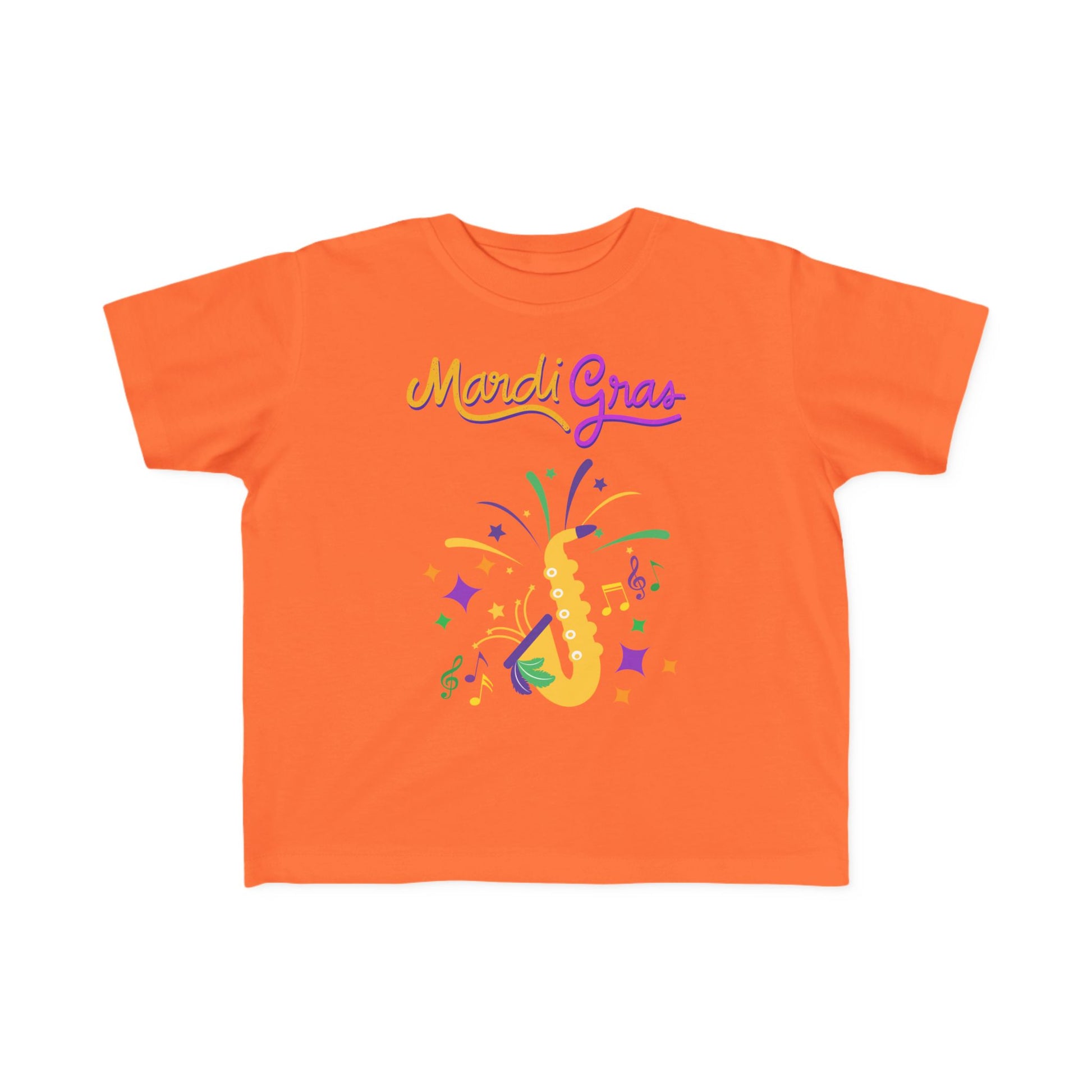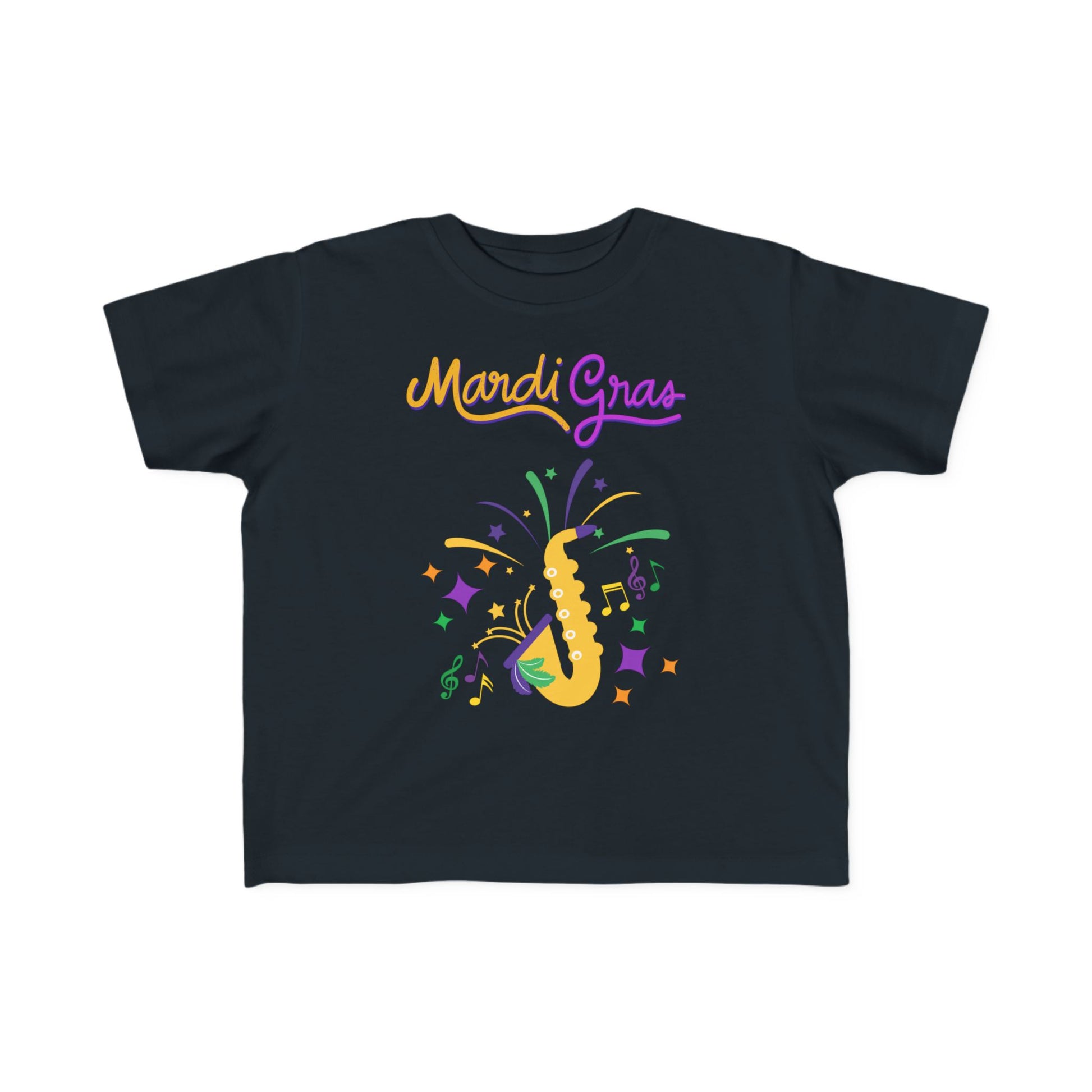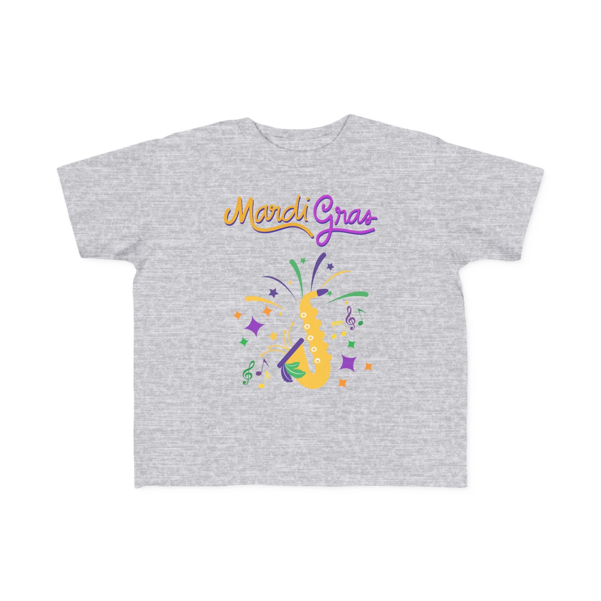 "Mardi Gras Saxophone" Toddler T-Shirt . This Colorful Saxophone & Confetti Design Helps The Little One Get In The Carnival Mood!.