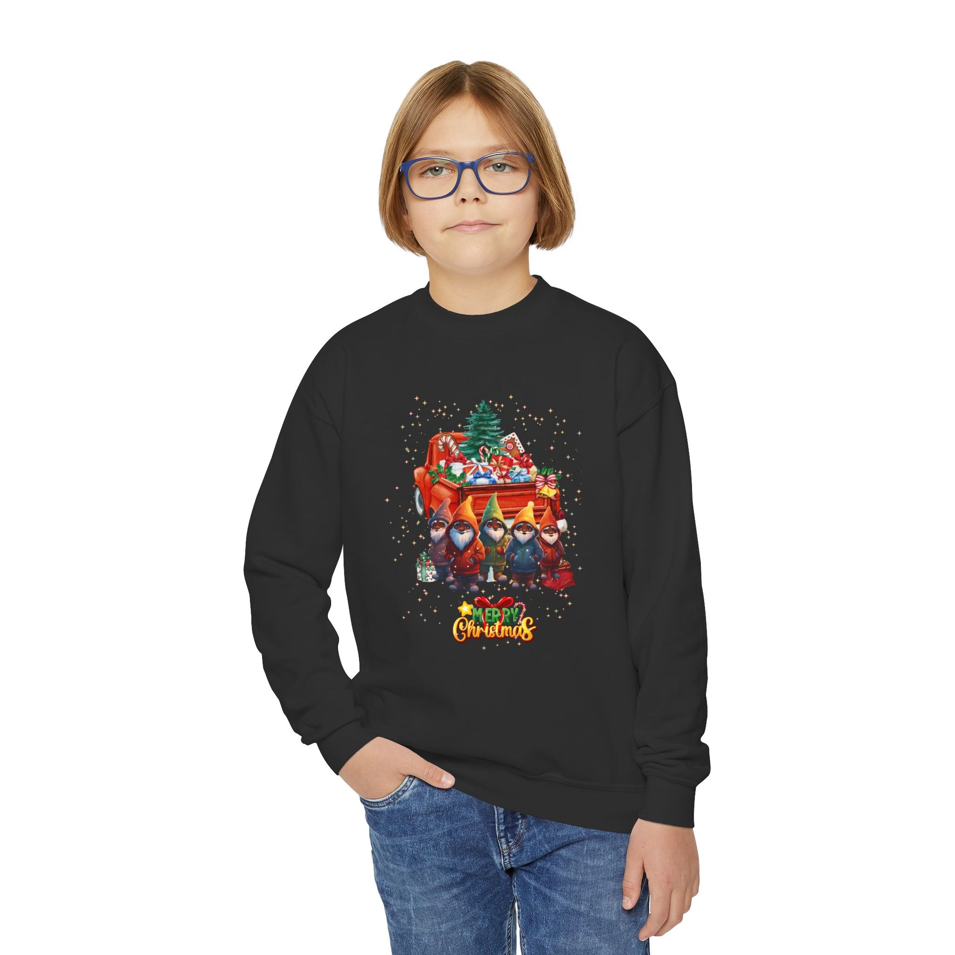 Our "Merry Christmas By The Truckload" sweatshirt design is sure to get any young person in the Holiday mood! Our custom design features a vintage truck spilling over with gifts and Santa's Little helpers standing by. This particular item comes in 4 different colors. Its medium-heavy fabric delivers a cozy, warm feeling while each sweatshirt runs true-to-size for a great fit.