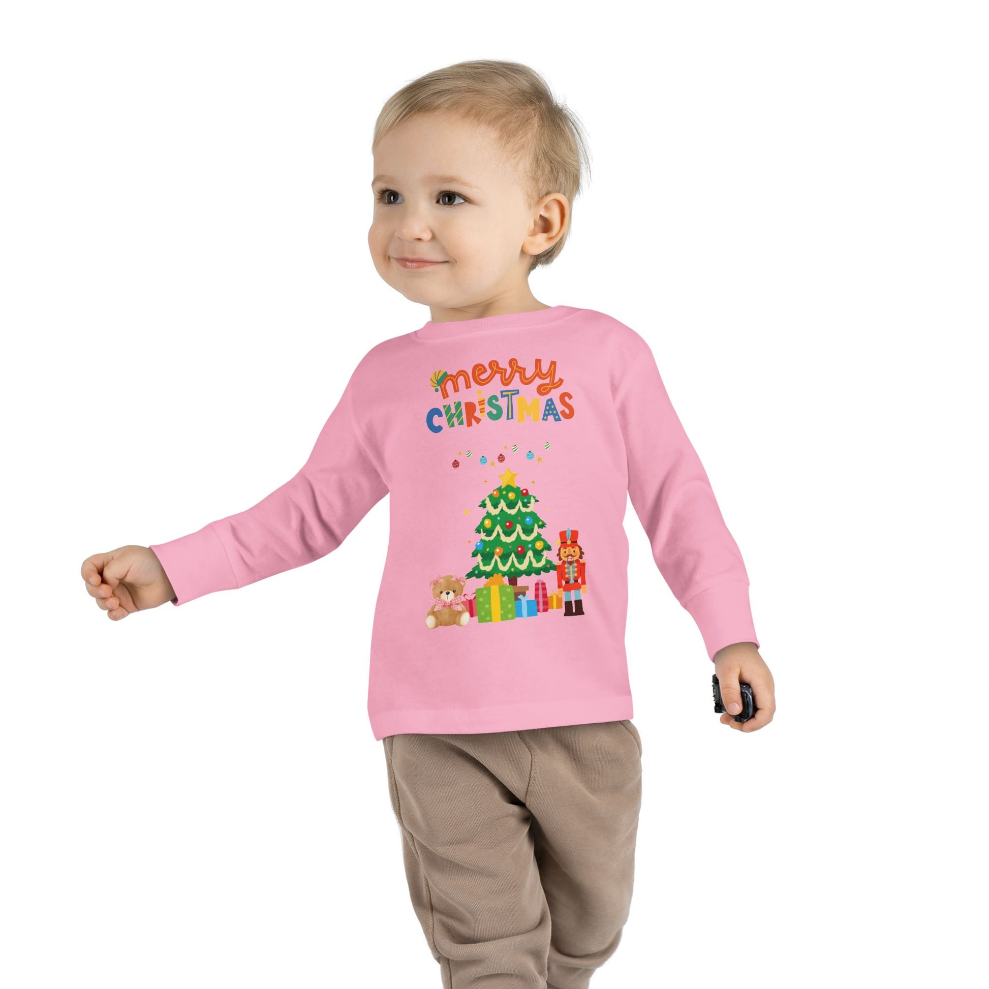 "Merry Christmas" Toddler Long Sleeve Tee – Cute Tree, Gifts & Nutcracker Holiday Shirt
