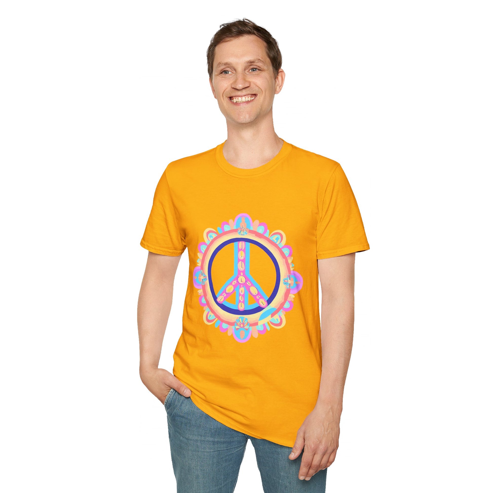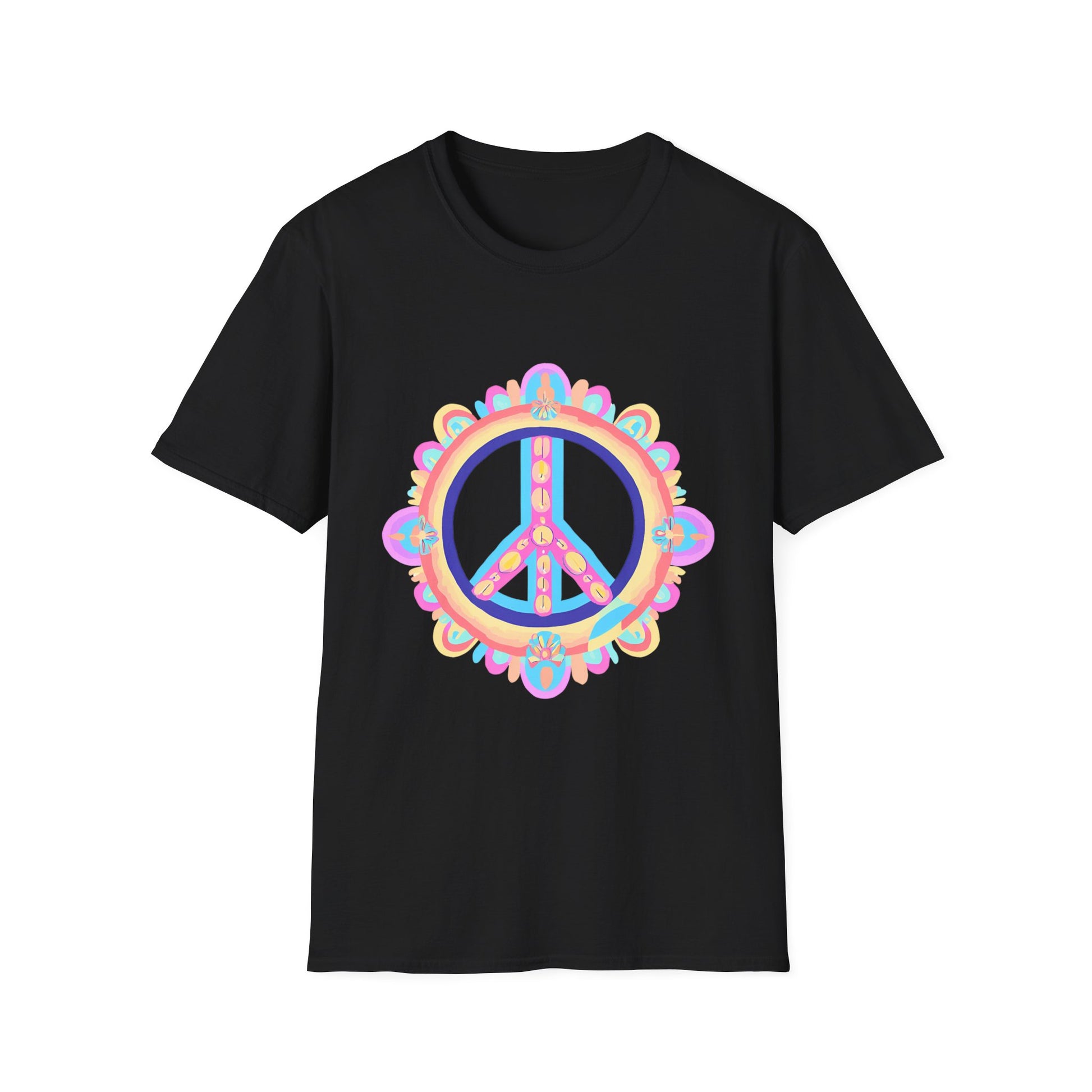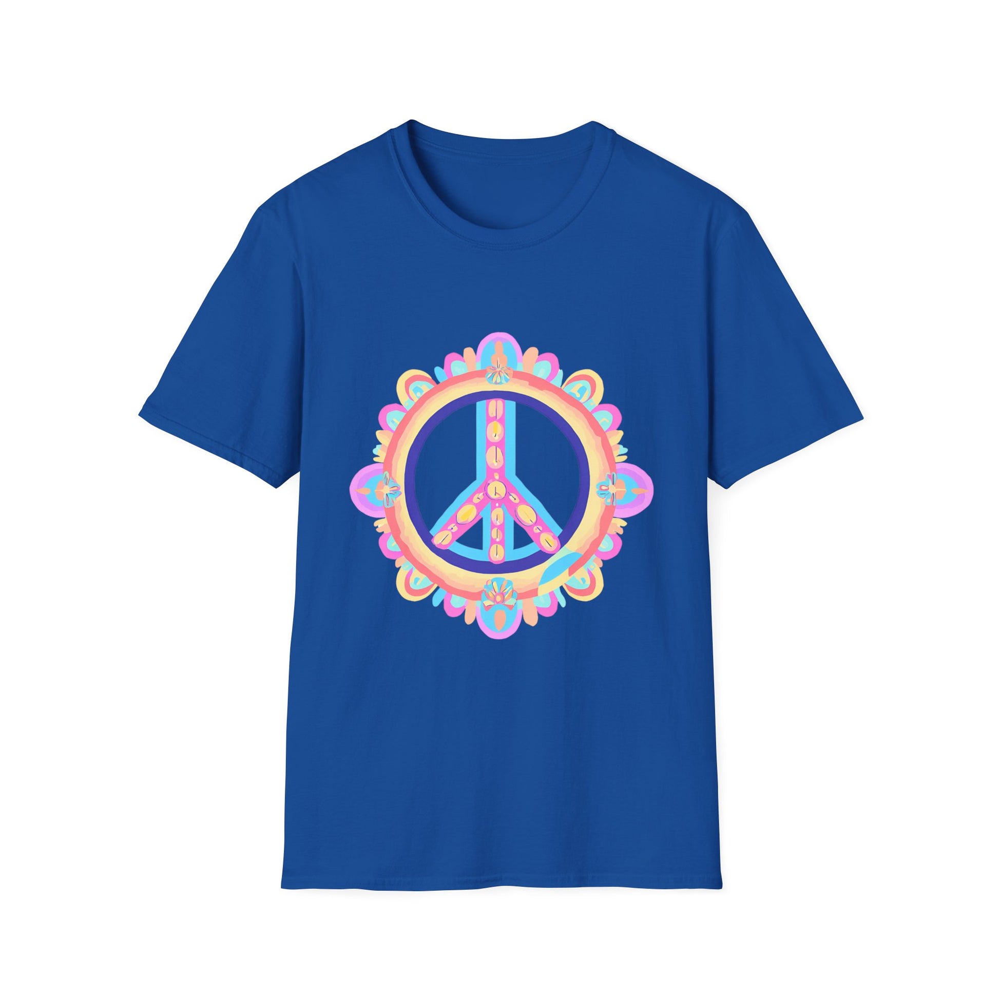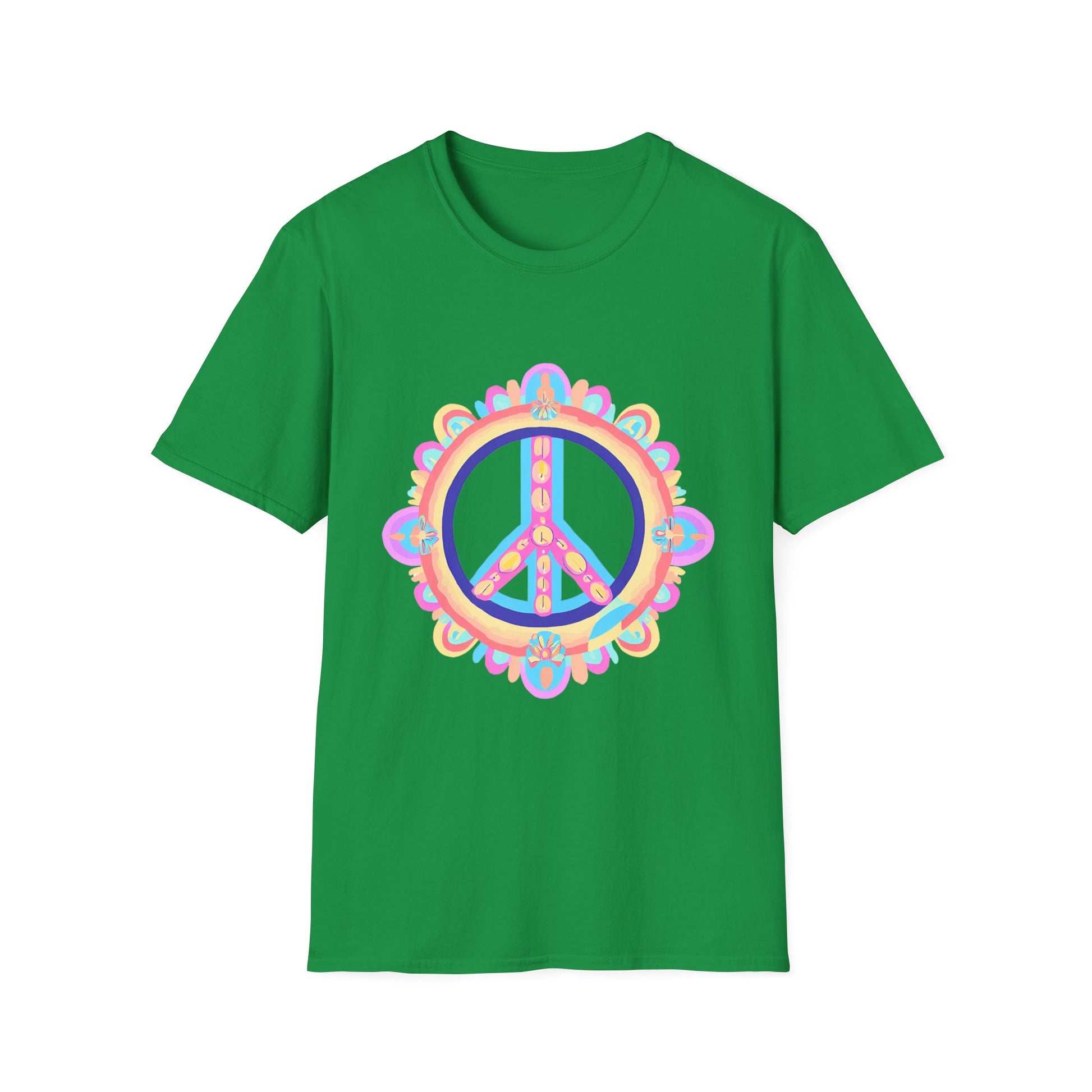Our unisex soft-style "Peace" t-shirt puts a new spin on casual comfort. This colorful, custom design needs no words and speaks for itself. Made from very soft materials, this tee is 100% cotton. The shoulders have twill tape for improved durability. There are no side seams. The collar is made with ribbed knitting to prevent curling damage. This shirt comes in 7 vibrant colors-so pick what works for you OR the person you're buying this for!